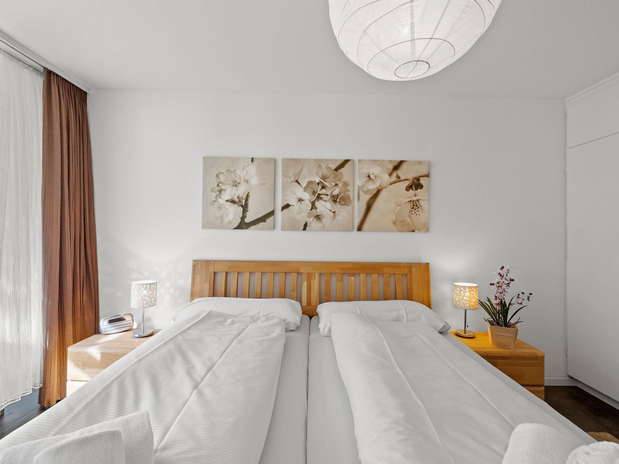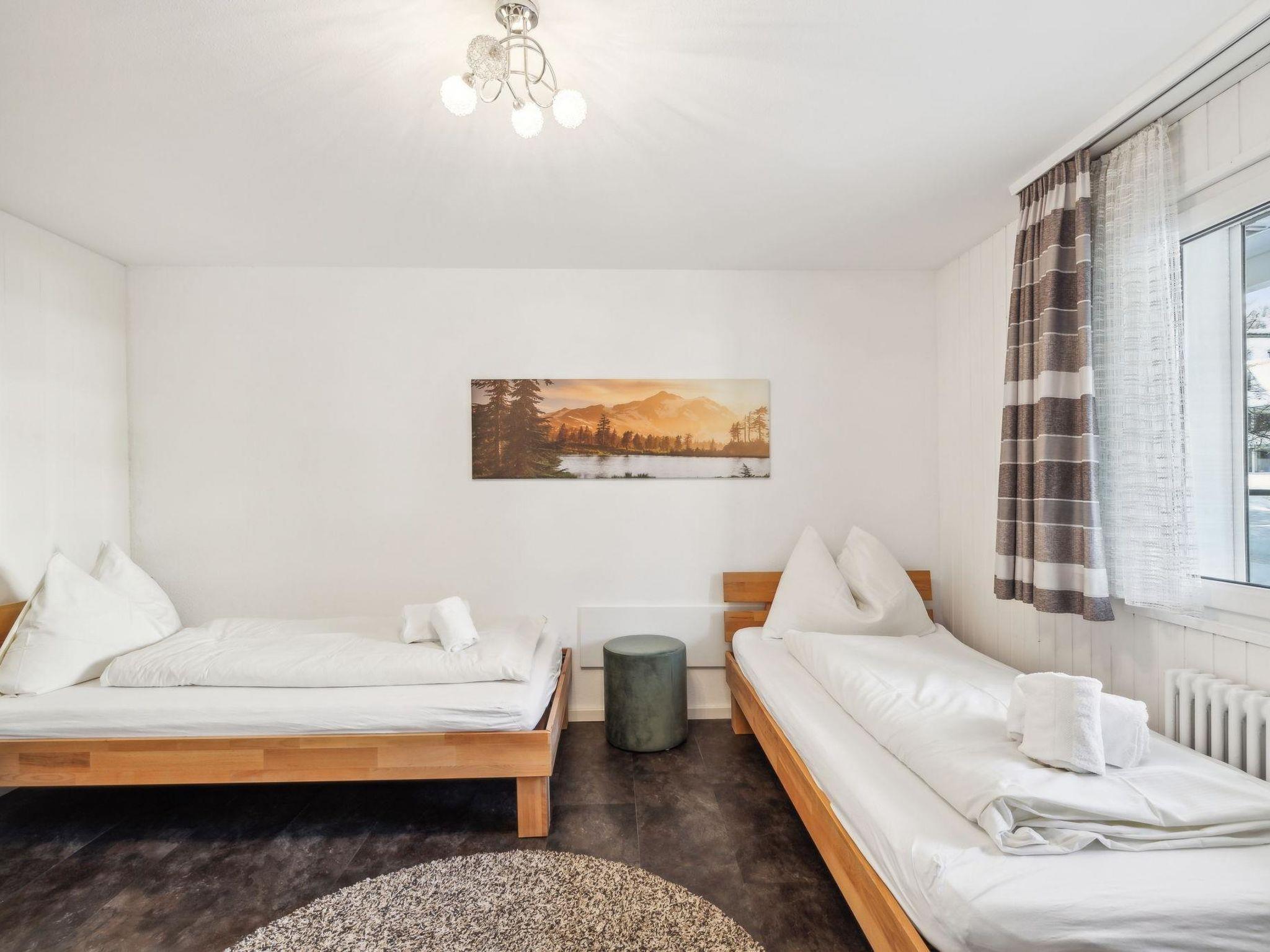 House Sursilvana / 2nd floor – left / Elevator / Wi-Fi yes / 1 room with double bed / 1 room with two single beds / 1 bathroom with WC and bathtub / 1 separate WC All lake street apartments house number 4-6 are located in the center of Lenzerheide and feature a south-facing balcony; they are also directly at the ski slope/cross-country ski trail and in immediate proximity to the free sports bus and various shopping options. A good starting point for all winter/summer activities for the whole family. (In the same Sursilvana house are the following holiday apartments No. 05 and No. 06)
