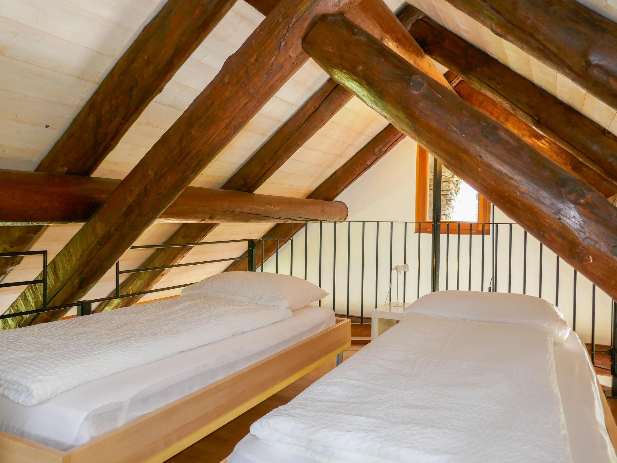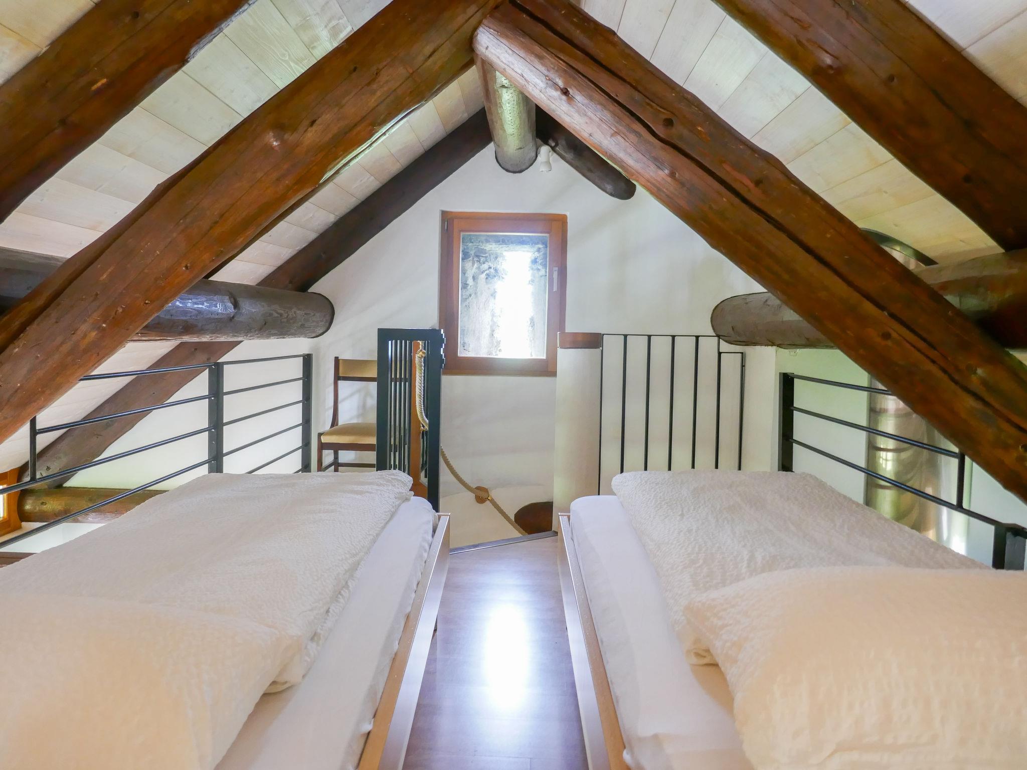 "Rustico Tecc du Martin", 3-room house 70 m2. Spacious, practical and cosy furnishings: open living/dining room with panoramic window with open-hearth fireplace, dining table and satellite TV. Exit to the garden. Open kitchen (oven, dishwasher, 4 induction hot plates, kettle, freezer, electric coffee machine, fondue Set (cheese)). Sep. WC. Electric heating. On the lower ground floor: 1 room with 1 double bed (1 x 180 cm, length 200 cm). Exit to the garden. (spiral staircase), 1 room with 1 double bed (1 x 180 cm, length 200 cm). Exit to the garden. Shower/WC. Upper floor: (spiral staircase) open gallery with sloping ceilings with 2 beds (90 cm, length 200 cm). Garden. Deck chairs (2), sitting area. Panoramic view of the mountains and the valley. Facilities: iron, children's high chair, baby cot for up to 2 year olds (extra), hair dryer. Internet (WiFi, free). Please note: non-smoking house. Maximum 2 pets/ dogs allowed. Instead of an enclosed bedroom, some sleeping areas are located in an open-plan area (gallery, alcove, etc.). NL-00004421