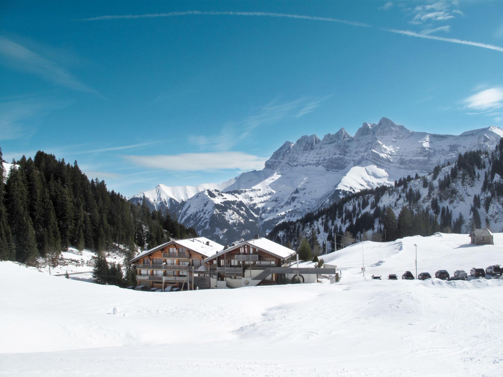 Les Crosets 7 km from Val d'Illiez: Comfortable residence "Sundance", 1'670 m a.s.l., 5 storeys, detached. 16 apartments in the residence. In the resort, 400 m from the centre, in a quiet, sunny position, 50 m from the skiing area, located by a road, south facing position. In the house: lift, storage room for skis, central heating system. Public car park at 650 m, public parking 50 m extra. Grocery 7 km, supermarket 7 km, shopping centre 18 km, restaurant 190 m, bus stop 50 m, railway station "Val d'Illiez" 7 km, indoor swimming pool 12 km. Tennis 12 km, sports centre 12 km, ski lift 50 m, chair lift 400 m, slopes 50 m, ski rental 200 m, ski bus stop 50 m, ice rink 12 km. Nearby attractions: Champéry 12 km, Monthey 22 km, Aigle 29 km, Aeroport Genève 140 km. Well-known ski regions can easily be reached: Portes-du-Soleil. Please note: car recommended. Loading and unloading of baggage is possible at the holiday house.
