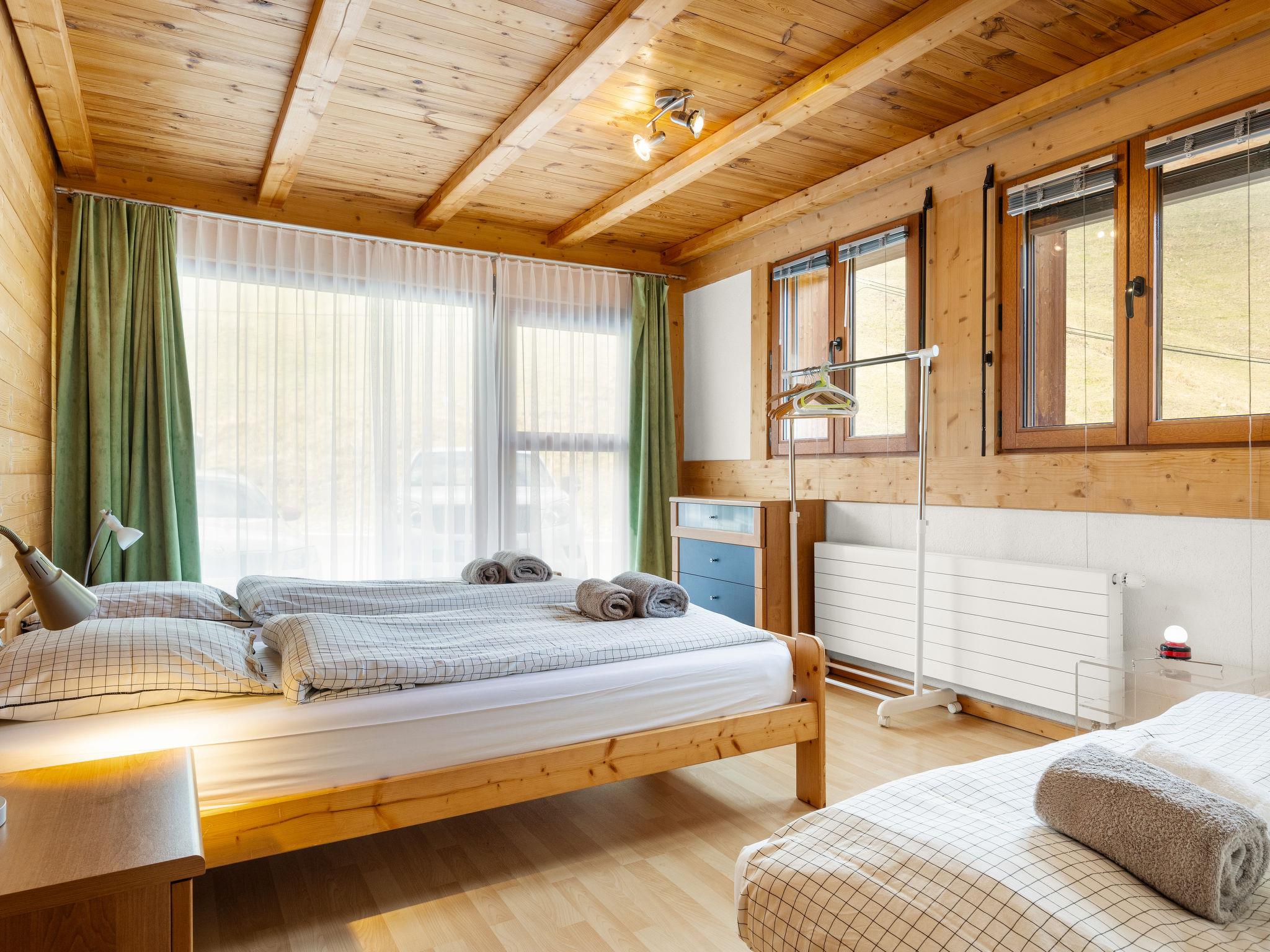 "Sundance 10", 3-room apartment 80 m2 on 1st floor. Object suitable for 4 adults + 2 children. Cosy and wooden furniture furnishings: living/dining room with 1 double sofabed, cable TV, radio and CD-player. Exit to the balcony. 1 room with 1 french bed (150 cm, length 190 cm). Exit to the balcony. 1 room with 2 beds and 1 sofabed (85 cm, length 200 cm). Open kitchen (oven, dishwasher, 4 ceramic glass hob hotplates, microwave, electric coffee machine, raclette grill, fondue Set (cheese)). Bath/WC, shower/WC. Electric heating, boiler. Balcony. Balcony furniture. Very beautiful view of the mountains. Facilities: Internet (WiFi, free). Parking space n 10, garage (extra) at 50 m. Please note: non-smokers only.