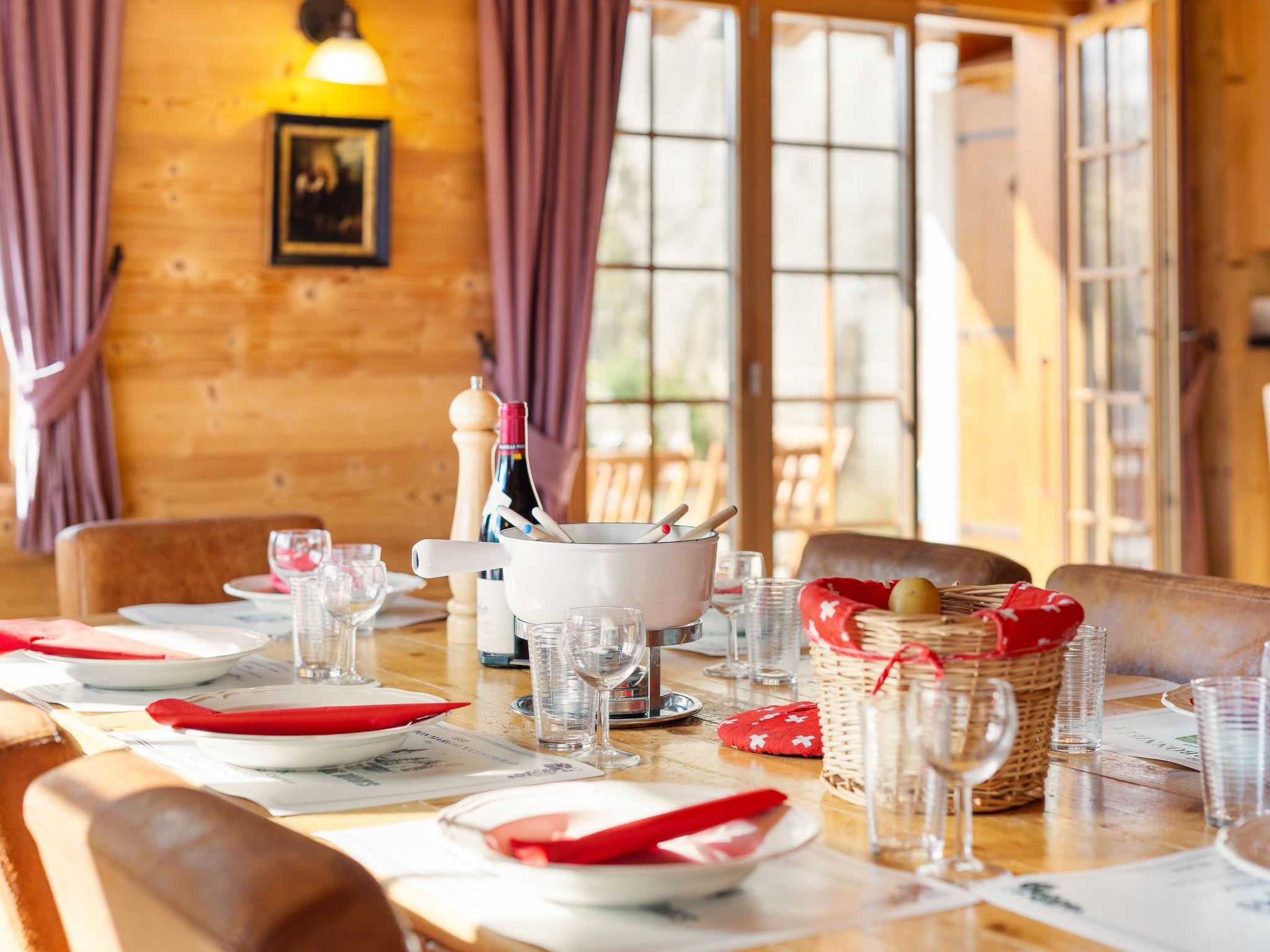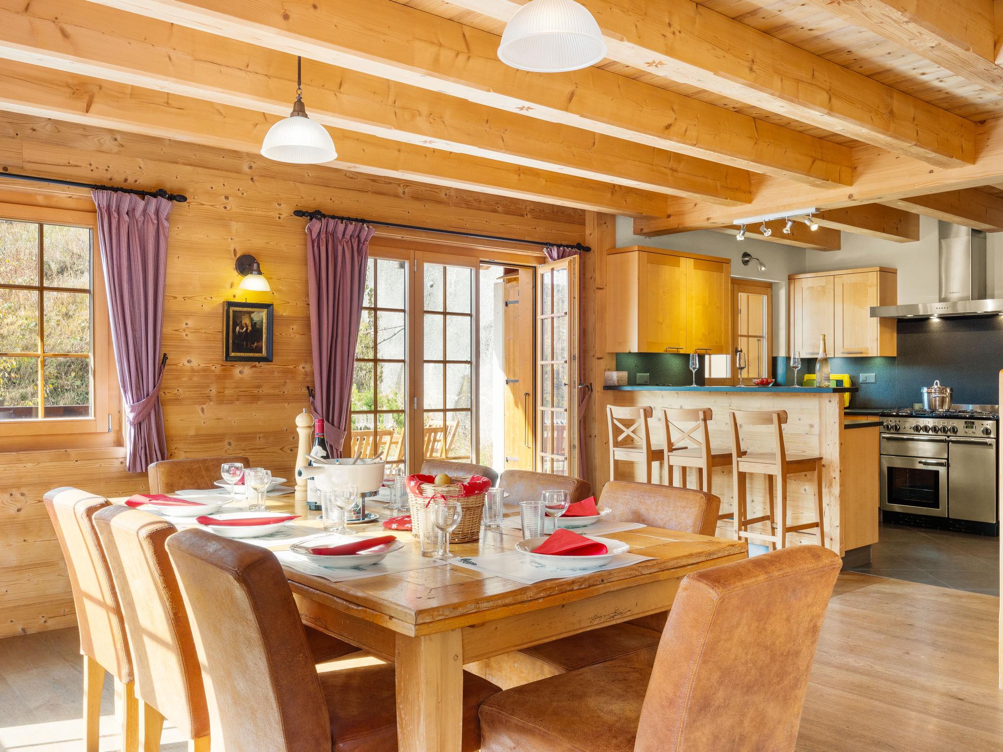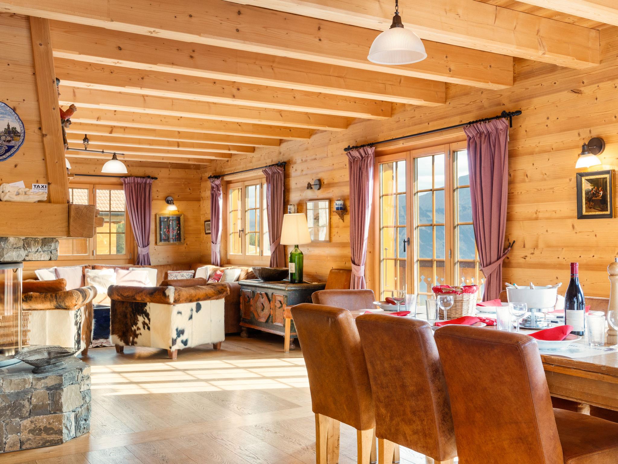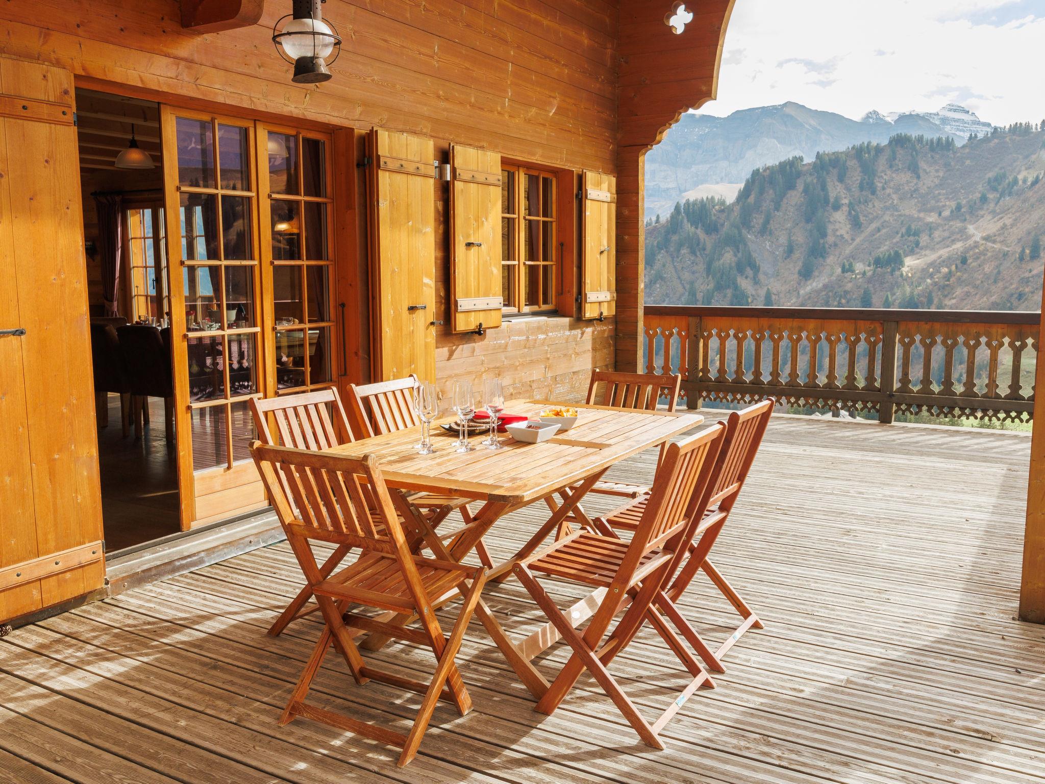 7-room chalet 300 m2. Luxurious and tasteful furnishings: living/dining room with open-hearth fireplace, dining table and hi-fi system. Exit to the terrace, south facing position. Lounge with cable TV, flat screen and DVD. Open kitchen (5 hot plates, oven, dishwasher, microwave, freezer, electric coffee machine, Capsules for coffee machine (Nespresso) extra) with bar. Floor heating. On the lower ground floor: 1 room with 1 french bed and bath/WC. Shower/WC, Sauna. Upper floor: 2 double bedrooms, each room with 1 french bed and bath/shower/WC. Exit to the balcony. 1 room with 2 beds and bath/shower/WC. 1 room with 2 beds and shower/WC. 2nd upper floor: small gallery. Balcony, south facing position, terrace, east facing position. Terrace furniture, barbecue (portable), deck chairs. Marvellous panoramic view of the mountains. Facilities: washing machine, dryer, sauna. Internet (WiFi, free). Garage (3 cars). Please note: non-smoking house. The Multi Pass Portes du Soleil offers unlimited access to numerous activities throughout the Portes du Soleil during Summer.