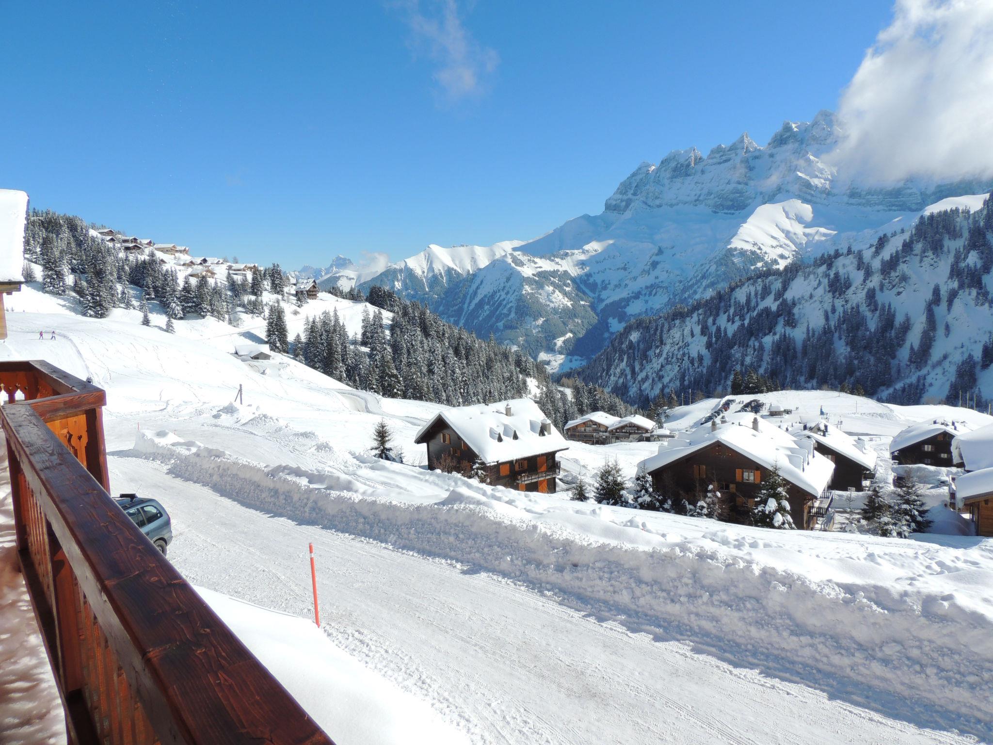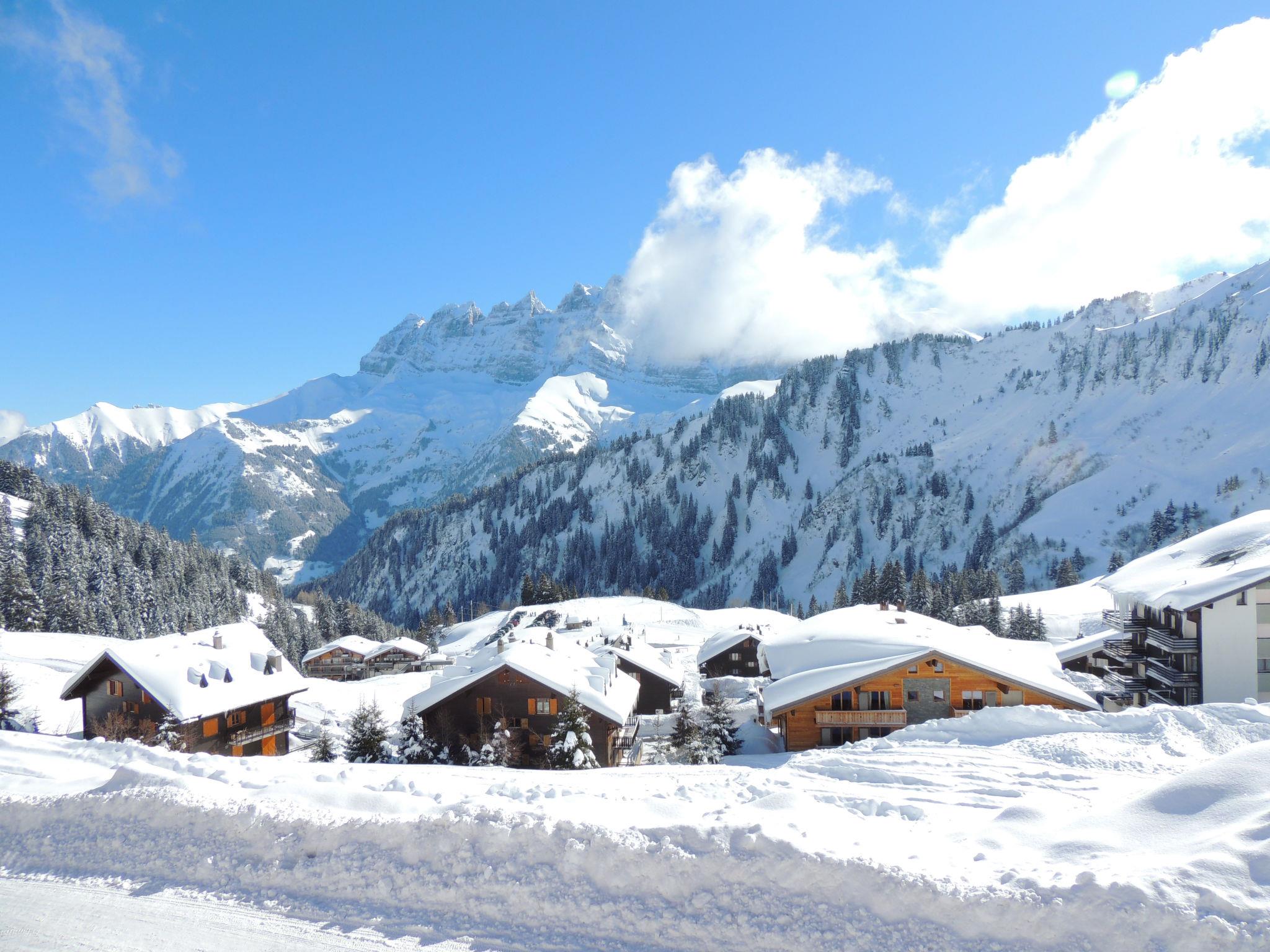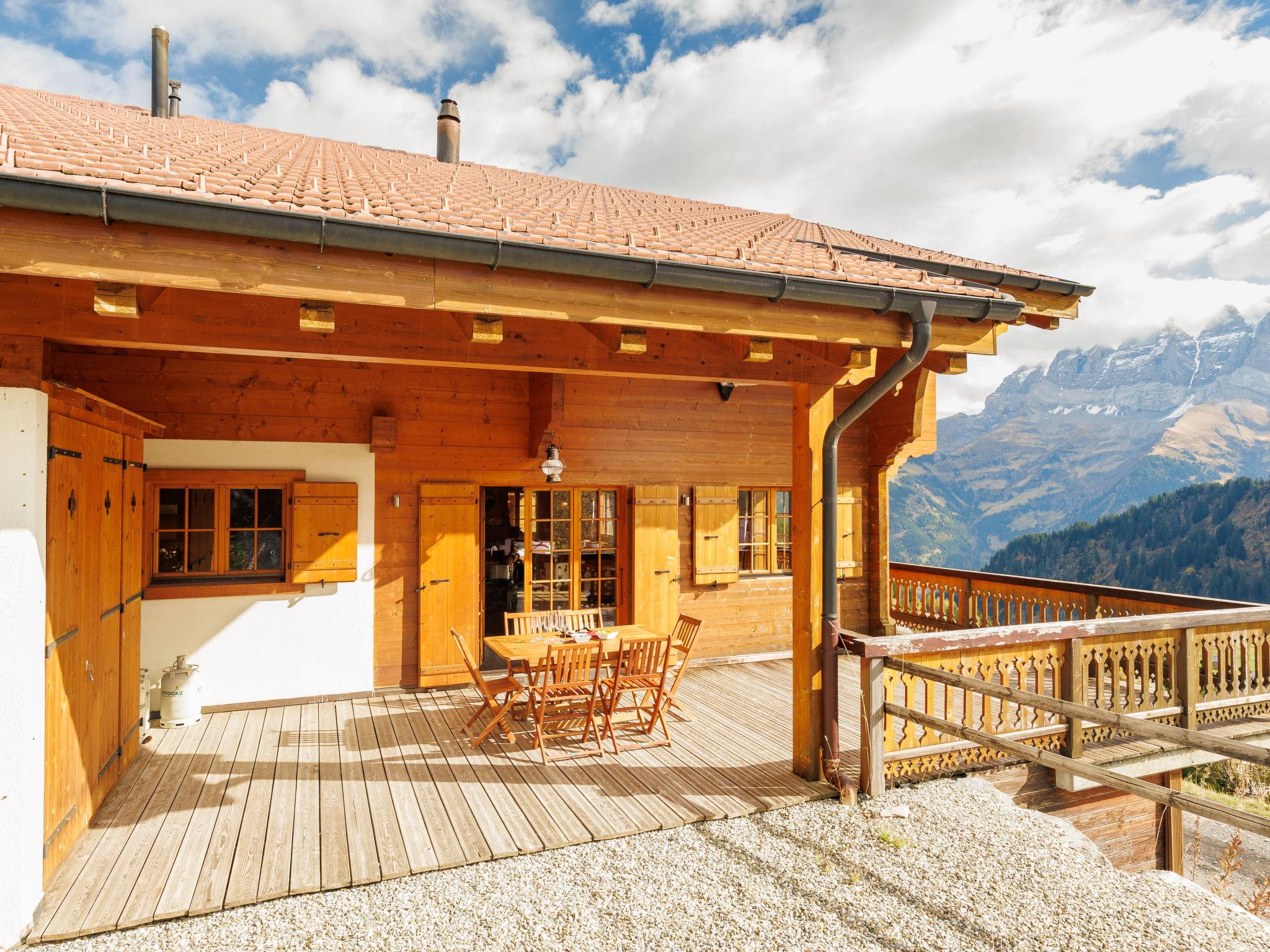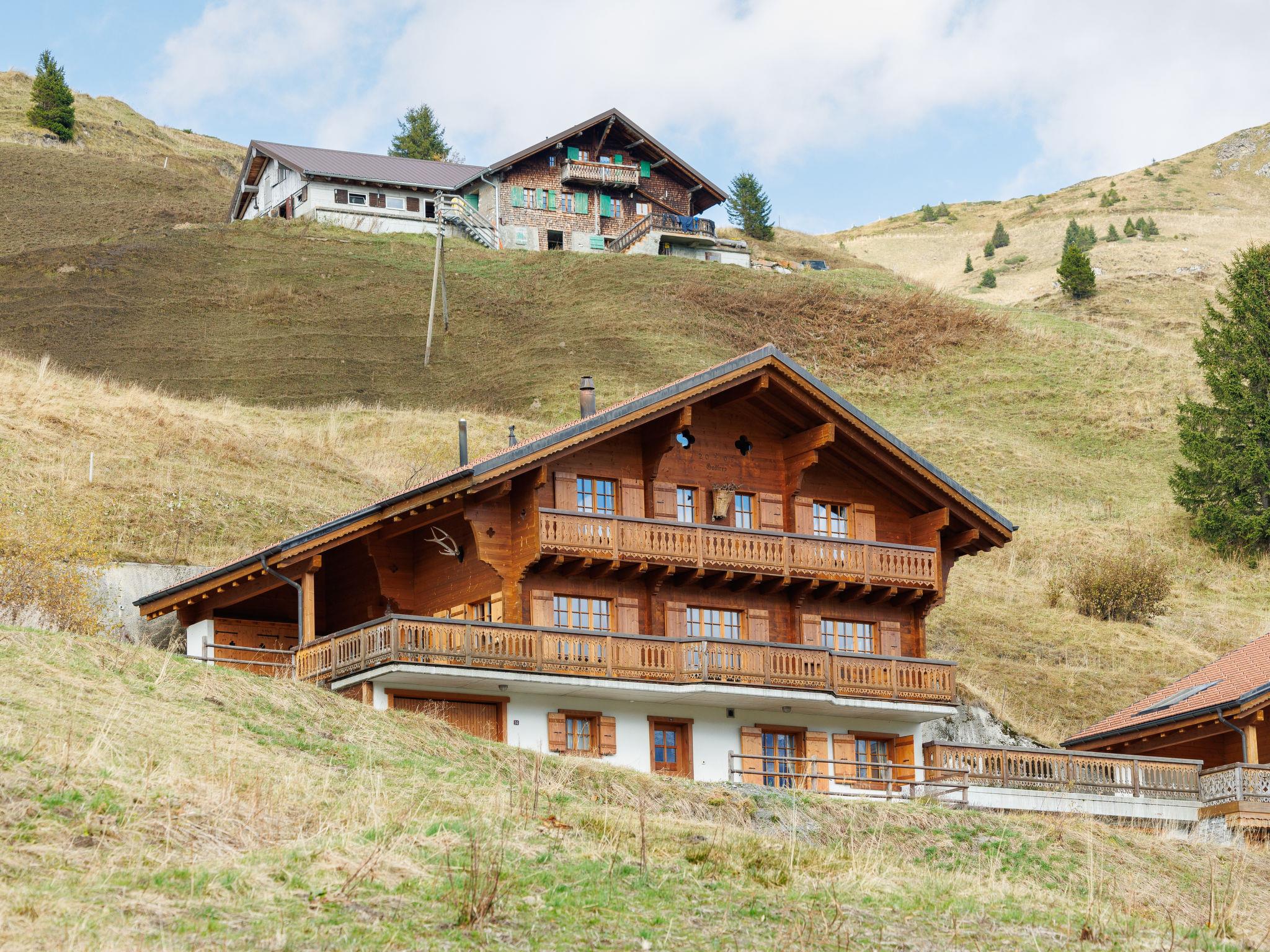 Les Crosets: Beautiful, luxurious chalet "Godfrey", 1'750 m a.s.l., 3 storeys, built in 2008. In the resort 400 m from the centre of Les Crosets, in a secluded, quiet, elevated position, south facing position. In the house: sauna, storage room for skis, central heating system, ski boot dryer. Motor access (300 m via unmade road). In Winter: please take snow chains. Grocery 500 m, supermarket 12 km, shopping centre 17 km, restaurant 500 m, bus stop "Chapelle" 600 m, railway station "Val d'Illiez" 8 km. Skisport facilities 100 m. Please note: car recommended. In case of good snow conditions, the house is accessible on skis.