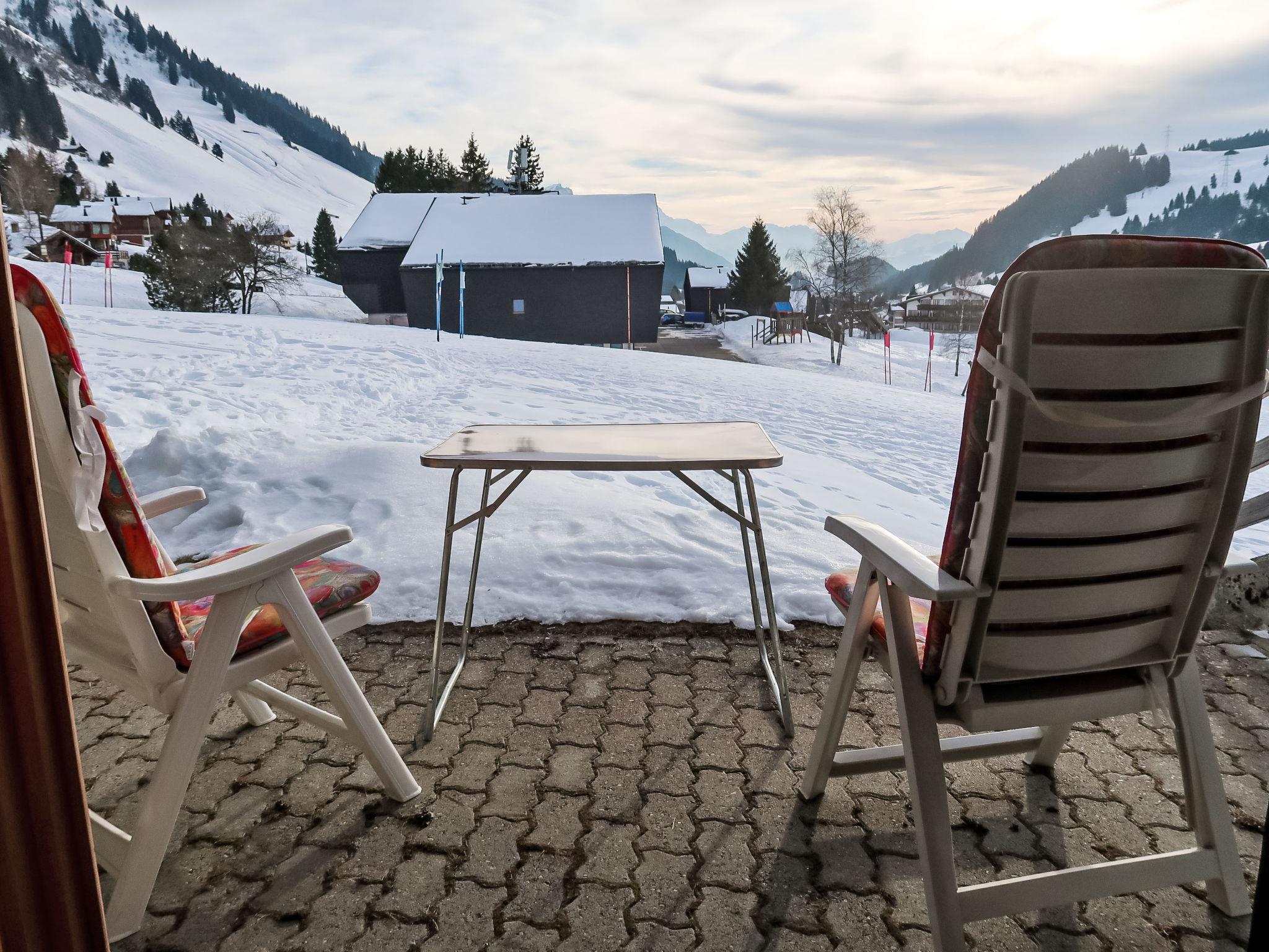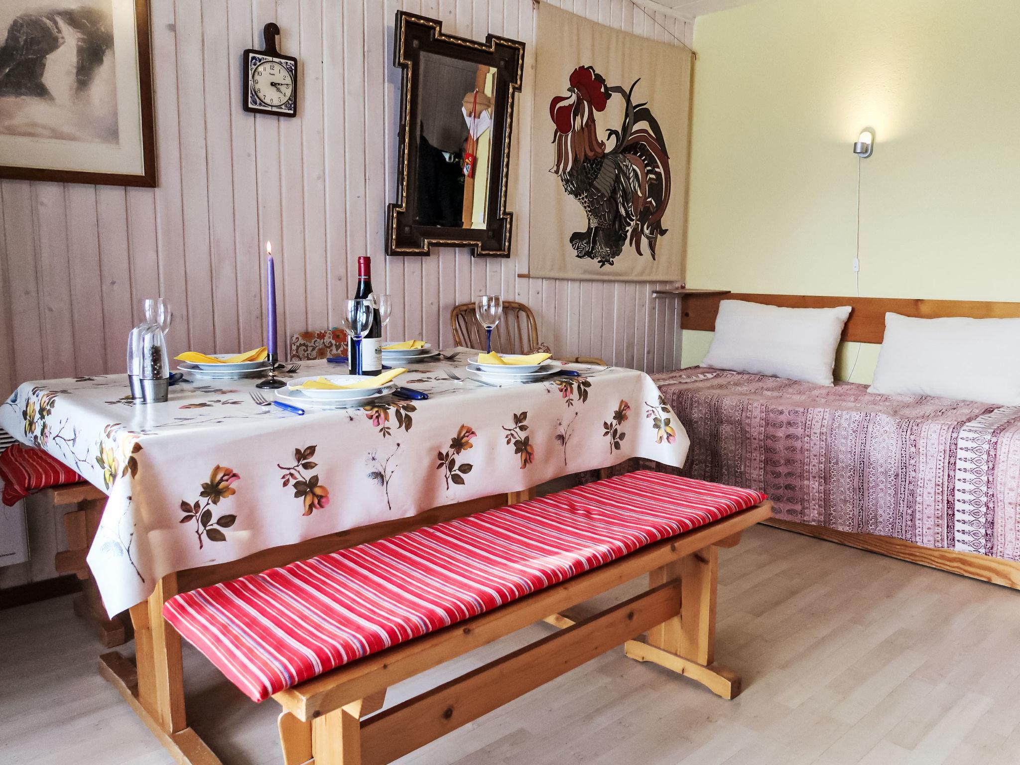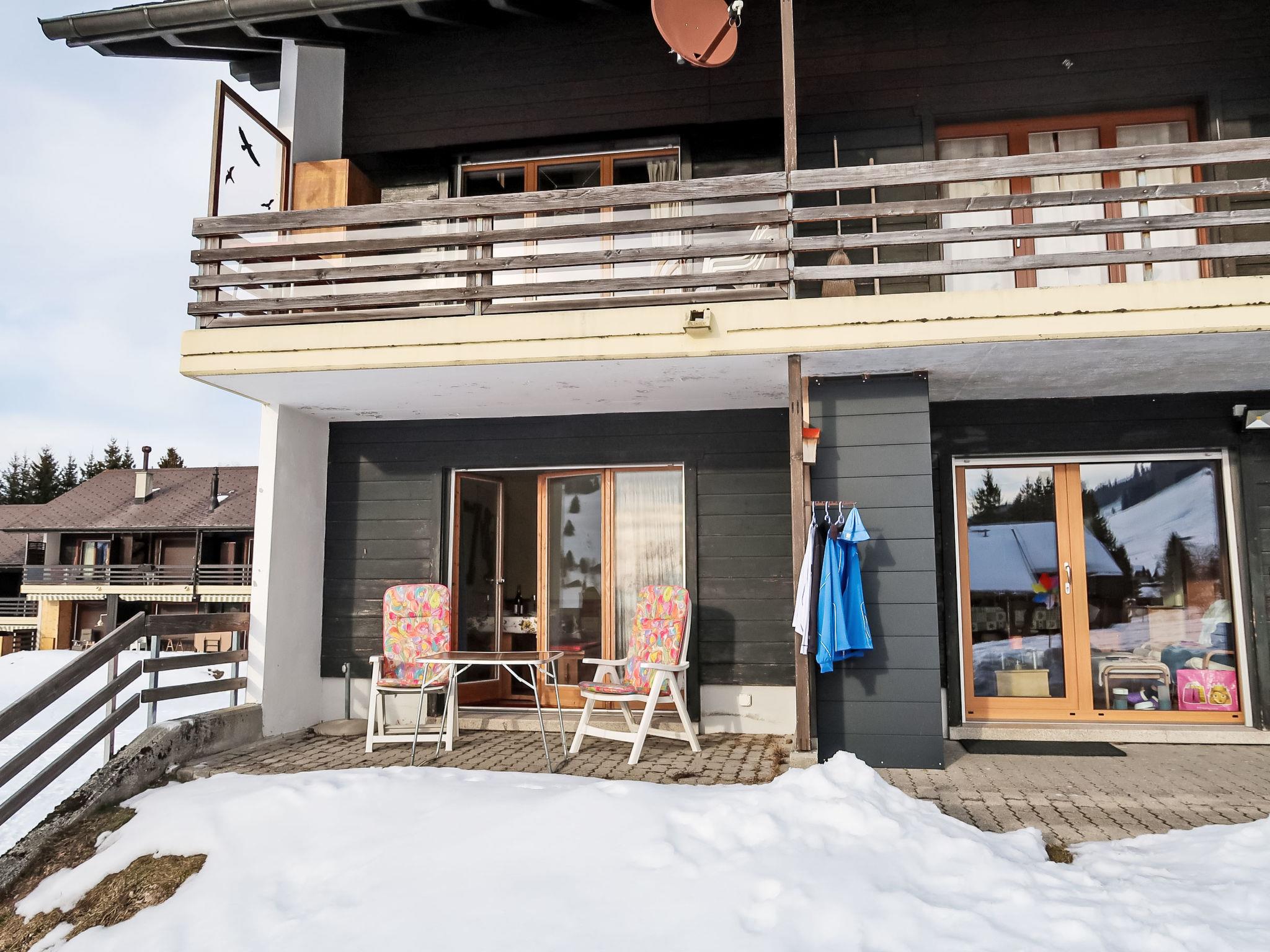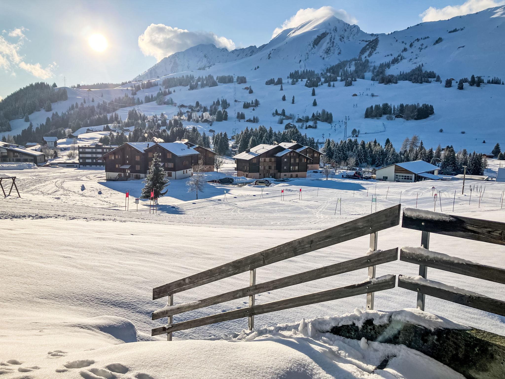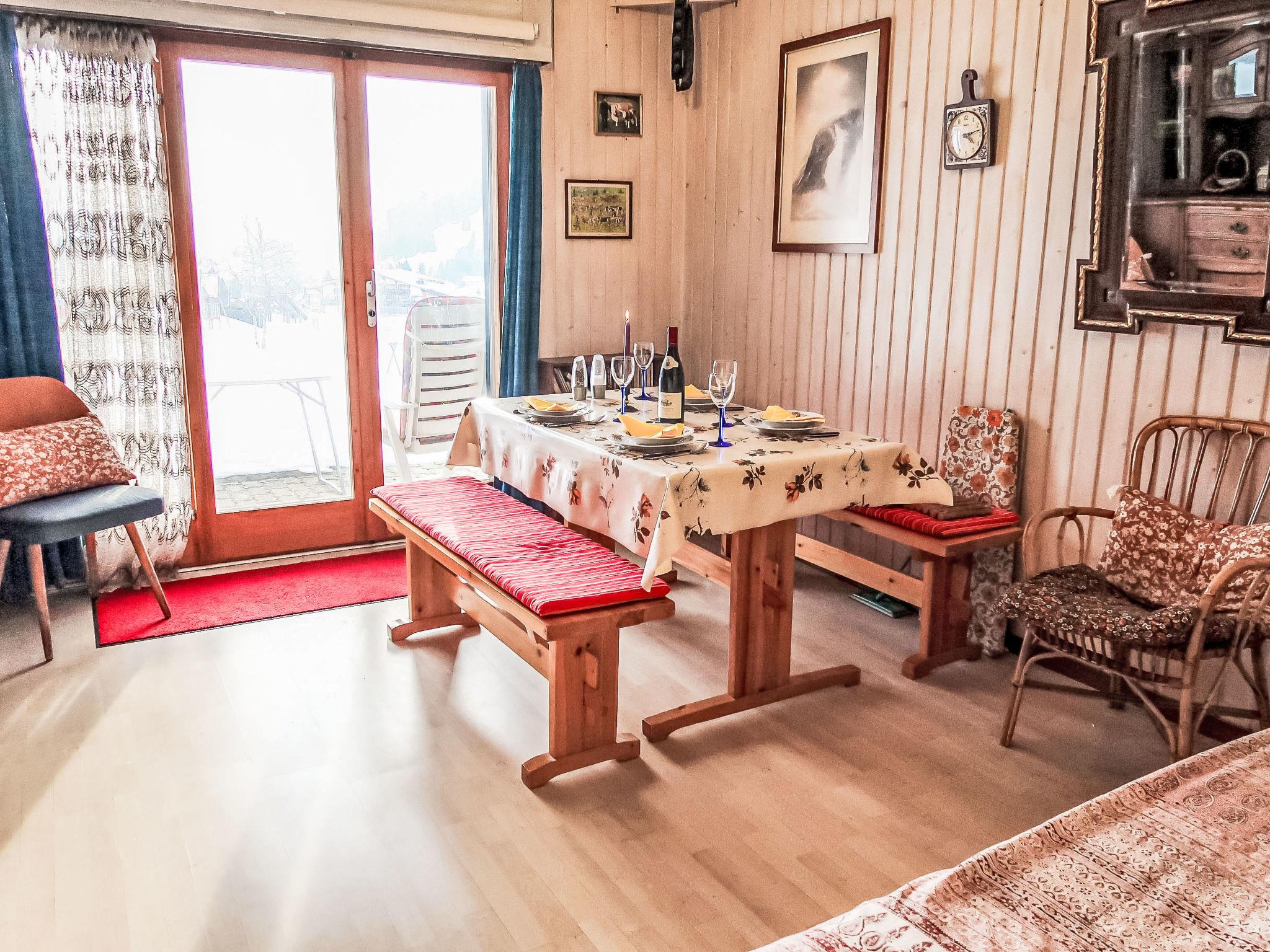 "Les Bluets", 1-room apartment 30 m2. Object suitable for 2 adults + 2 children. Partly renovated in 2025, cosy furnishings: living room with 1 pull-out bed (2 pers. 2 x 90 cm, length 190 cm). Exit to the patio. 1 open small room with sliding door with 2 beds (90 cm, length 190 cm). Open kitchen (dishwasher, 4 induction hot plates, toaster, kettle, electric coffee machine, Capsules for coffee machine (Nespresso), fondue Set (cheese)). Bath/WC. Electric heating. Terrace. Terrace furniture. Beautiful view of the mountains, the ski run and the countryside. Facilities: Internet (WiFi, free). Parking at the house. Please note: non-smokers only.