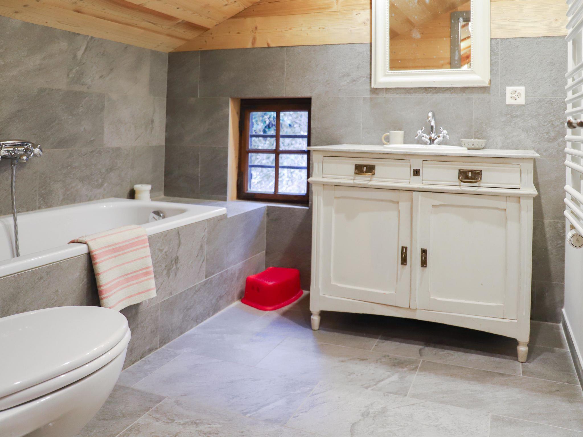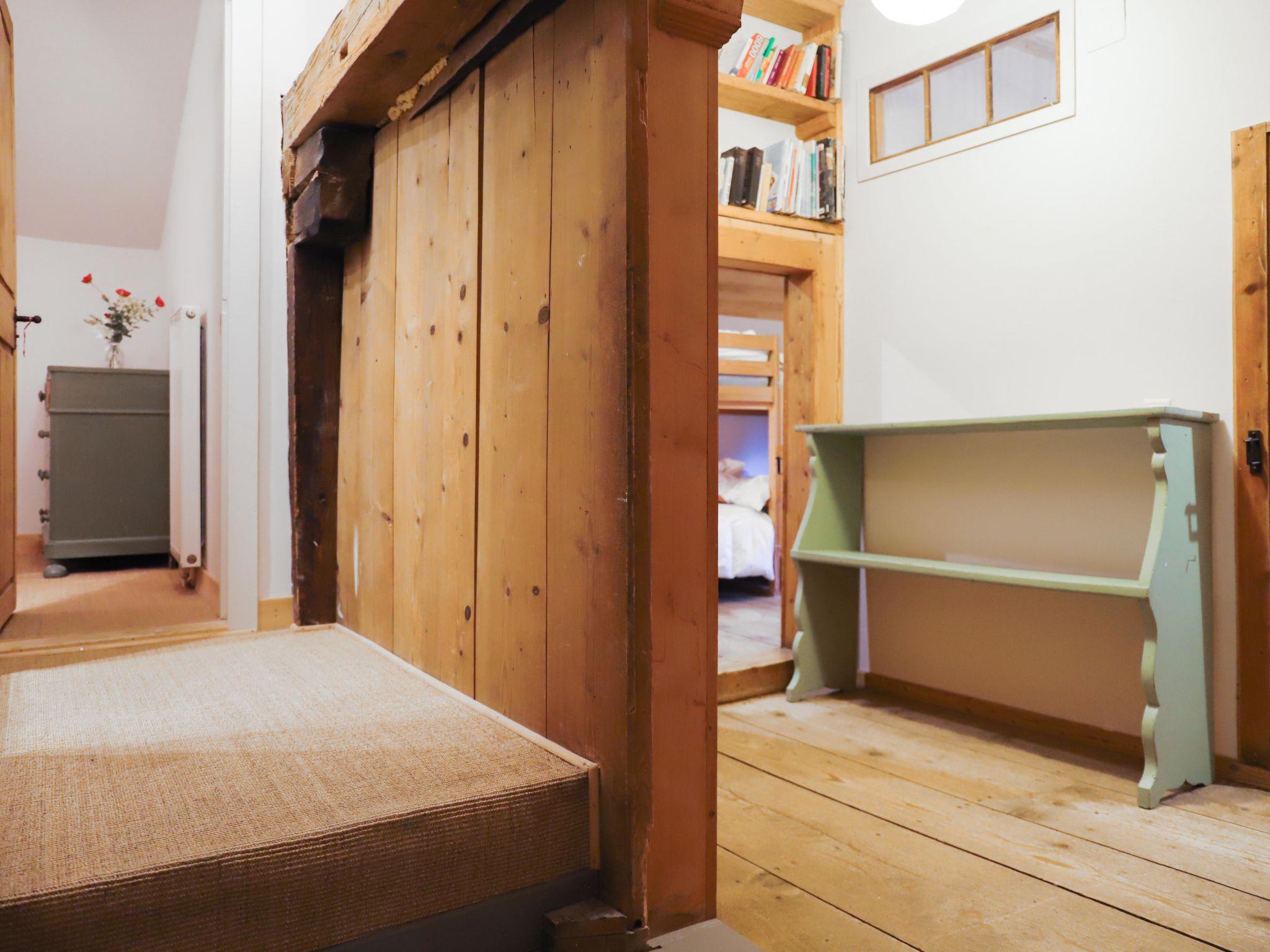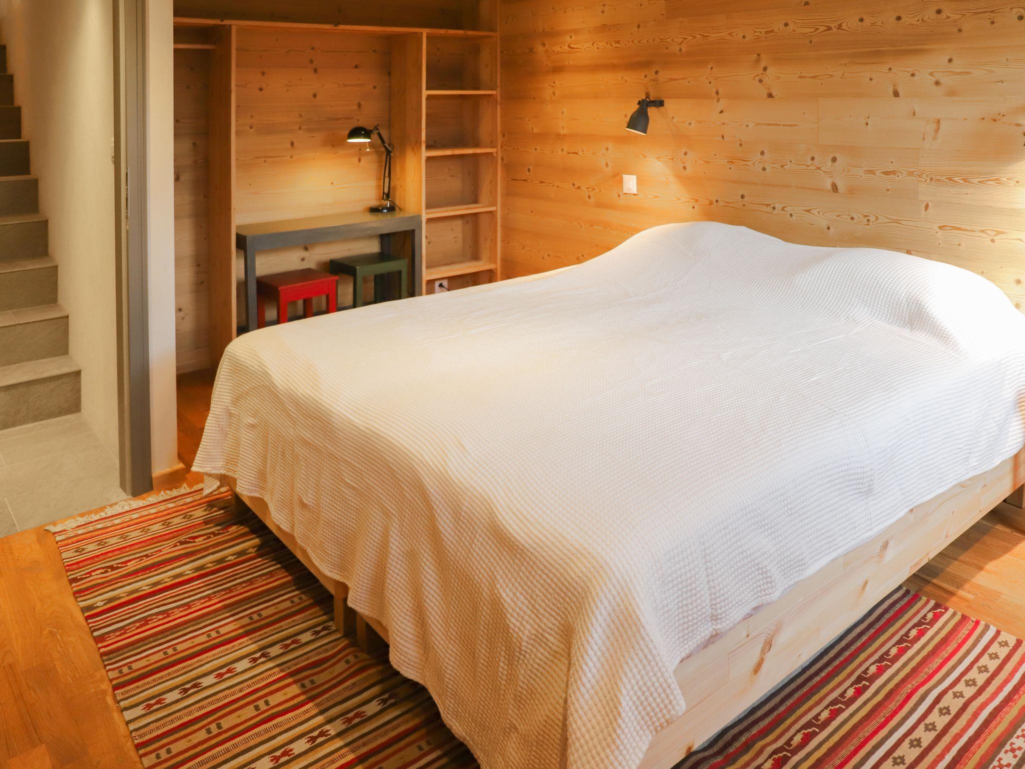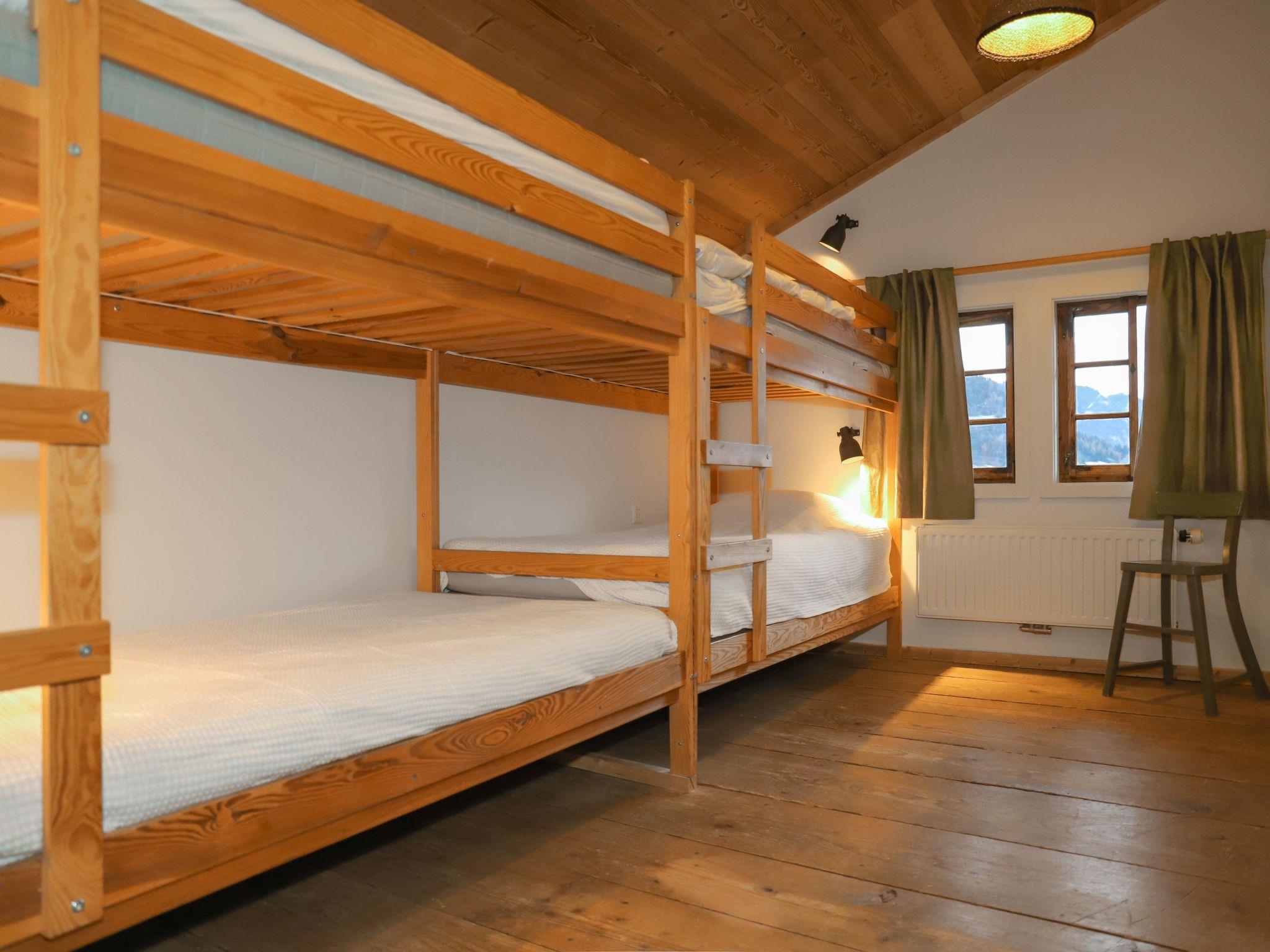 "Chalet Pierre Fleur", 6-room chalet 160 m2 on 3 levels. Object suitable for 7 adults + 4 children. Partly with sloping ceilings, renovated in 2021, comfortable and beautiful furnishings: entrance hall. Large living/dining room with open-hearth fireplace, Scandinavian wood stove and dining table. 1 room with 1 double bed (160 cm). Open kitchen (oven, dishwasher, 4 induction hot plates, microwave, electric coffee machine, Capsules for coffee machine (Nespresso) extra, raclette grill) with hatch. Exit to the garden, to the terrace, west facing position. Shower, sep. WC. On the lower ground floor: 1 room with 1 double bed (180 cm), shower/WC and double hand-basin. Exit to the garden, to the terrace, south facing position. Upper floor: 1 room with sloping ceilings, Low door height 120 cm with 1 double bed (160 cm). Exit to the balcony. 1 children's room with sloping ceilings, Low door height 120 cm with 2 x 2 bunk beds (90 cm, length 180 cm). 1 room with sloping ceilings, Low door height 120 cm, without wardrobe with 1 bed (140 cm). Bath/WC. Small balcony 8 m2, large terrace 20 m2, large terrace 16 m2. Terrace furniture, barbecue. Very beautiful view of the mountains. Facilities: washing machine. Internet (WiFi, free). Please note: non-smoking house. Maximum 1 pet/ dog allowed.