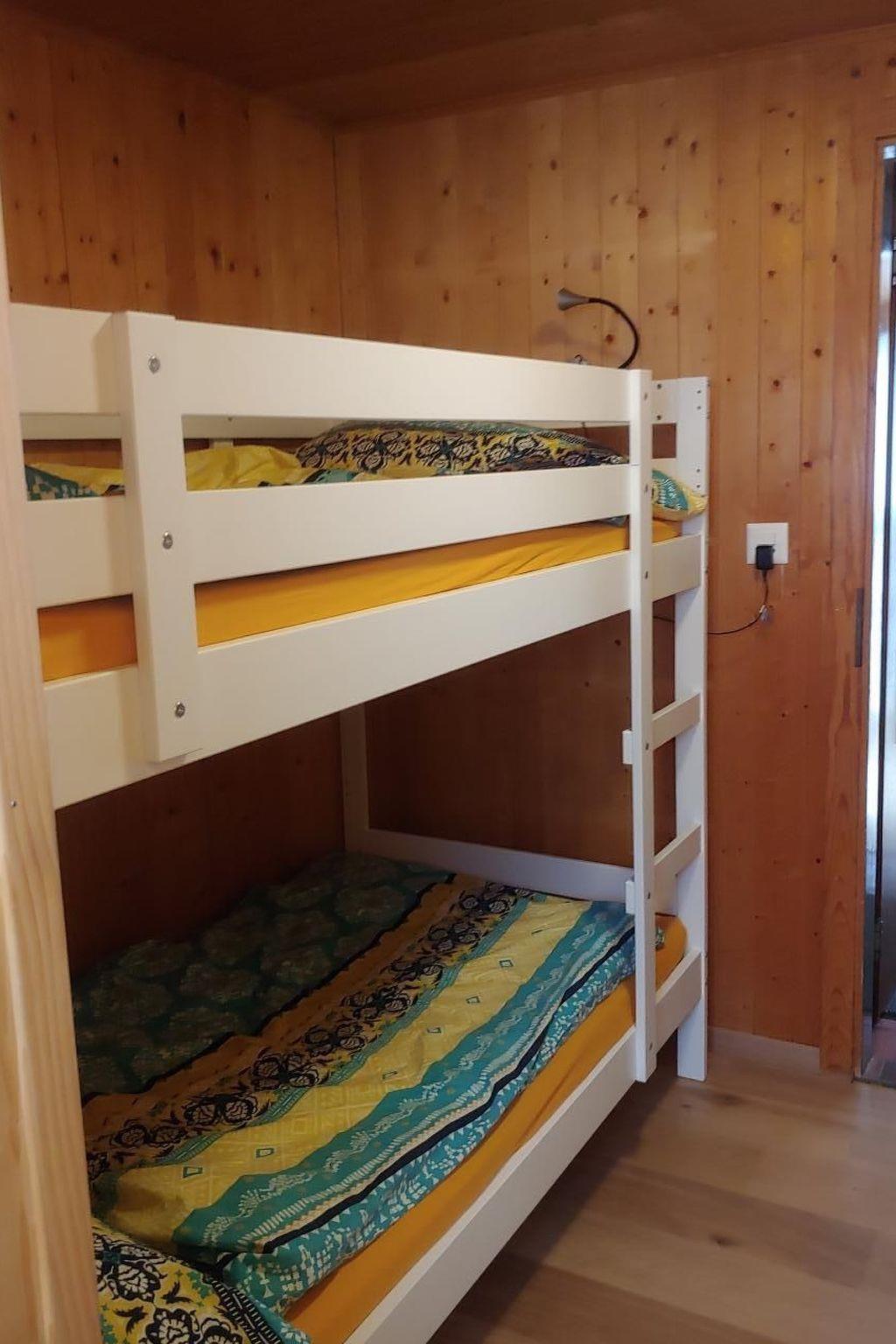 Inside, the house offers practical and clean furnishings to make your stay as comfortable as possible. It has a bedroom with a 140x200cm bed, a room with a 90x200cm bunk bed (max. 80kg), a small but nice bathroom with shower and WC, a cosy living room with a fireplace for cosy evenings and a conservatory. The kitchen is fully equipped with everything you need for cooking, a little vinegar and oil, salt and some spices. There is also a fondue and raclette set and a DELIZIO coffee machine with a few capsules. There is a sufficient water reserve in the cellar for drinking water, as the tap water is not directly drinkable.
