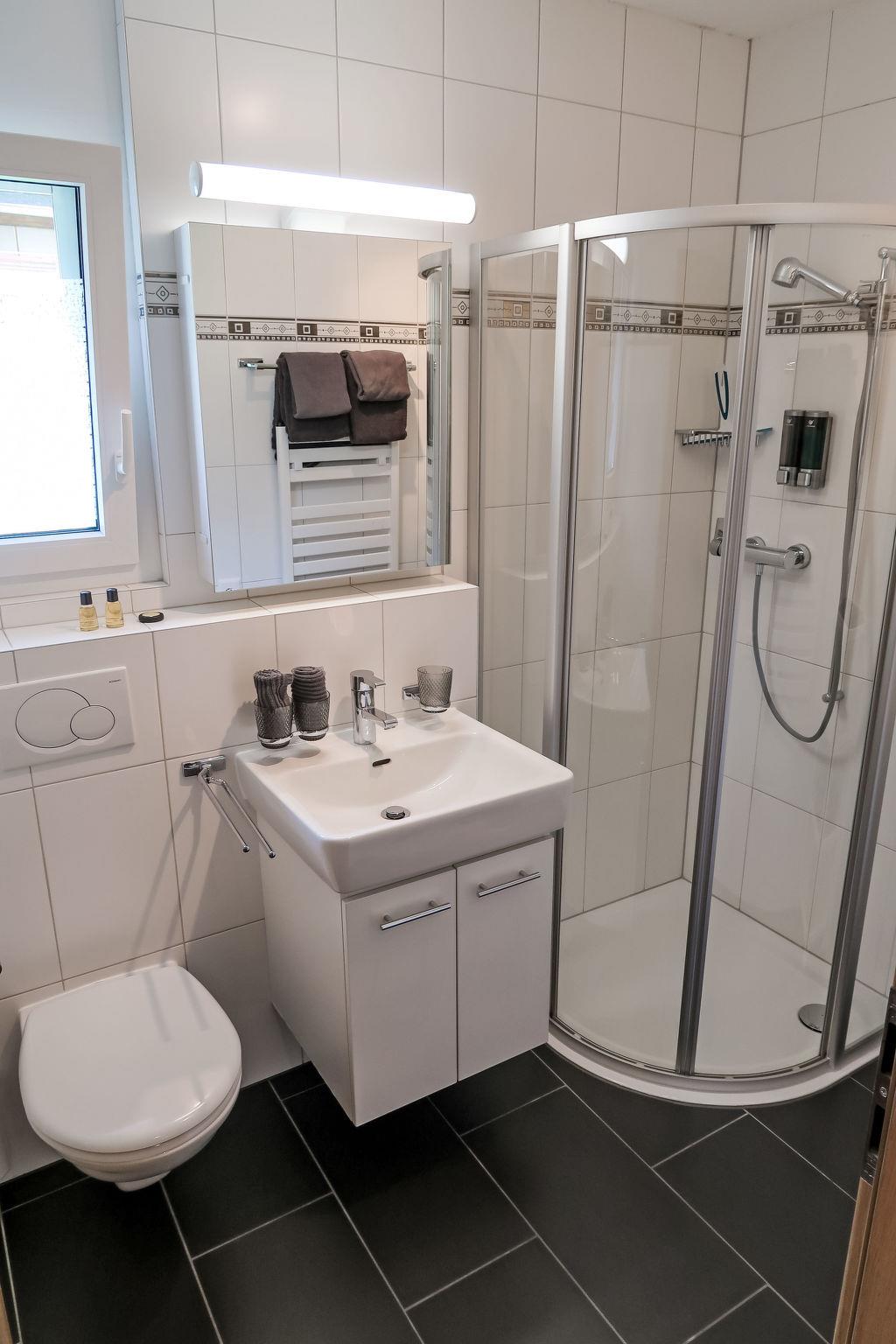 Comfortable apartment block "Iris A", 4 storeys, built in 2008. In the resort, in a central, sunny, elevated position, located by a road. In the complex: sauna, fitness room, steam room, hot tub, lift, central heating system, washing machine, tumble dryer (for shared use, extra). Communal covered parking. Shop 400 m, restaurant 200 m, bar, café 400 m, bus stop "Leukerbad, Obere Maressen" 250 m, thermal baths 400 m. Skisport facilities 600 m, ski bus stop 150 m, ice rink 1 km. A fitness and relaxation chalet is available to all residents among Iris houses. Relaxation area with Finnish sauna, aroma steam bath, hot tub. The Leukerbad Card Plus is included in the reservation. The Leukerbad Card Plus includes the following services: free use of Ringjet local bus, free access to the ski area for children Erli, free use of the sports center (badminton, tennis, squash, billiards, table tennis, skating, football, indoor football, mini-golf, boulder, etc.), 15 % discount on the purchase of pass and snow bath. 10% discount on subscriptions and the multiple entry tickets to public baths.