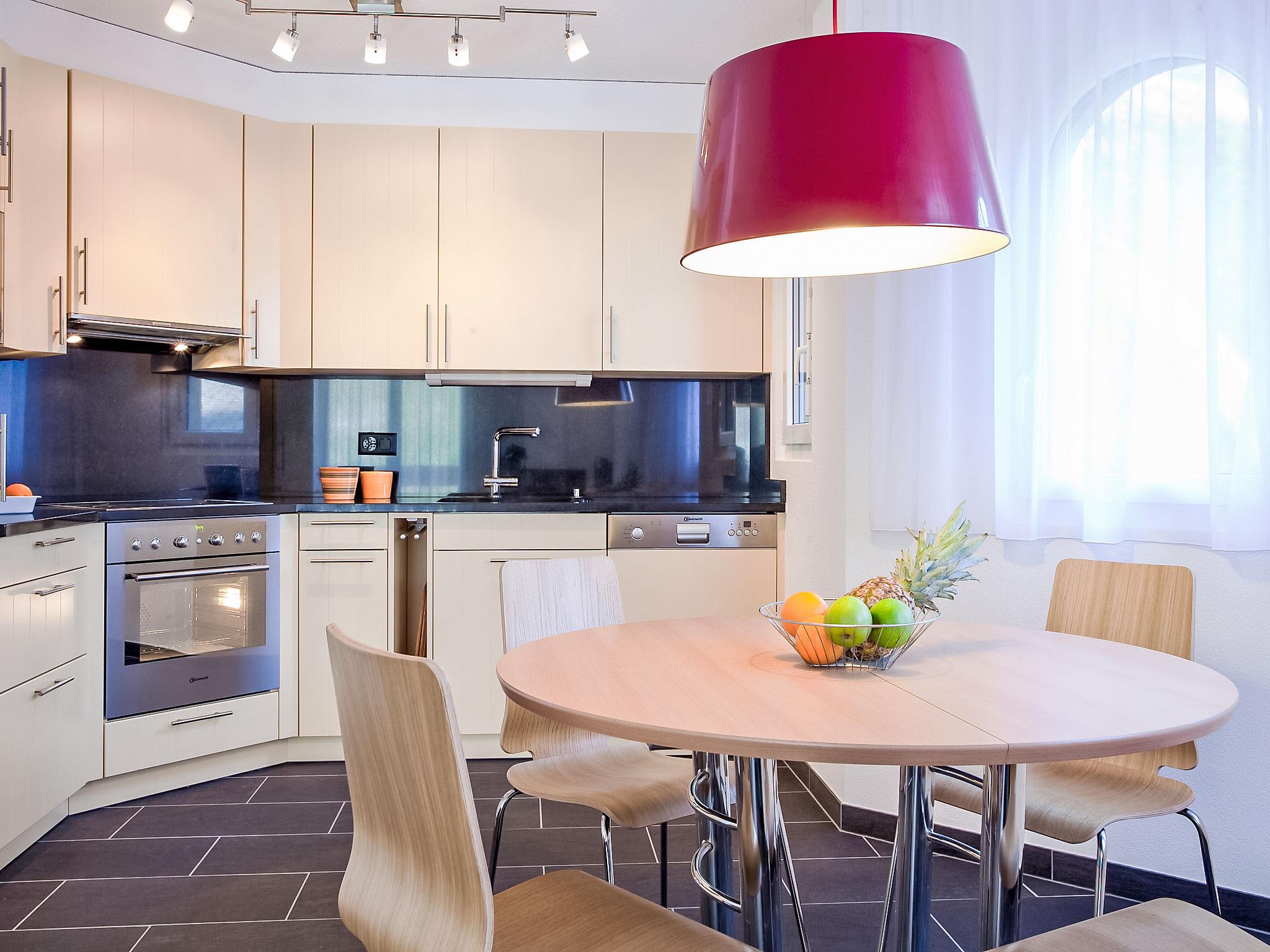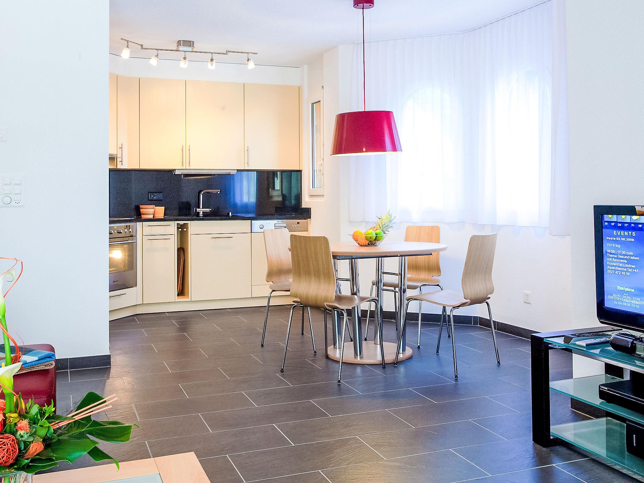Comfortable apartment block "Iris B", 5 storeys, built in 2008. In the resort, in a central, sunny, elevated position, located by a road. In the complex: sauna, fitness room, steam room, hot tub, lift, central heating system, washing machine, tumble dryer (for shared use, extra). Motor access to the house (mountain road). Communal covered parking, public parking 300 m. Shop 400 m, grocery 300 m, shopping centre 400 m, restaurant 100 m, bar, café 400 m, bus stop "Leukerbad, Obere Maressen" 250 m, thermal baths 400 m. Mountain railway, slopes 600 m, ski bus stop 150 m, ice rink 1 km. A fitness and relaxation chalet is available to all residents among Iris houses. Relaxation area with Finnish sauna, aroma steam bath, hot tub. The Leukerbad Card Plus is included in the reservation. The Leukerbad Card Plus includes the following services: free use of Ringjet local bus, free access to the ski area for children Erli, free use of the sports center (badminton, tennis, squash, billiards, table tennis, skating, football, indoor football, mini-golf, boulder, etc.), 15 % discount on the purchase of pass and snow bath. 10% discount on subscriptions and the multiple entry tickets to public baths.