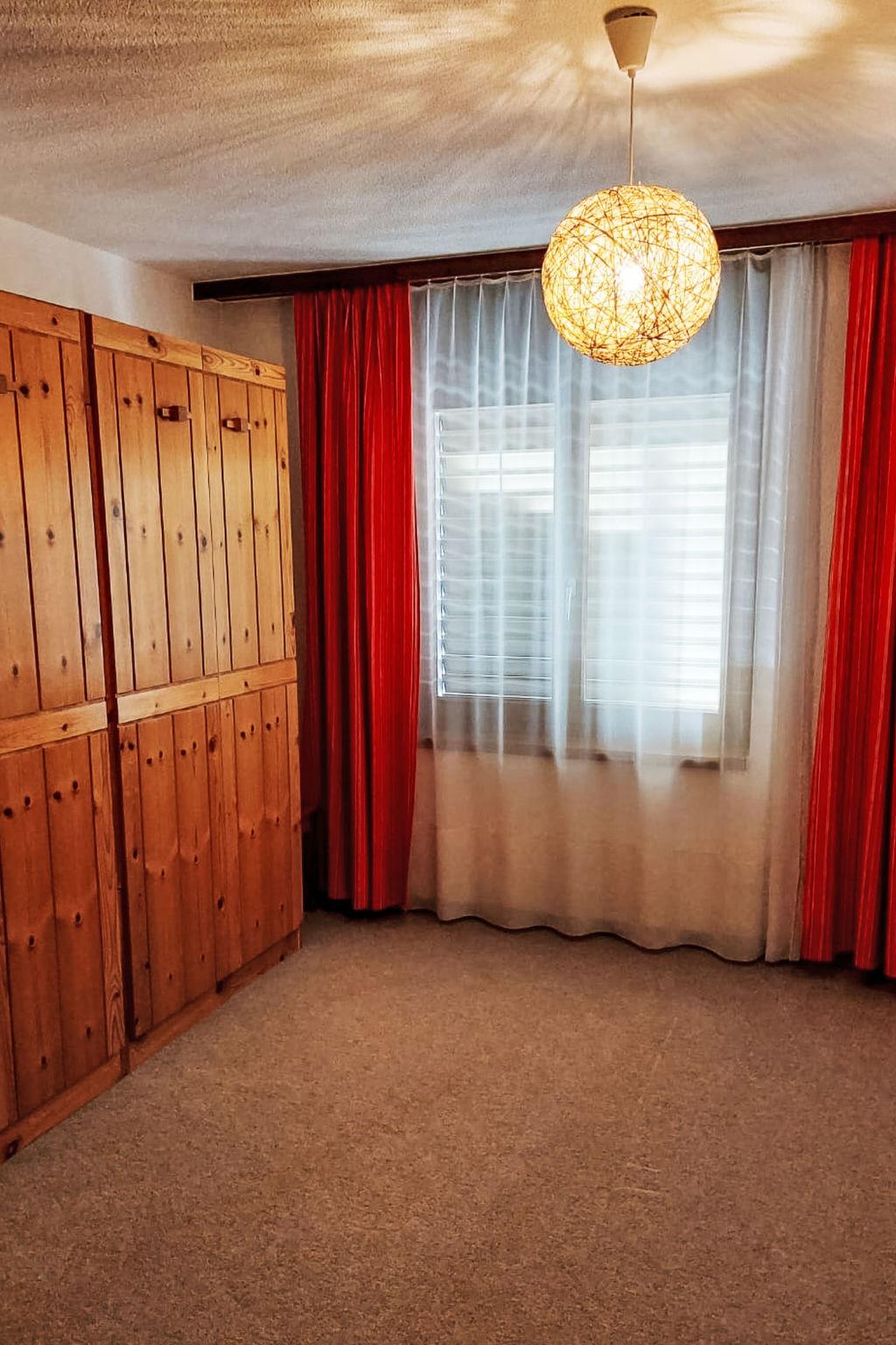 2-room apartment 65 m2 on 3rd floor. Practical and cosy furnishings: living/dining room with 1 double fold-away bed (140 cm, length 190 cm), dining table and cable TV (flat screen), hi-fi system. Exit to the balcony, south facing position. 1 room with 2 fold-away beds. Kitchen (4 hot plates, oven, microwave, electric coffee machine). Bath/WC. Balcony furniture, deck chairs (2). Very beautiful view of the mountains and the resort. Facilities: baby cot for up to 2 year olds. Internet (WiFi, free). Parking space n 10 (roofed). Please note: non-smokers only.