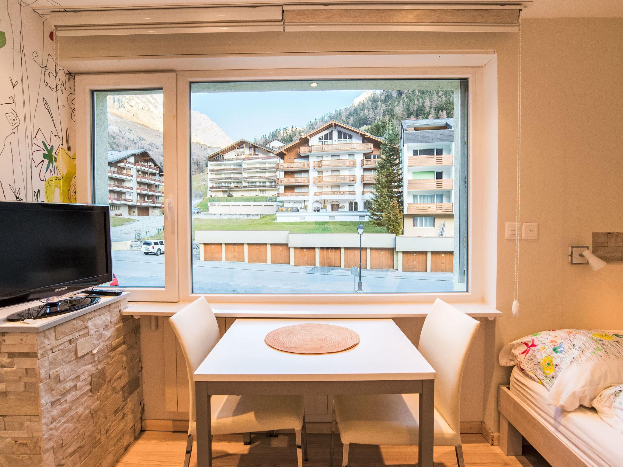 Large apartment house "Cristal", 1'441 m a.s.l., 5 storeys. In the resort Leukerbad, excellent location: right in the centre but still quiet. In the house: lift, storage room for skis, central heating system, washing machine (extra), tumble dryer (extra). Supermarket, restaurant 180 m, 5 minute walk to the centre, bus stop "Obere Maressen" 350 m, railway station "Bahnhof Leuk" 18 km, thermal baths "Leukerbad Therme" 700 m. Gondola lift 900 m, ski bus stop 350 m. Please note: In case of good snow conditions, the house is accessible on skis. Additional accommodations can be booked. The Leukerbad Plus Card is included in the booking.