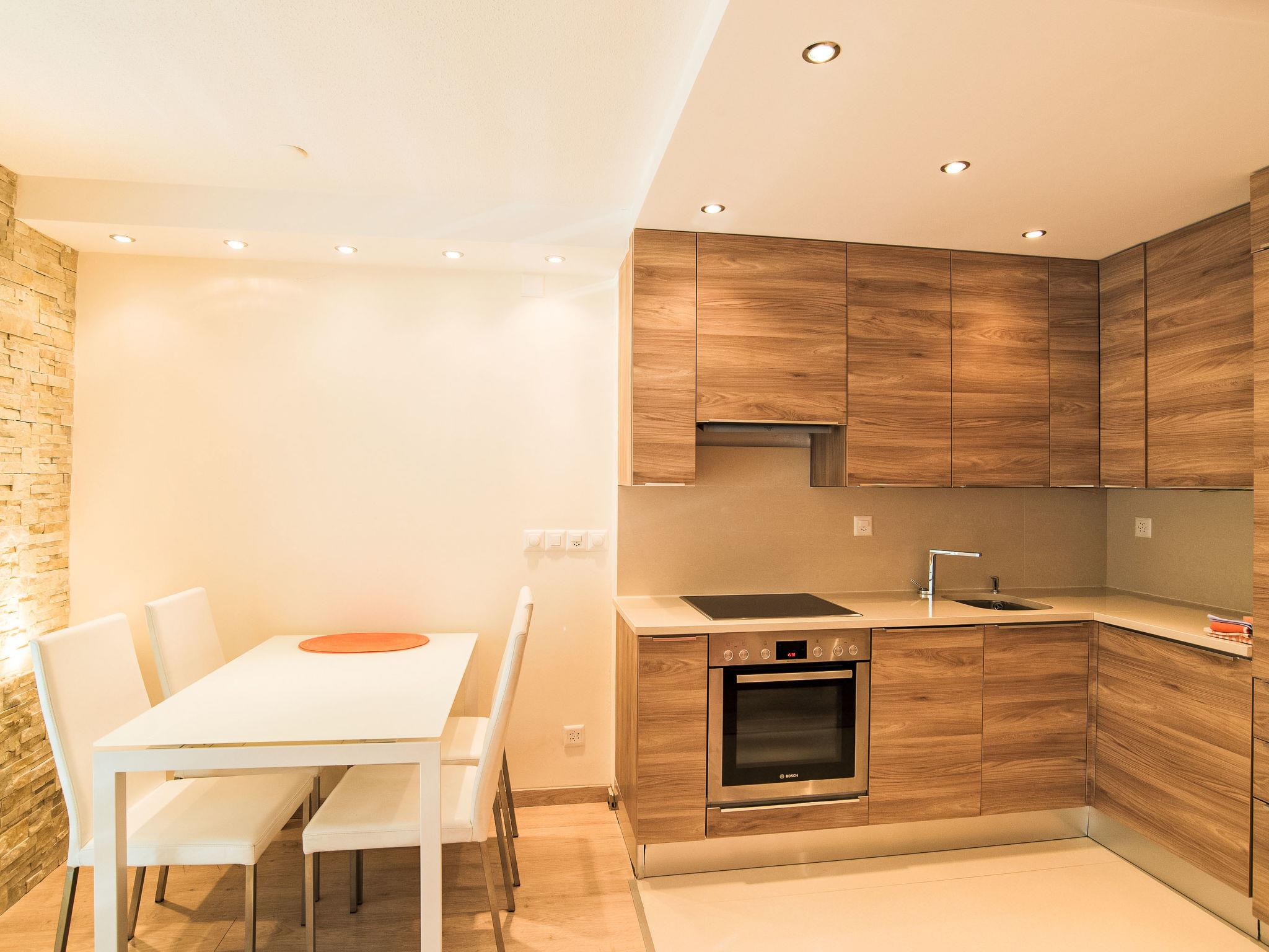 "Cristal 48", 1-room apartment 35 m2 on 2nd floor. Renovated, beautiful and cosy furnishings: living/sleeping room with 1 sofabed and 1 double bed (2 x 90 cm, length 200 cm), dining table and cable TV. Exit to the balcony. Open kitchen (oven, dishwasher, 4 ceramic glass hob hotplates, electric coffee machine). Shower/WC. Parquet floors. Large balcony. Balcony furniture. Panoramic view of the mountains. Facilities: hair dryer. Internet (WiFi, free). Please note: non-smokers only.