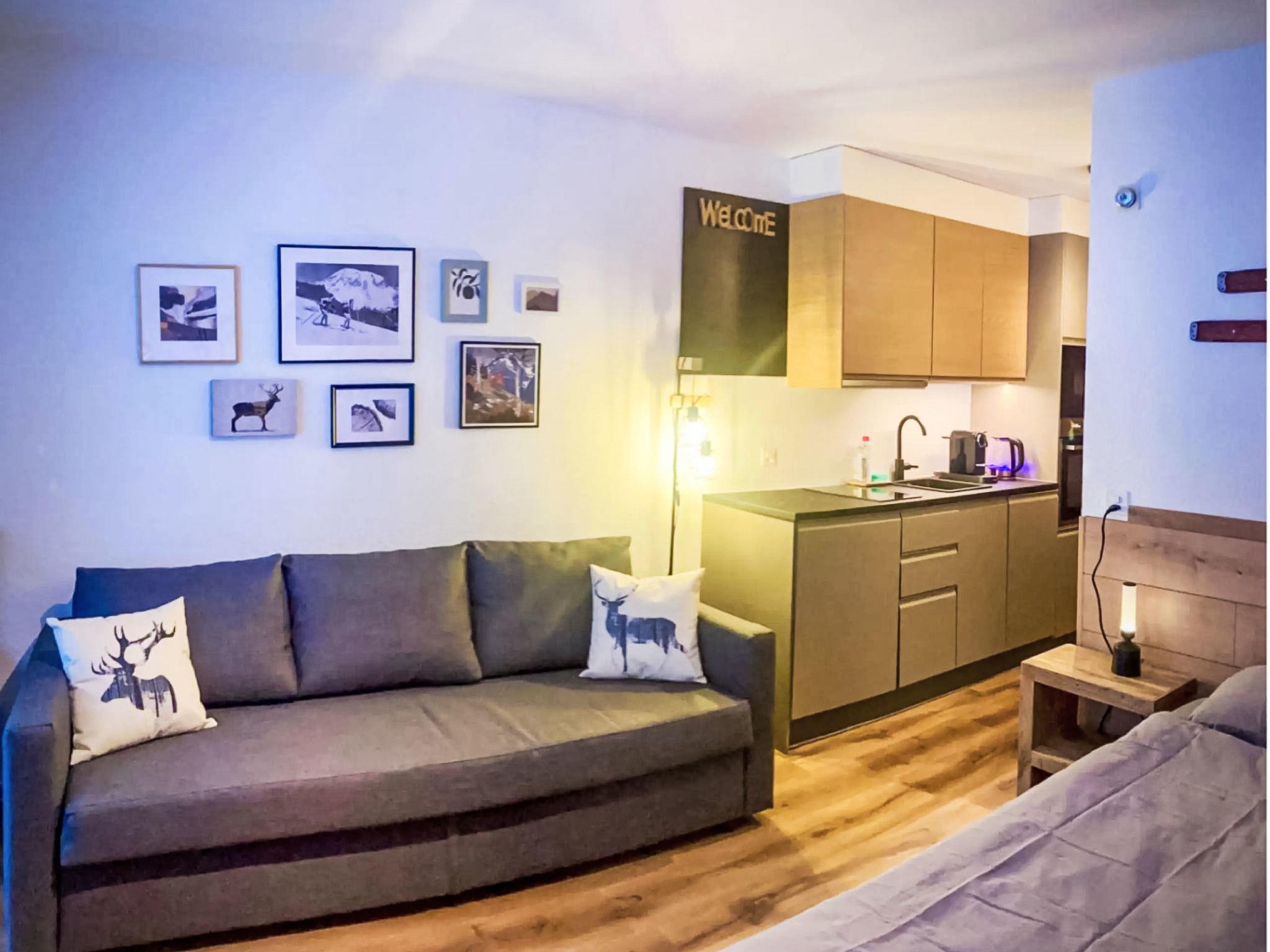 "Flaminia 24", 1-room apartment. Fully renovated in 2025, beautiful and tasteful furnishings: open living/sleeping room with 1 double sofabed (140 cm, length 200 cm), 1 double bed (160 cm, length 200 cm), dining table and digital TV. Exit to the balcony. Open kitchen (oven, dishwasher, 4 ceramic glass hob hotplates, kettle, freezer, electric coffee machine). Bath/WC. Heating. Parquet floors. Balcony. Balcony furniture. Very beautiful view of the mountains. Facilities: hair dryer. Internet (WiFi, free). Please note: non-smokers only.
