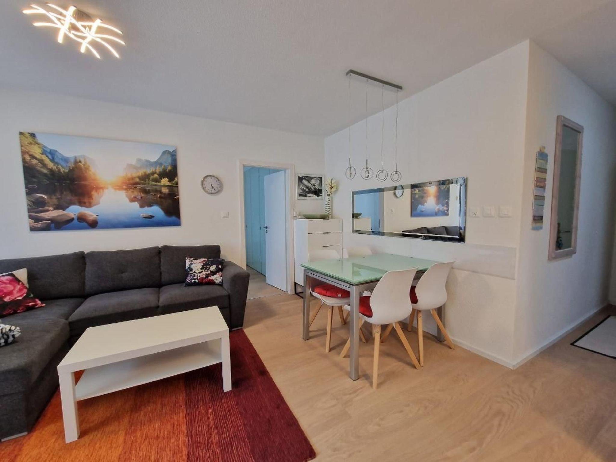Living room: Open to the kitchen, furnished with a comfortable sofa bed