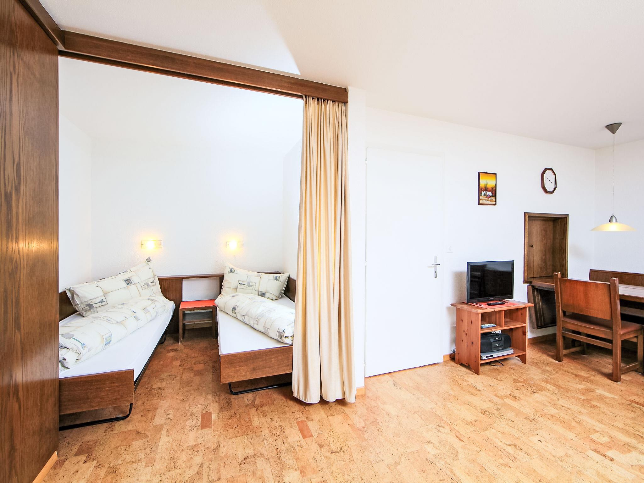 "Ringstrasse Apt 212", 1-room apartment 50 m2 on 2nd floor. Practical furnishings: living/dining room with 2 fold-away beds and cable TV (flat screen). Alcove with curtain with 2 beds. Kitchen (oven, dishwasher, 4 ceramic glass hob hotplates, microwave, electric coffee machine). Bath/WC. Balcony. Terrace furniture. View of the mountains and the valley. Facilities: Internet (WiFi, free). Please note: non-smokers only. Maximum 1 pet/ dog allowed. Instead of an enclosed bedroom, some sleeping areas are located in an open-plan area (gallery, alcove, etc.).