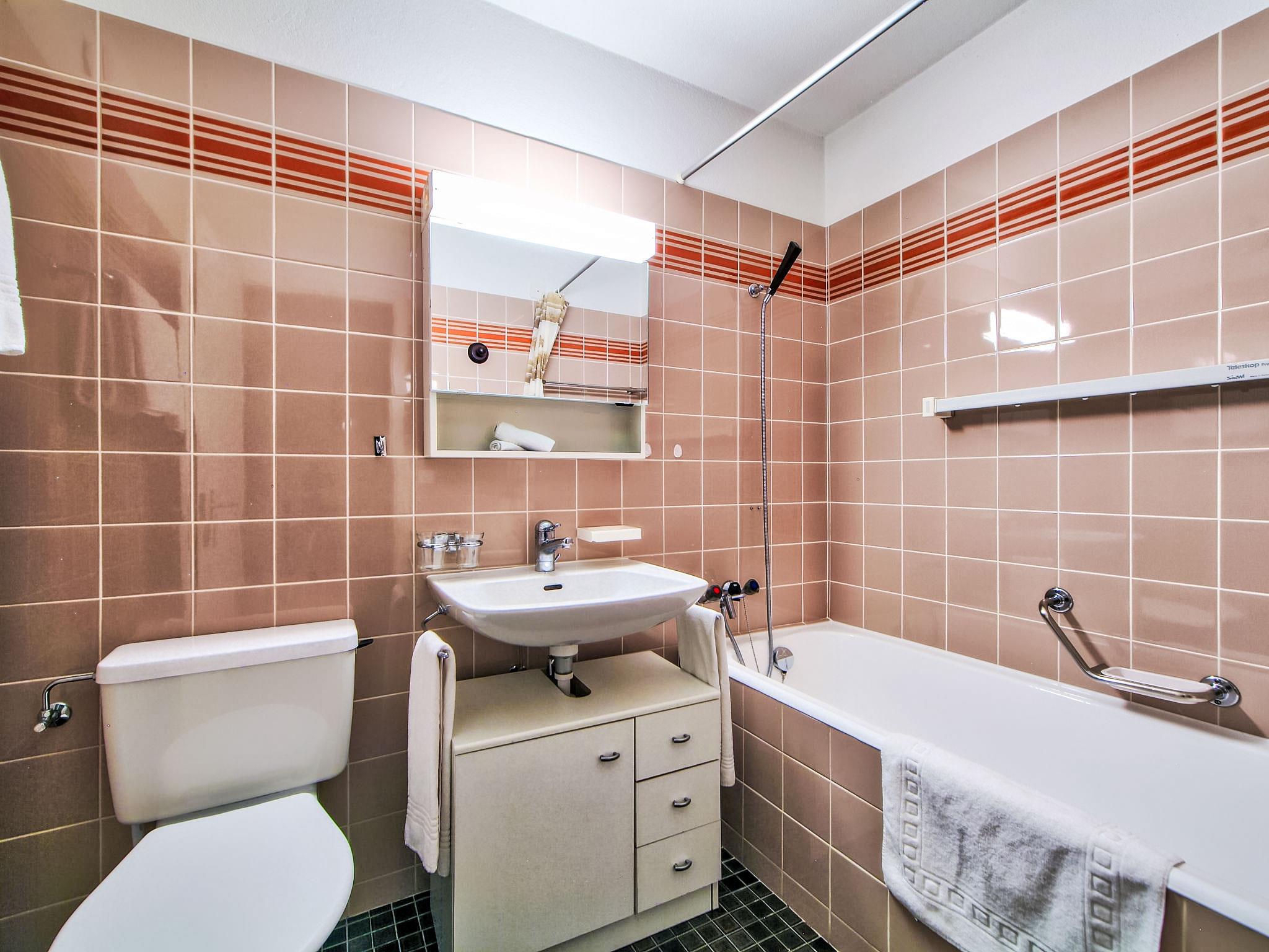 Apartment house right next to torrent railways. Residence "Ringstrasse (Utoring)". In the resort, 500 m from the centre, 20 m from the skiing area. In the house: bar, lounge, table tennis, playroom, lift, storage room for bicycles, storage room for skis, central heating system, washing machine, tumble dryer (extra). Bread roll service and beverage service. Motor access to the house (mountain road). In Winter: please take snow chains, 4x4 car recommended in winter. Parking at the house, public car park at 50 m, extra. Grocery, supermarket, restaurant 500 m, bus stop "Leukerbad, Bristol" 250 m, outdoor swimming pool 500 m, thermal baths 300 m. Tennis 500 m, cable car, gondola lift, skisport facilities, slopes 20 m, sled run, cross country ski track 500 m, ice rink 1 km. Well-known ski regions can easily be reached: Leukerbad Torrent 20 m. Hiking paths: Gemmi 1 km. The house is on the wooded south-west slope, right next to the torrent railways. Only a short stairway separates the house from the valley station. Parking: Winter: parking lot CHF 35.00/week, garage box CHF 70.00/week, summer: parking lot free, garage box CHF 35.00/week. Attention: Garage spaces are limited, reservation and confirmation only possible upon arrival! The Leukerbad Plus Card is included in the booking. The Leukerbad Plus Card includes the following services: Free use of the Ringjet local bus, free use of the beginner ski area "Snowpark Sportarena (Erli), free use of the sports arena (badminton, tennis, squash, billiards, table tennis, ice skating, football, indoor soccer, Mini golf, bouldering, etc.), 15% discount when buying a snow and bathing pass 10% discount on subscriptions and multiple entries in the public thermal baths and the mountain railways.
