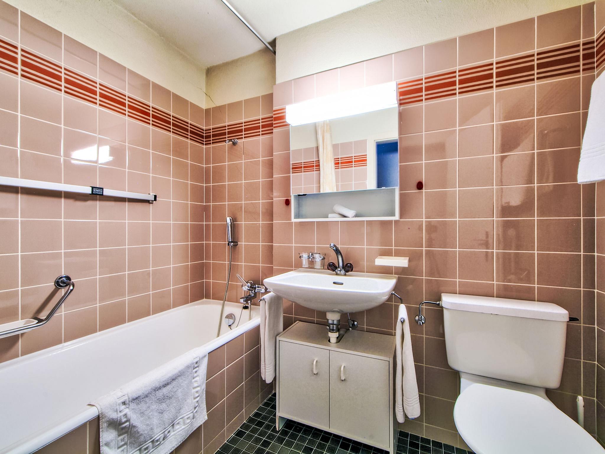 Apartment house right next to torrent railways. Residence "Ringstrasse (Utoring)". In the resort, 500 m from the centre, 20 m from the skiing area. In the house: bar, lounge, table tennis, playroom, lift, storage room for bicycles, storage room for skis, central heating system, washing machine, tumble dryer (extra). Bread roll service and beverage service. Motor access to the house (mountain road). In Winter: please take snow chains, 4x4 car recommended in winter. Parking at the house, public car park at 50 m, extra. Grocery, supermarket, restaurant 500 m, bus stop "Leukerbad, Bristol" 250 m, outdoor swimming pool 500 m, thermal baths 300 m. Tennis 500 m, cable car, gondola lift, skisport facilities, slopes 20 m, sled run, cross country ski track 500 m, ice rink 1 km. Well-known ski regions can easily be reached: Leukerbad Torrent 20 m. Hiking paths: Gemmi 1 km. The house is on the wooded south-west slope, right next to the torrent railways. Only a short stairway separates the house from the valley station. Parking: Winter: parking lot CHF 35.00/week, garage box CHF 70.00/week, summer: parking lot free, garage box CHF 35.00/week. Attention: Garage spaces are limited, reservation and confirmation only possible upon arrival! The Leukerbad Plus Card is included in the booking. The Leukerbad Plus Card includes the following services: Free use of the Ringjet local bus, free use of the beginner ski area "Snowpark Sportarena (Erli), free use of the sports arena (badminton, tennis, squash, billiards, table tennis, ice skating, football, indoor soccer, Mini golf, bouldering, etc.), 15% discount when buying a snow and bathing pass 10% discount on subscriptions and multiple entries in the public thermal baths and the mountain railways.