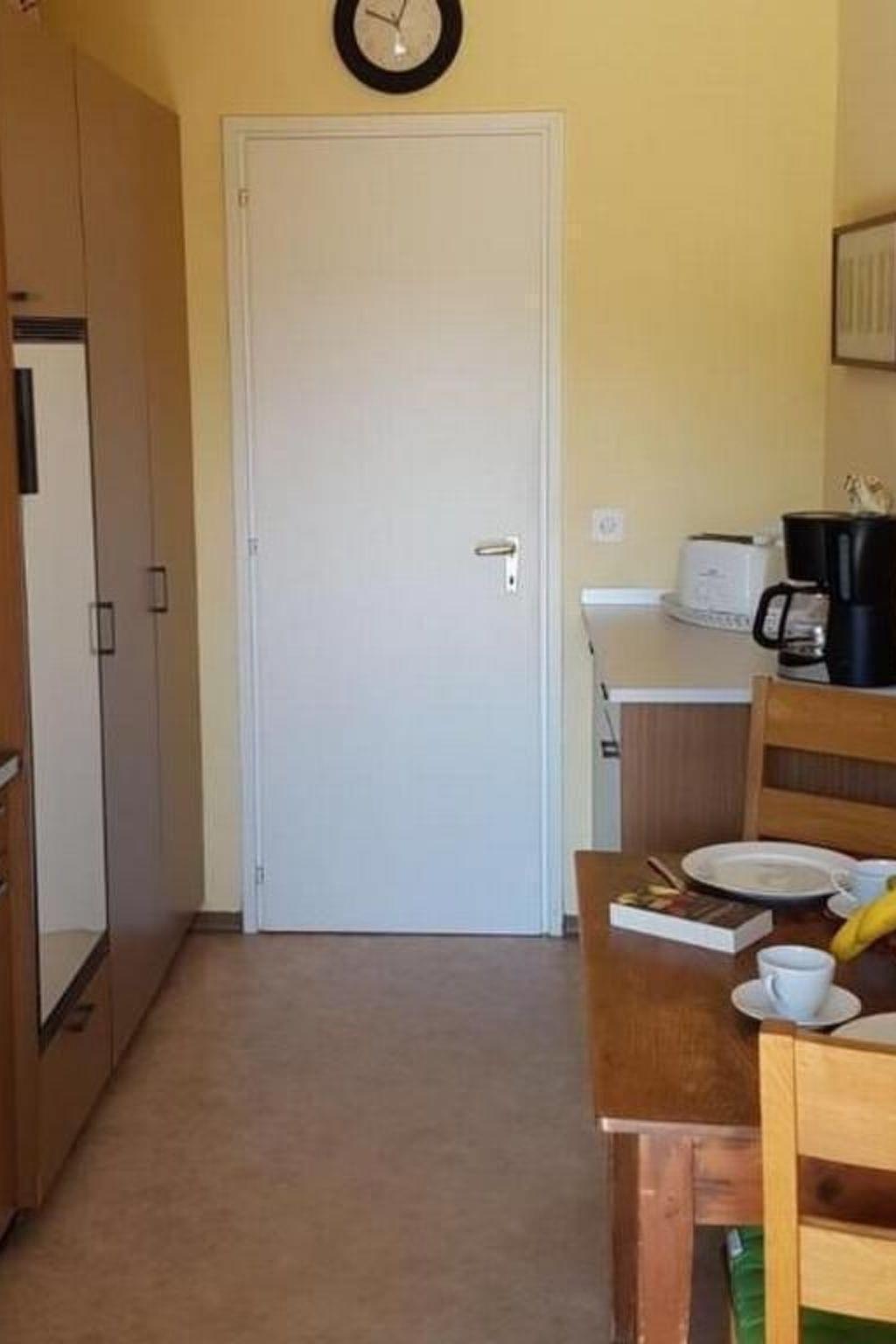 fully equipped with pots and pans, crockery and everything you need for cooking and baking, coffee machine for filter coffee and coffee machine for Dolce Gusto capsules. Cupboard with ironing board, iron, hoover and various cleaning products, double-sided heat-insulating patio door with separate flyscreen door to the