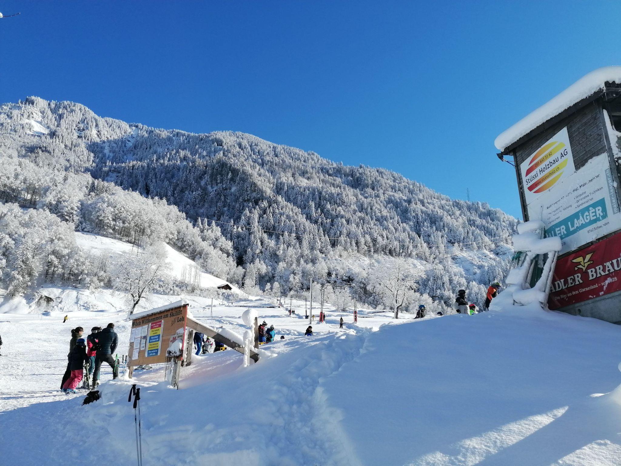 The favourable location of the chalet makes it possible to set off on hikes, snowshoe hikes and cross-country skiing directly from the front door. Mountain tours can be undertaken thanks to a cable car just 300 metres away, and a children's ski lift is also just a 5-minute walk away. In car-free Braunwald you will find a small, quiet, totally decelerated ski area, winter hiking trails with panoramic views of the Alps, an excellent ski school, lovely snow pubs, various playgrounds, alpine inns, a great via ferrata, bike trails, a small cross-country ski trail, a toboggan run and horse-drawn sleighs. In summer, there is no shortage of water sports and cooling off. There are over 70 small and large lakes to discover in Glarnerland, including Obersee, Muttssee, Klöntalersee and Walensee.