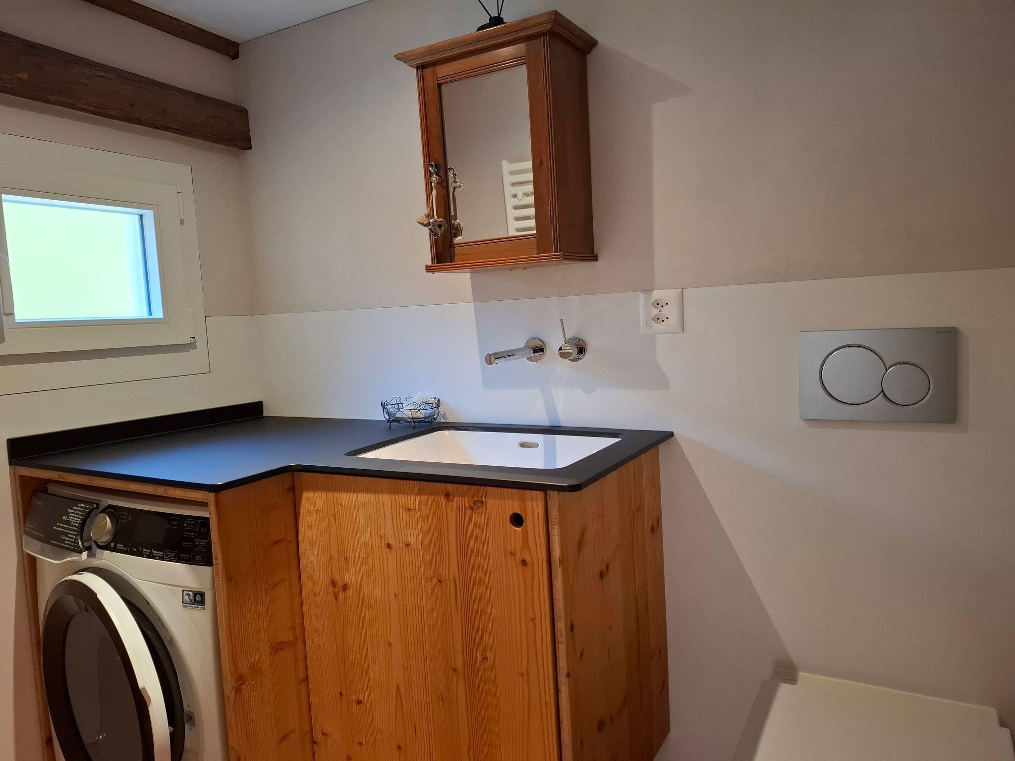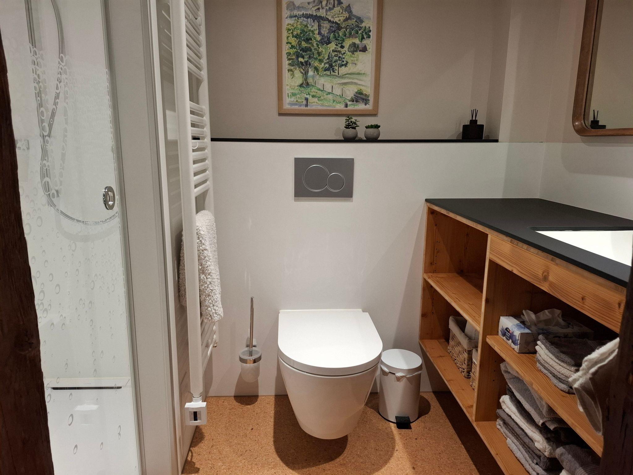 the Mattishüüsli was extensively renovated in 2025, with great emphasis placed on preserving the charm of grandmother's time. In the living room, for example, the tiled stove and the stove bench make for a cosy atmosphere. Entertainment is provided by lots of games, colouring materials and a Smart TV. The kitchen is also equipped with new appliances: ceramic hob, oven, dishwasher, steam extractor, espresso pot and capsule coffee machine, new utensils and good knives. The old, fully functional wood-burning cooker has been retained. With two cosy bedrooms that can be darkened, restful nights are guaranteed. Good to know: the structure of the Mattishüüsli is 300 years old, so the ceilings on the upper floor are low - head down recommended! A new bathroom with a large shower (120 x 90 cm) and a new guest WC with washing machine/tumbler add to the comfort.