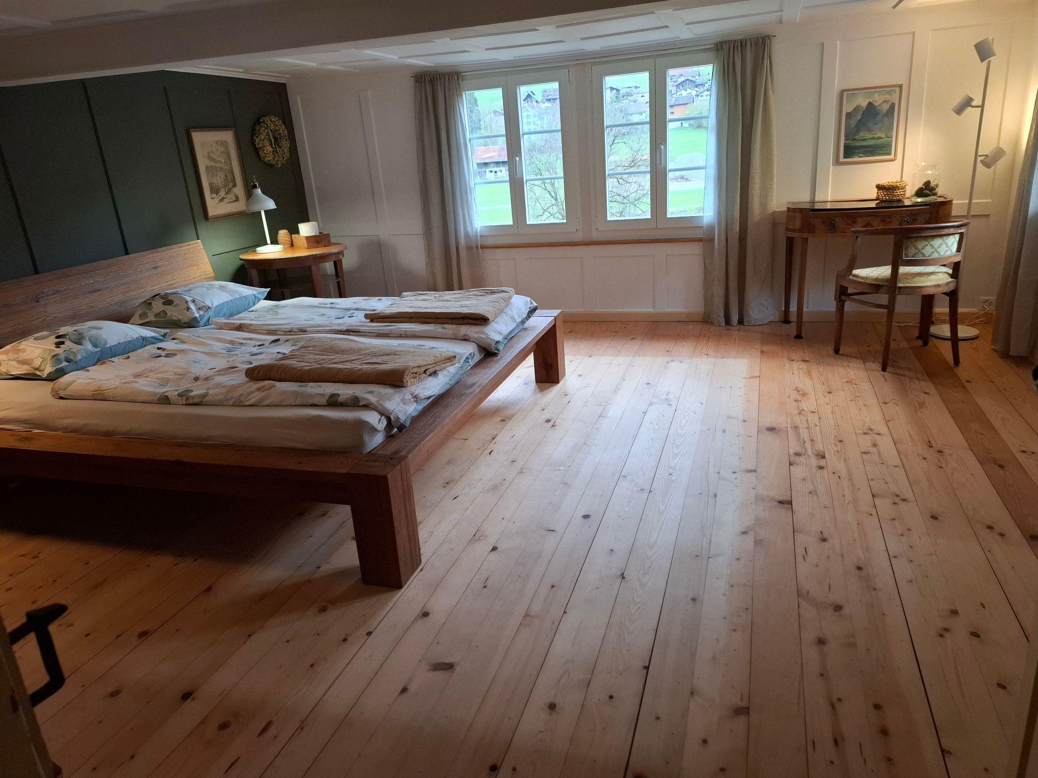 Discover the charming Mattishüüsli, a semi-detached wooden chalet. The small collection of 15 listed cottages from the 17th century offer an authentic country retreat in the heart of the Glarus Alps. The Mattishüüsli is the perfect place for anyone who wants to relax close to nature and in a quiet neighbourhood.
