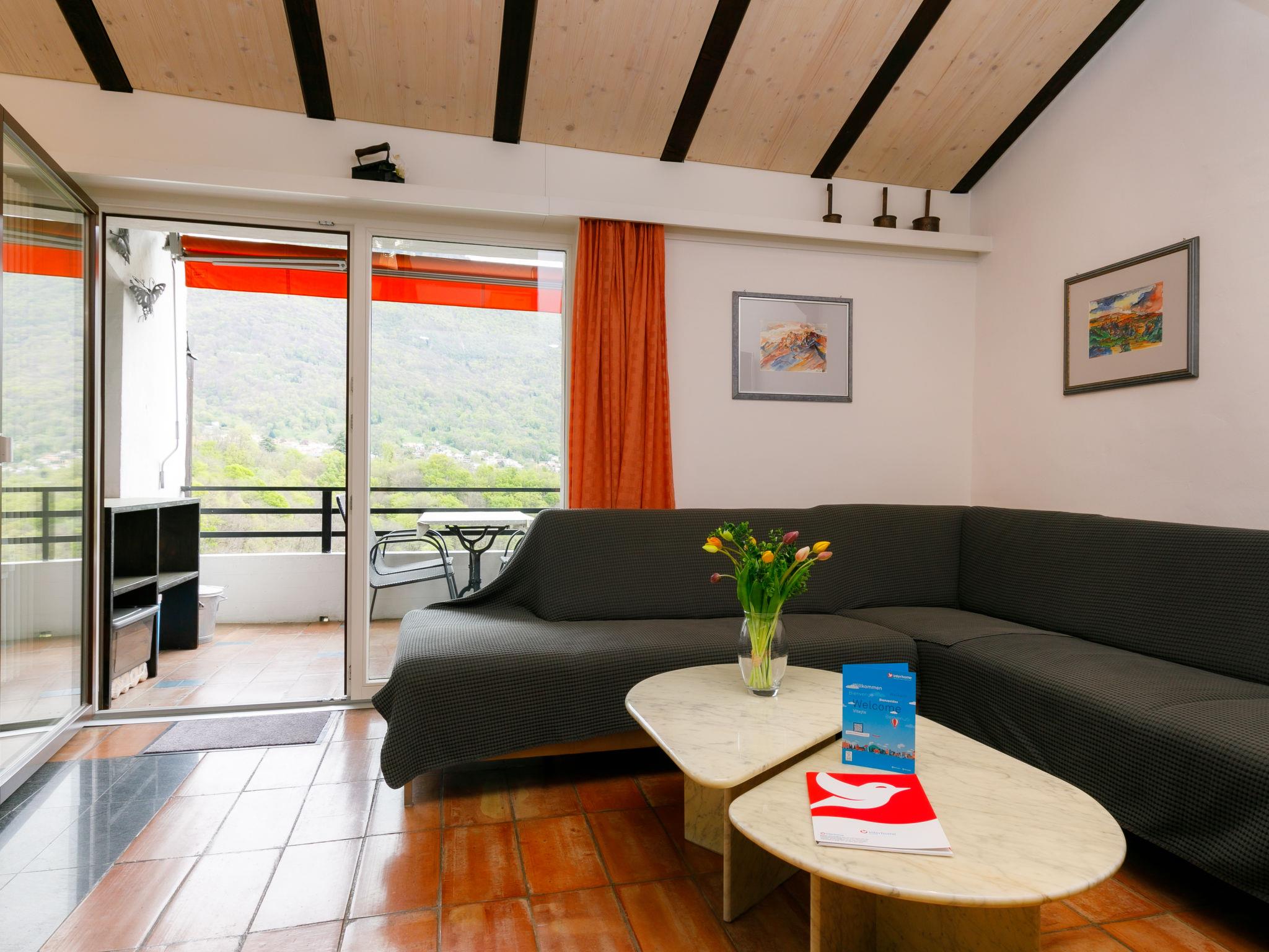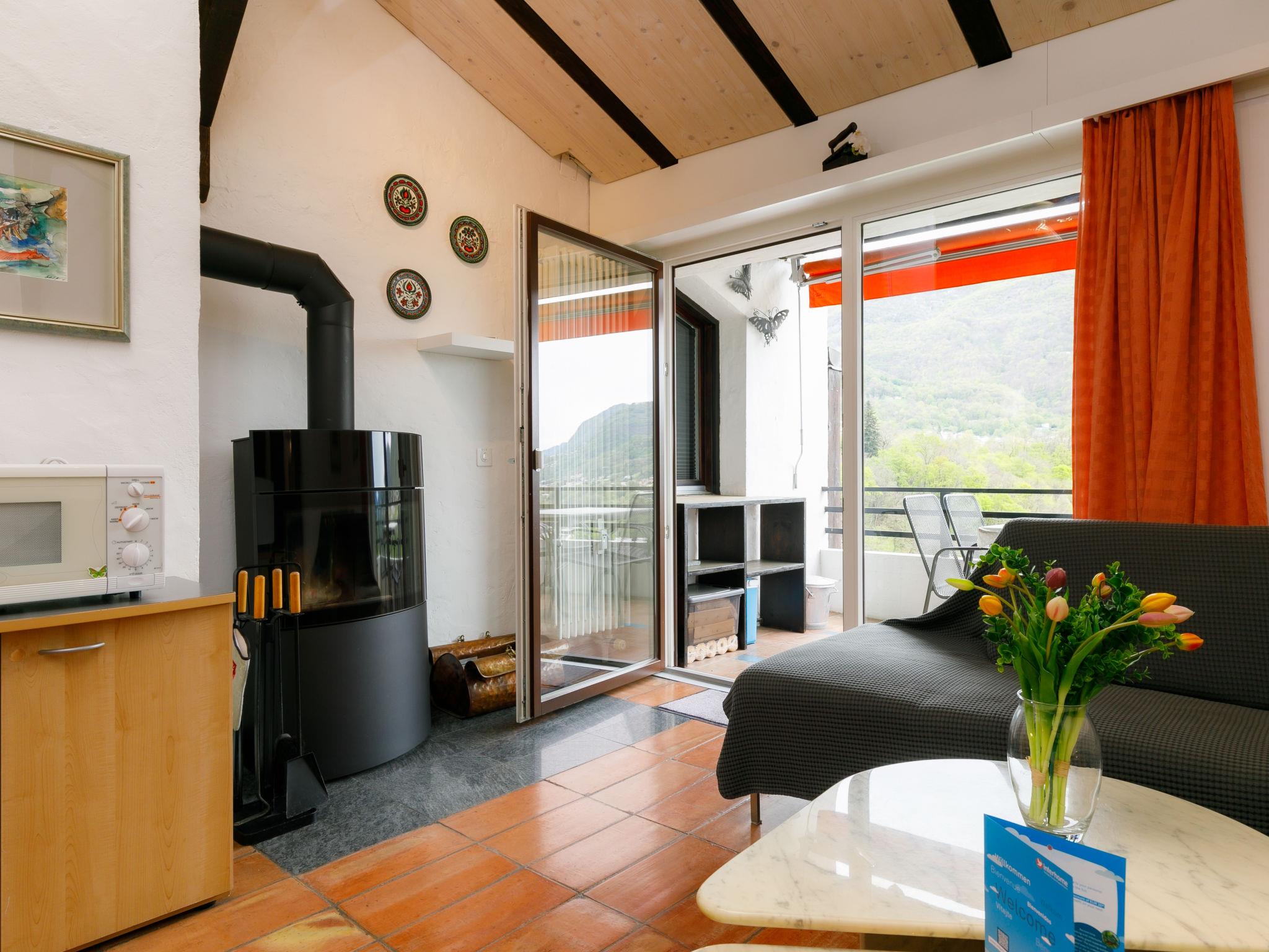 "Villaggio Sureggio - App. C1", 2-room apartment 47 m2 on 2 levels. Comfortable and cosy furnishings: open living/dining room with panoramic window with Scandinavian wood stove and satellite TV. Exit to the balcony. 1 room with 2 beds (90 cm, length 200 cm). (oven, 4 ceramic glass hob hotplates, toaster, kettle, microwave, electric coffee machine, Capsules for coffee machine (Nespresso) extra) with satellite TV. Exit to the balcony. Shower/WC. Electric heating. Upper floor: (steep stair) gallery with 2 beds (90 cm, length 200 cm). Natural stone floors. Balcony. Balcony furniture. Very beautiful view of the mountains and the countryside. Facilities: iron, hair dryer. Internet (WiFi). Parking space n 15 (roofed). Please note: suitable for families. Non-smokers only. Private entrance. Instead of an enclosed bedroom, some sleeping areas are located in an open-plan area (gallery, alcove, etc.). NL-00012000