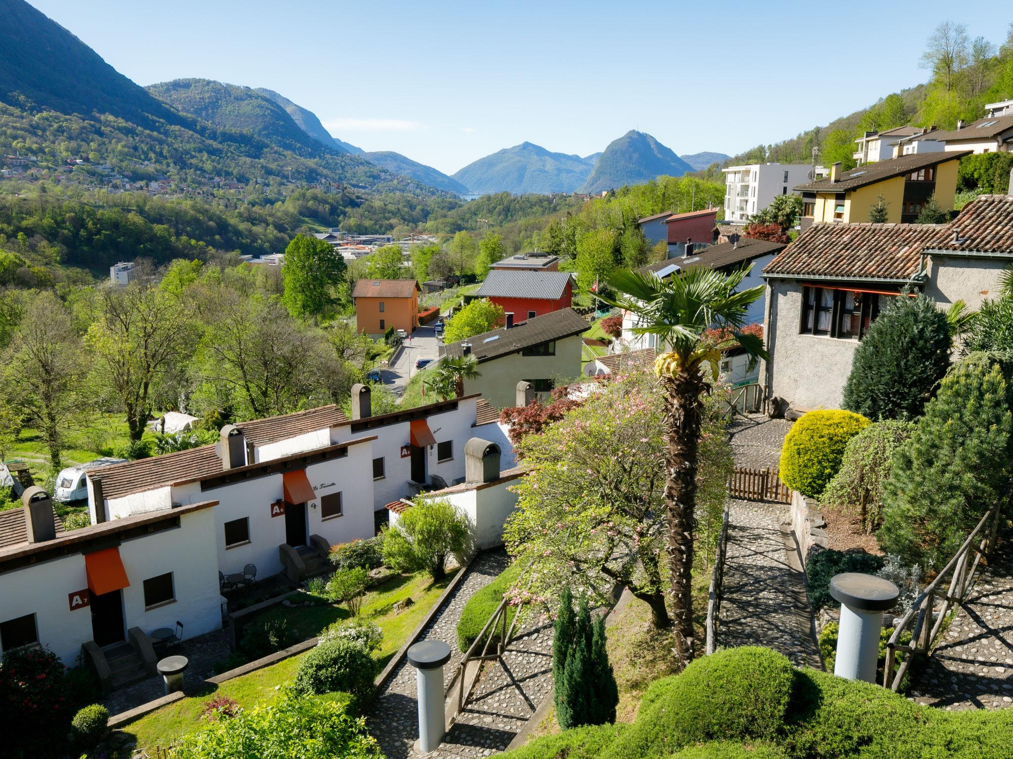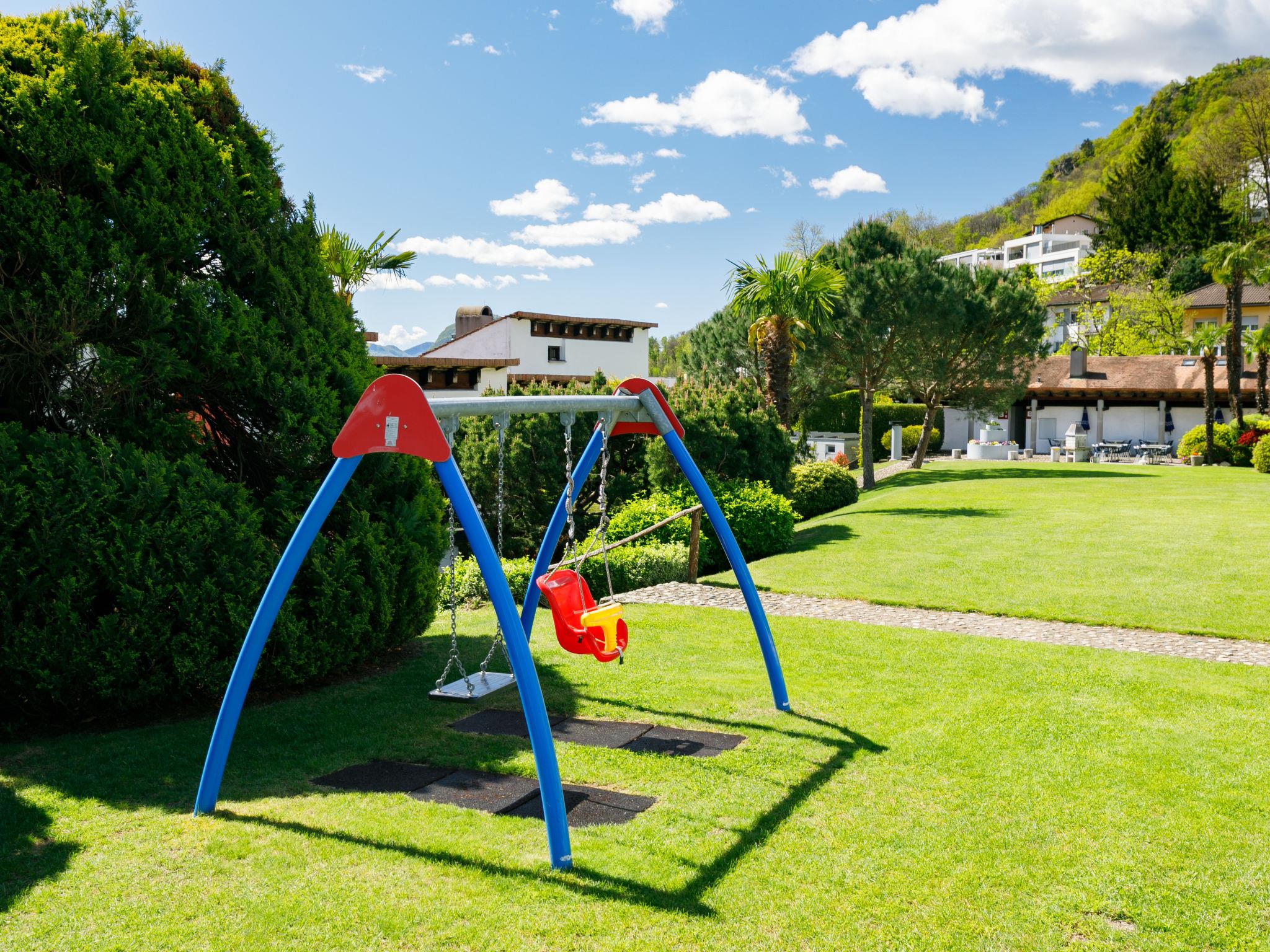 Lugaggia 7 km from Lugano: Large, child friendly residence "Villaggio Sureggio", 443 m a.s.l., surrounded by trees and meadows. 34 apartments in the residence. In the resort Sureggio, in a quiet, sunny position on a slope, in the countryside. For shared use: property, large, beautiful garden, lawn for sunbathing, swimming pool angular (seasonal availability: 01.May. - 30.Sep.) with internal staircase and shutter cover. Shower/WC in the pool area, children's pool, pergola, terrace, fireplace, children's playground. In the house: table tennis, table football, washing machine (extra), tumble dryer (extra). Motor access to the grounds. Roofed, parking on the premises. Grocery 2 km, restaurant 2 km, bus stop "ARL 461 Lugano - Tesserete" 10 m, railway station "Lugano" 7 km, outdoor swimming pool 2 km. Well-known lakes can easily be reached: Lago di Lugano, Lago di Origlio. Hiking paths: Monte Bar, Denti della Vecchia, Croce, San Lucio, Monte Bré, Monte Lema, MountainBike Gebiet Capriasca/ Tesserete. Please note: car-free holiday complex, no lift. Suitable for families, baby equipment on request (extra). The owner does not accept any youth groups. All houses/apartments are individually designed/furnished. Linen rental is mandatory, to be paid on site.
