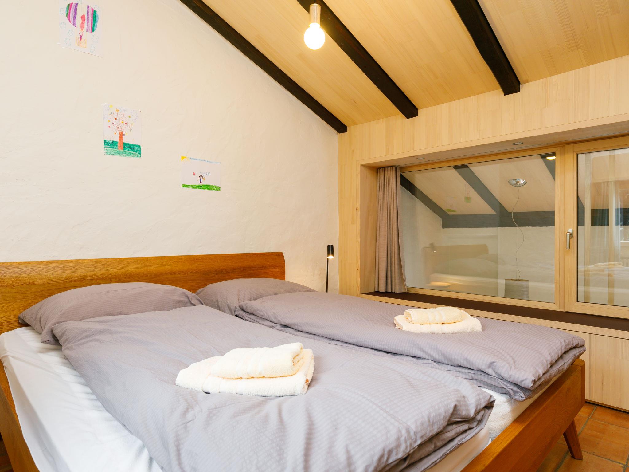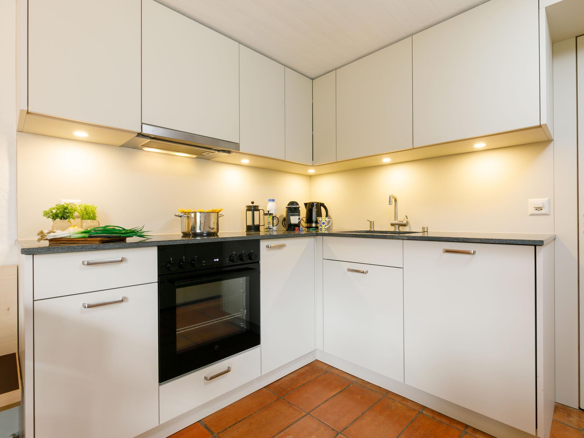 "Villaggio Sureggio A2 mit TicinoTicket", 3-room apartment 65 m2 on 2 levels. Comfortable and tasteful furnishings: living/sleeping room with 1 sofabed (160 cm, length 200 cm), open-hearth fireplace, dining table and satellite TV. Exit to the patio. Open kitchen (oven, dishwasher, 4 ceramic glass hob hotplates, toaster, electric coffee machine, Capsules for coffee machine (Nespresso) extra). Shower/WC. Electric heating. Upper floor: 1 double bedroom with 1 double bed (2 x 90 cm, length 200 cm). 1 room with 2 beds (90 cm, length 200 cm). Natural stone floors. Patio. Terrace furniture, deck chairs. Very beautiful panoramic view of the mountains and the countryside. Facilities: Internet (WiFi). Parking space n 2 (roofed). Please note: suitable for families. Non-smokers only. Private entrance. NL-00011994