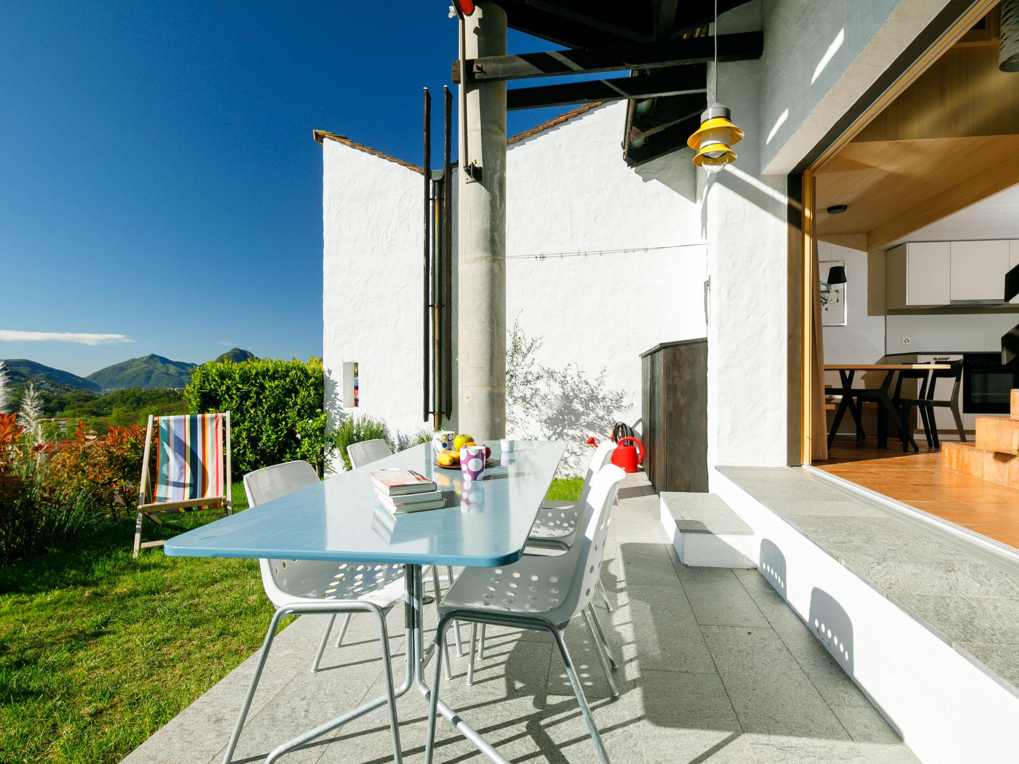 Lugaggia 7 km from Lugano: Large, child friendly residence "Villaggio Sureggio", 443 m a.s.l., surrounded by trees and meadows. 34 apartments in the residence. In the resort Sureggio, in a quiet, sunny position on a slope, in the countryside. For shared use: property, large, beautiful garden, lawn for sunbathing, swimming pool angular (seasonal availability: 01.May. - 30.Sep.) with internal staircase and shutter cover. Shower/WC in the pool area, children's pool, pergola, terrace, fireplace, children's playground. In the house: table tennis, table football, washing machine (extra), tumble dryer (extra). Motor access to the grounds. Roofed, parking on the premises. Grocery 2 km, restaurant 2 km, bus stop "ARL 461 Lugano - Tesserete" 10 m, railway station "Lugano" 7 km, outdoor swimming pool 2 km. Well-known lakes can easily be reached: Lago di Lugano, Lago di Origlio. Hiking paths: Monte Bar, Denti della Vecchia, Croce, San Lucio, Monte Bré, Monte Lema, MountainBike Gebiet Capriasca/ Tesserete. Please note: car-free holiday complex, no lift. Suitable for families, baby equipment on request (extra). The owner does not accept any youth groups. All houses/apartments are individually designed/furnished. Linen rental is mandatory, to be paid on site.