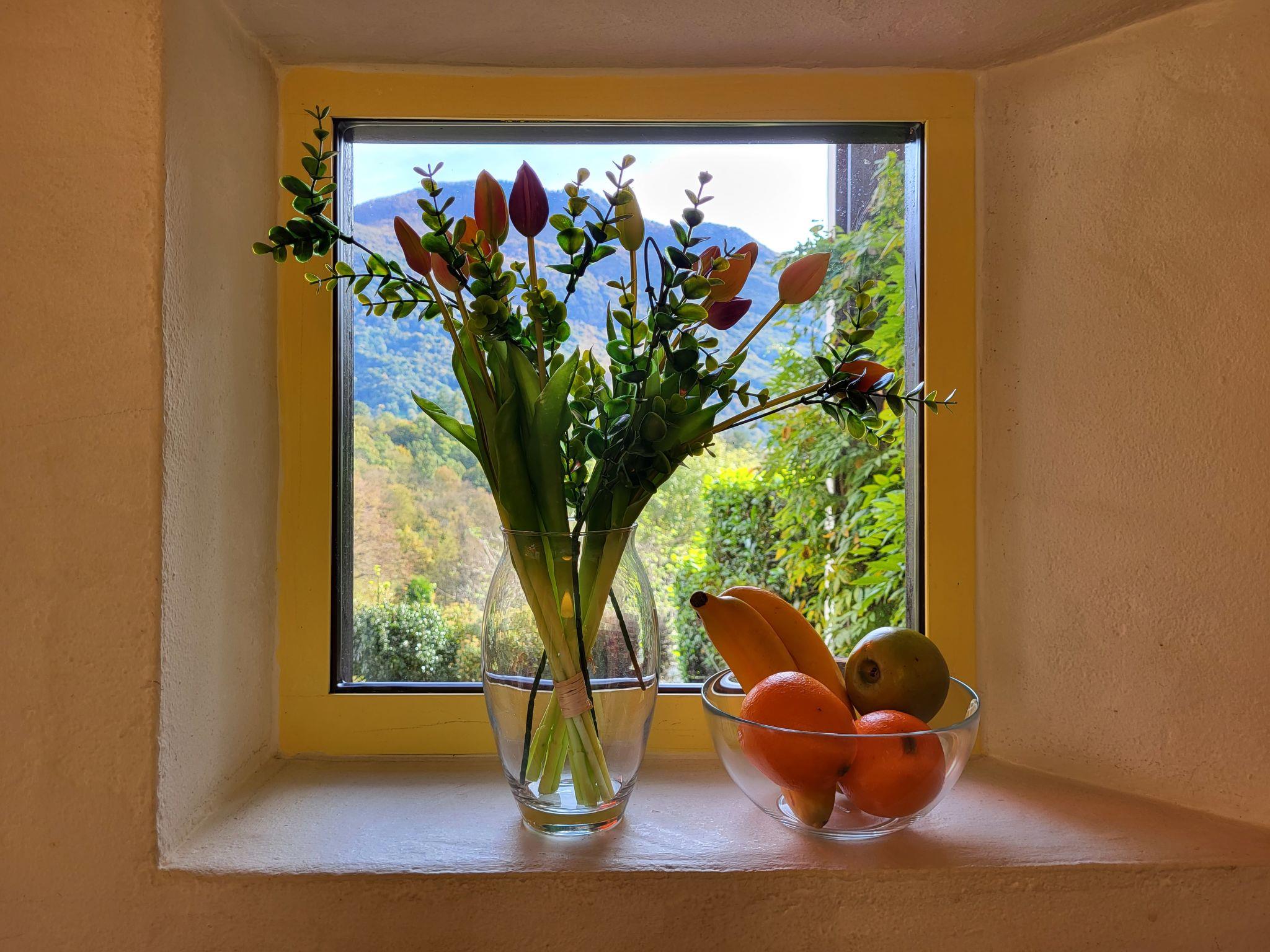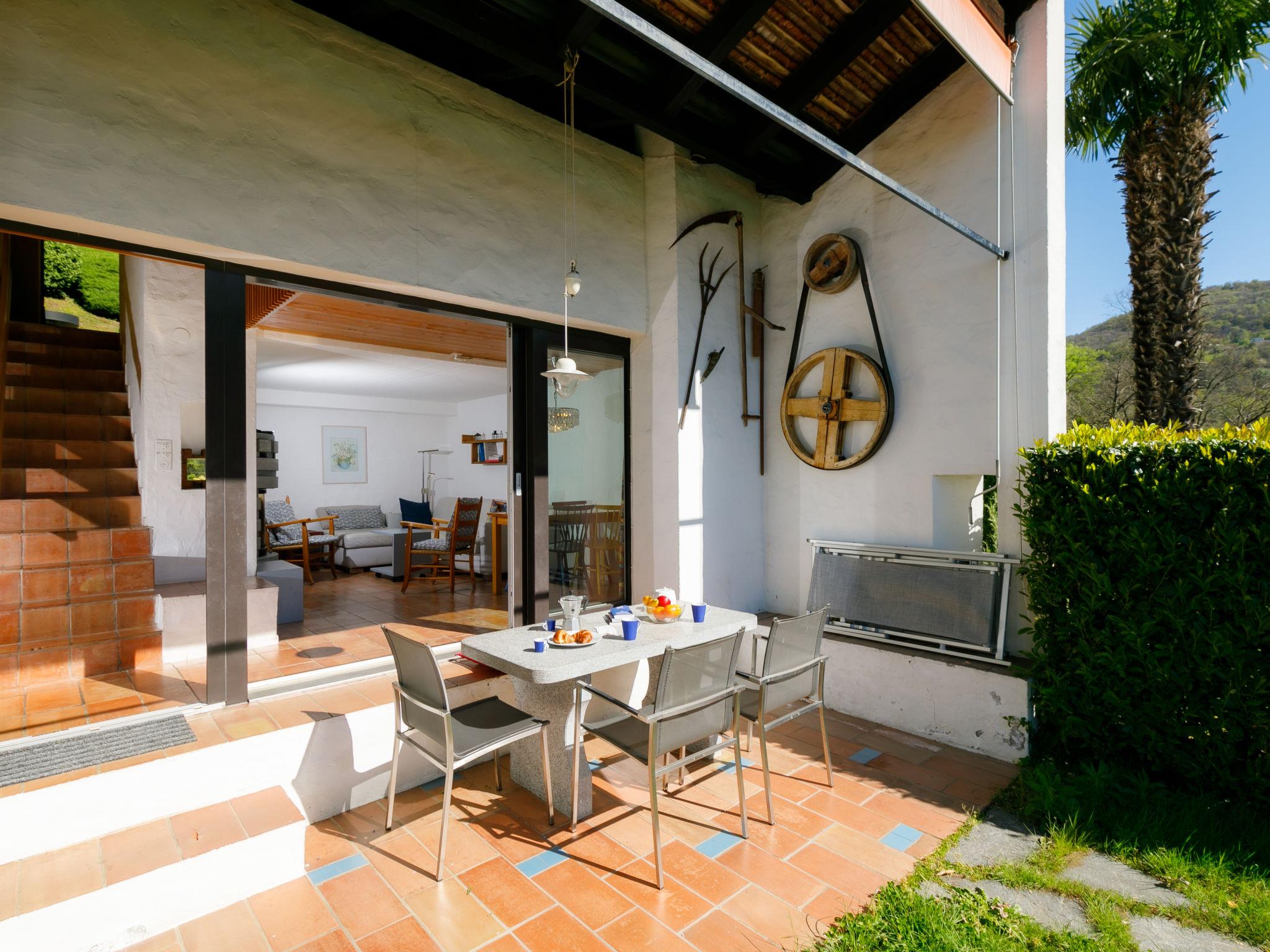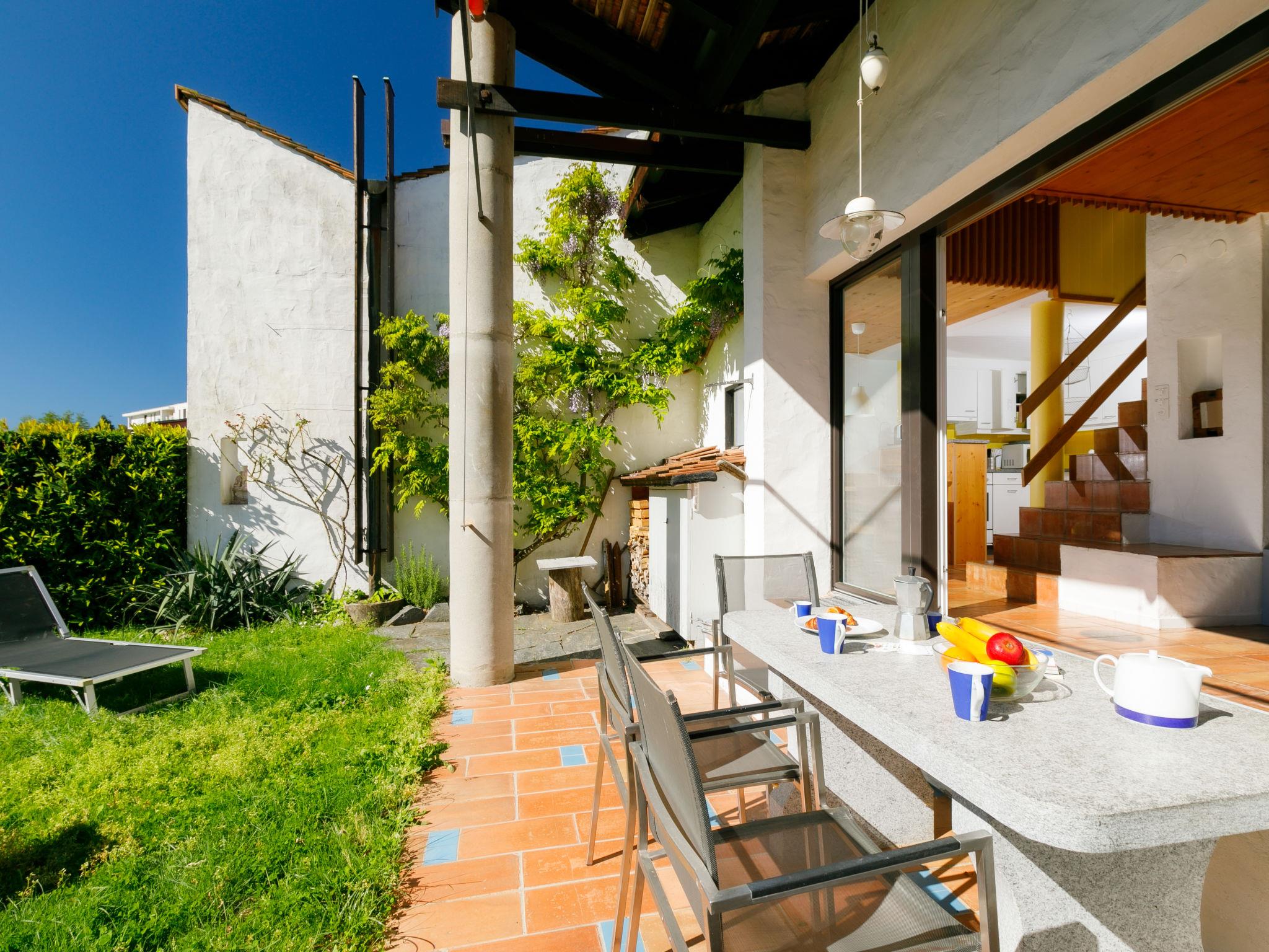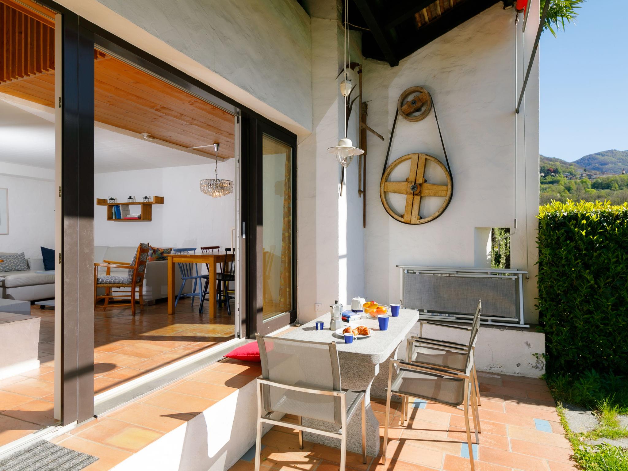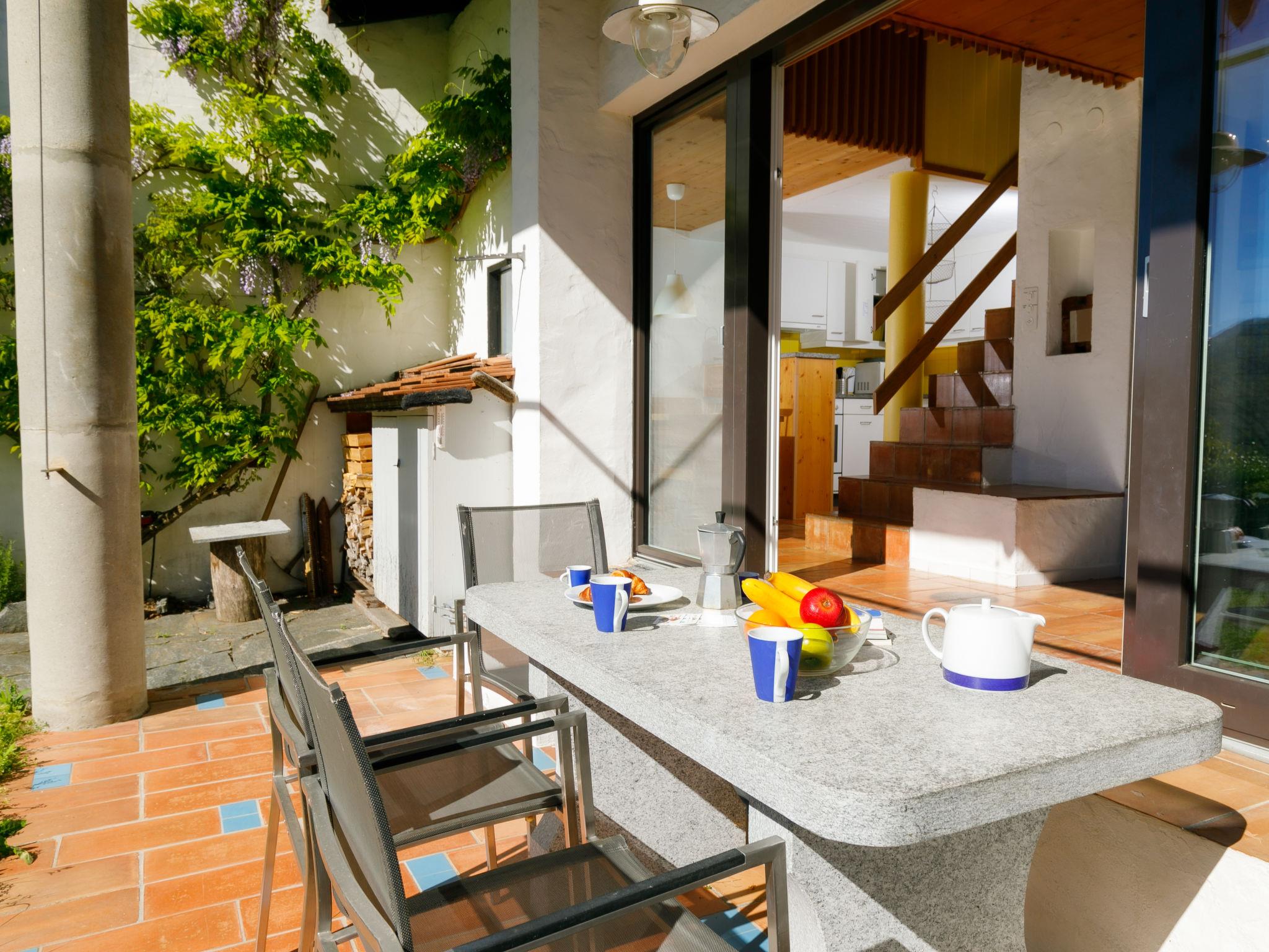 "Villaggio Sureggio A7 mit TicinoTicket", 3-room apartment 65 m2 on 2 levels. Comfortable and cosy furnishings: open living/dining room with open-hearth fireplace and satellite TV. Exit to the patio. (oven, dishwasher, 4 ceramic glass hob hotplates, toaster, kettle, microwave, electric coffee machine, Capsules for coffee machine (Nespresso) extra, raclette grill, fondue Set (chinoise, cheese)). Shower/WC. Electric heating. Upper floor: 1 double bedroom with 1 double bed (2 x 90 cm, length 200 cm). 1 room with 1 bed (90 cm, length 200 cm), 1 x 2 bunk beds (90 cm, length 200 cm). Shower/WC. Electric heating. Natural stone floors. Patio. Terrace furniture, deck chairs. Very beautiful panoramic view of the mountains and the countryside. Facilities: Internet (WiFi). Parking space n 8 (roofed). Please note: suitable for families. Non-smokers only, parking space for small car only. Maximum 1 pet/ dog allowed. Private entrance. NL-00011999