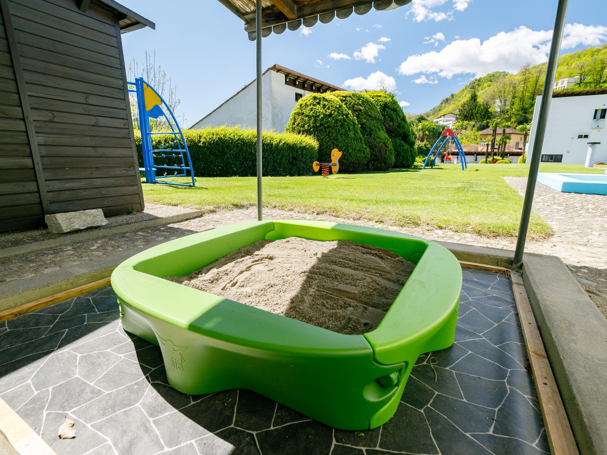 Lugaggia 7 km from Lugano: Large, child friendly residence "Villaggio Sureggio", 443 m a.s.l., surrounded by trees and meadows. 34 apartments in the residence. In the resort Sureggio, in a quiet, sunny position on a slope, in the countryside. For shared use: property, large, beautiful garden, lawn for sunbathing, swimming pool angular (seasonal availability: 01.May. - 30.Sep.) with internal staircase and shutter cover. Shower/WC in the pool area, children's pool, pergola, terrace, fireplace, children's playground. In the house: table tennis, table football, washing machine (extra), tumble dryer (extra). Motor access to the grounds. Roofed, parking on the premises. Grocery 2 km, restaurant 2 km, bus stop "ARL 461 Lugano - Tesserete" 10 m, railway station "Lugano" 7 km, outdoor swimming pool 2 km. Well-known lakes can easily be reached: Lago di Lugano, Lago di Origlio. Hiking paths: Monte Bar, Denti della Vecchia, Croce, San Lucio, Monte Bré, Monte Lema, MountainBike Gebiet Capriasca/ Tesserete. Please note: car-free holiday complex, no lift. Suitable for families, baby equipment on request (extra). The owner does not accept any youth groups. All houses/apartments are individually designed/furnished. Linen rental is mandatory, to be paid on site.