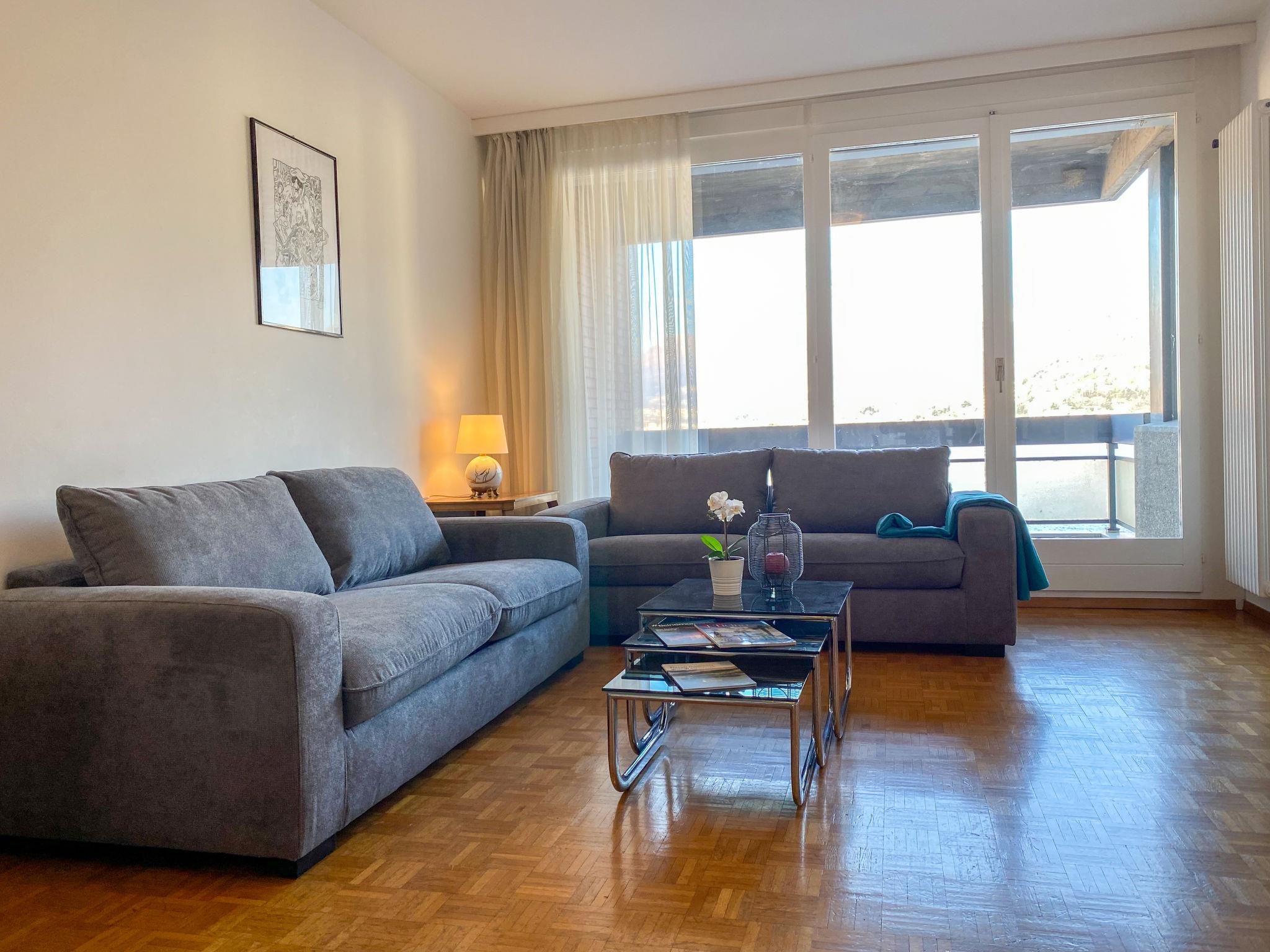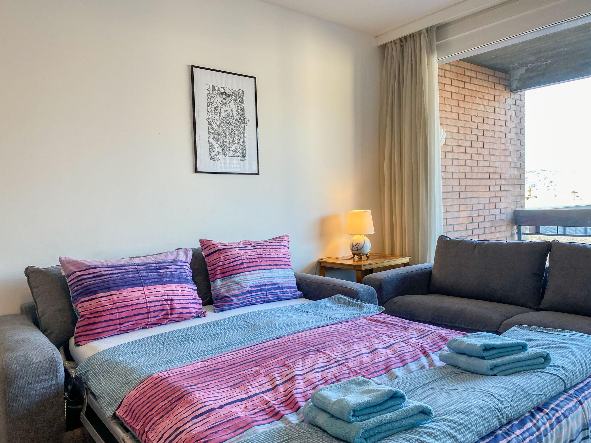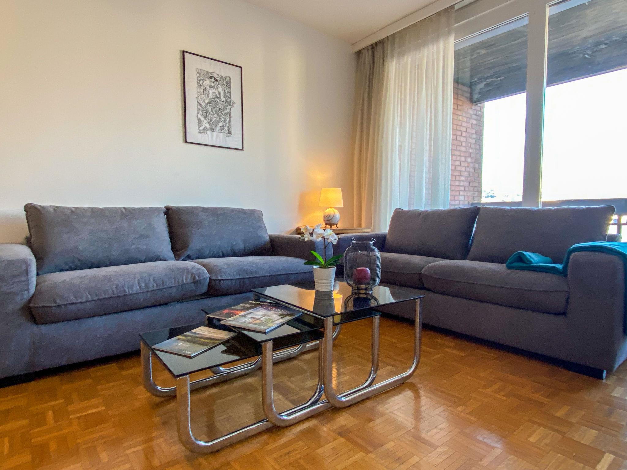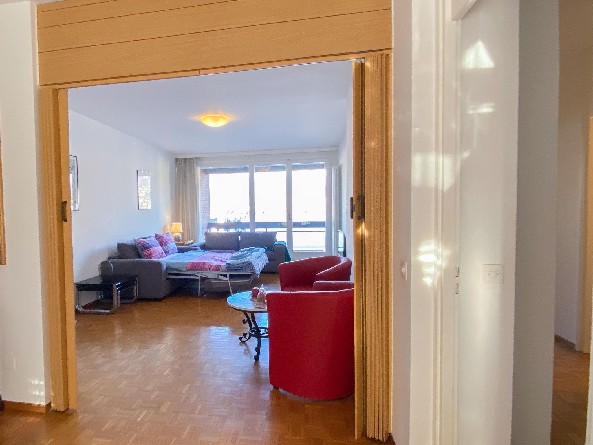 "App. Paradiso", 4-room apartment 100 m2 on 5th floor. Object suitable for 4 adults + 2 children. Spacious and bright, comfortable and cosy furnishings: open large living/sleeping room with 1 sofabed (140 cm, length 200 cm), cable TV, flat screen and radio. Exit to the balcony. Open dining room. Exit to the balcony. 1 large double bedroom with 1 double bed (2 x 90 cm, length 200 cm), cable TV. 1 double bedroom with 1 french bed (1 x 140 cm, length 200 cm). Large kitchen (oven, dishwasher, 4 ceramic glass hob hotplates, microwave, electric coffee machine, Capsules for coffee machine (Nespresso) extra, fondue Set (chinoise, cheese)) with small dining table. Exit to the balcony. Bath/bidet/WC, shower/WC. Heating. Large balcony, south facing position and, east facing position, small balcony, north facing position. Balcony furniture. Very beautiful panoramic view of the lake, the mountains and the countryside. Facilities: washing machine, iron, children's high chair for up to 2 year olds (extra), hair dryer. Internet (WiFi, free). Garage space n AF on the property. Please note: non-smokers only. Maximum 1 pet/ dog allowed. NL-00007300