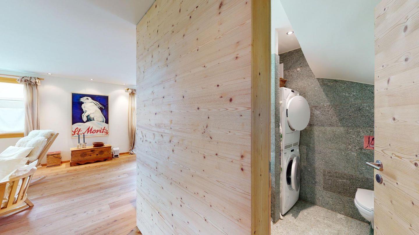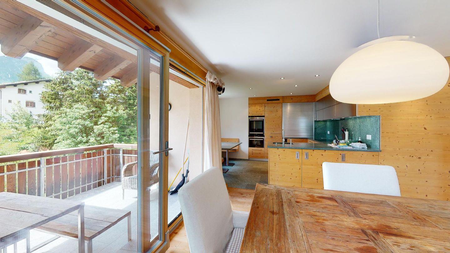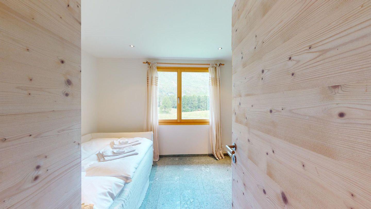 Die äusserst heimelige 3.5 Zimmer-Chalet-Chic Wohnung im 2. Obergeschoss eines 6-Familienhaus in Maloja im Engadin besticht durch ihre gut besonnte und ruhige Lage mit Aussicht auf die atemberaubende Engadiner Bergwelt. Die Wohnung ist modern eingerichtet mit allen Annehmlichkeiten, vielen wunderschönen Details und ist sehr grosszügig ausgestattet. Schlafzimmer 1 - 1 Doppelbett 160x200 cm, sowie zwei Einzelbetten auf der Empore (nur für Kinder); Schlafzimmer 2 - 1 Bett 120x200 cm. Badezimmer / Dusche vom Schlafzimmer 1 zugänglich. Separate Toilette mit Waschmaschine / Tumbler. Zugang für Gäste zum Skiraum mit beheiztem Skischuhregal. 2 Tiefgaragenplätze sind vorhanden.