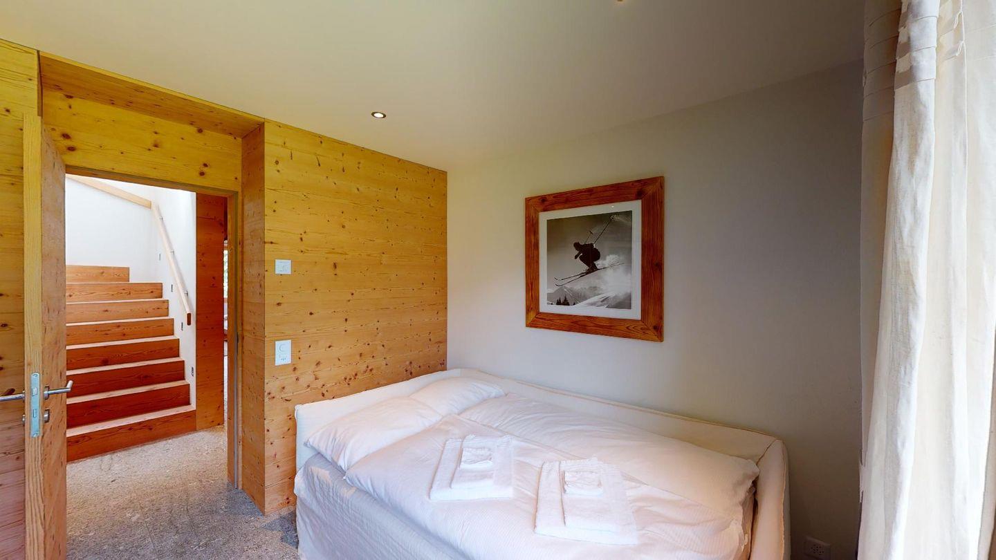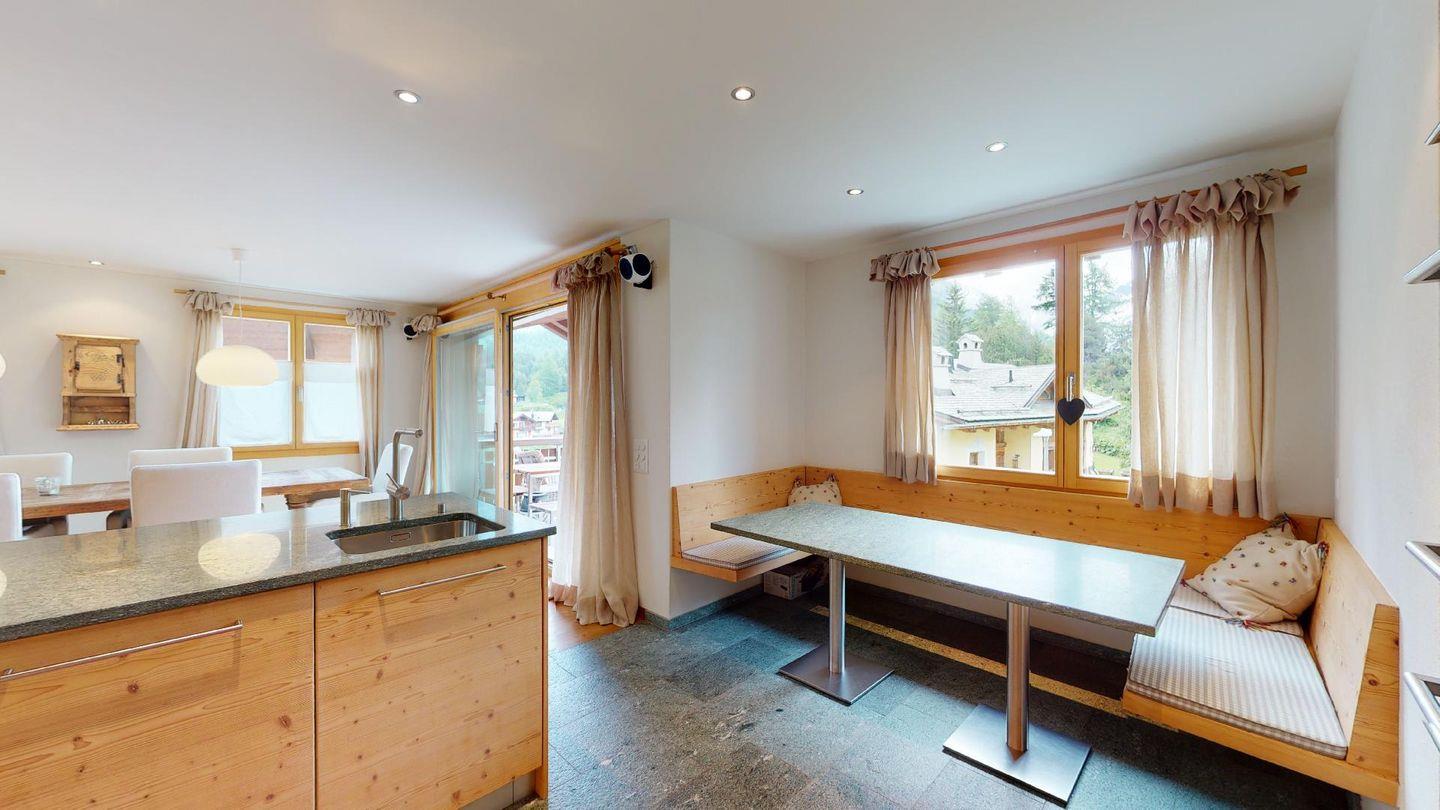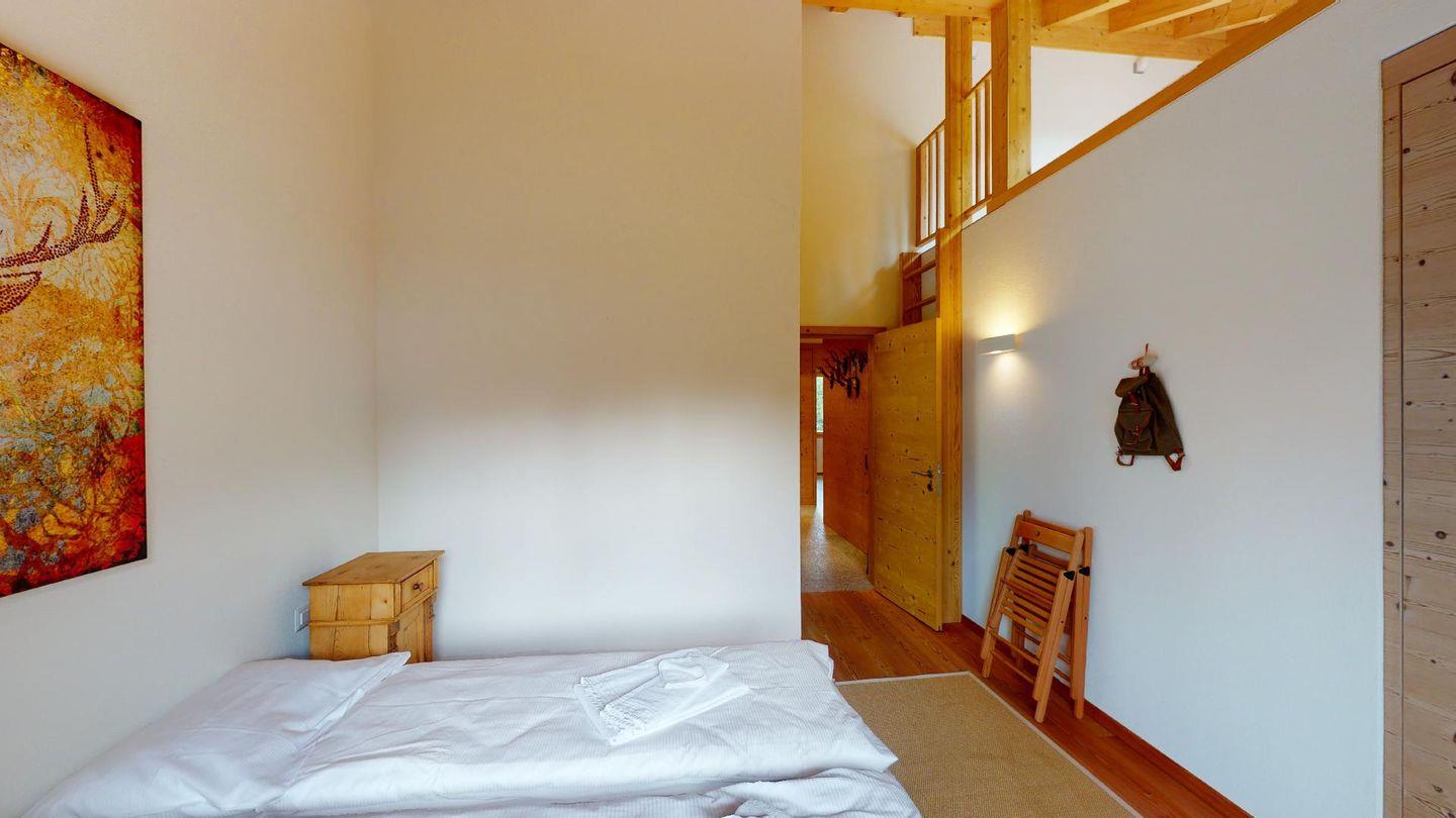 Schöne, 3½ Zimmerwohnung im 2. Stock. Eingang mit Garderobe. Doppelschlafzimmer (160 cm x 200 cm) mit eigenem Badezimmer mit Dusche, WC, Waschbecken. Über die Sprossenleiter im Schlafzimmer erreichen Sie die Empore, wo sich zwei weitere Schlafplätze (nur für Kinder) befinden. TV-Zimmer mit einem Einzelbett. Offener Wohnraum mit Cheminée, Esstisch, Frühstücksecke und Küche. Küche mit Geschirrspüler, Kühlschrank mit Gefrierfach, Herd, Ofen, Toaster, Kaffeemaschine. Gäste-WC mit Waschbecken, Waschmaschine und Tumbler. Zwei Parkplätze. Gemeinsamer Skiraum im Keller. Fahrradständer in der Garage. Haustiere nicht erlaubt.