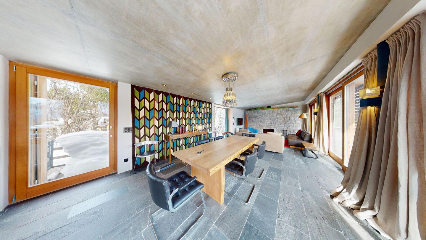 Moderne, helle 3½ Zimmerwohnung auf zwei Etagen (2. & 3. Stockwerk) mit direktem Zugang zum Garten in sonniger, ruhiger Lage im charmanten Künstlerdorf Maloja.