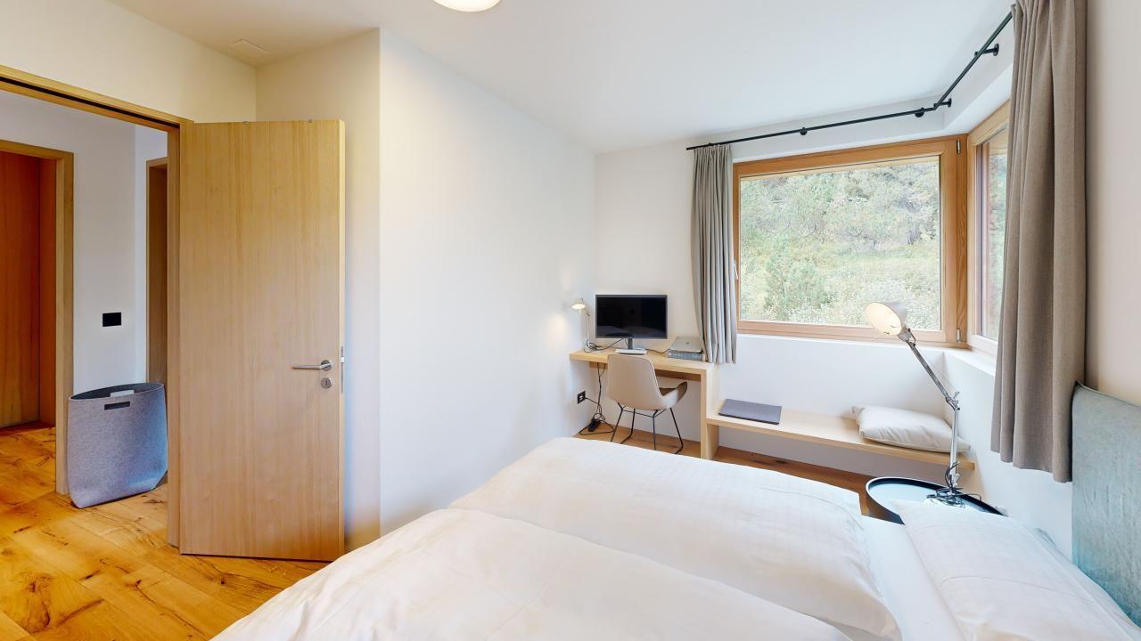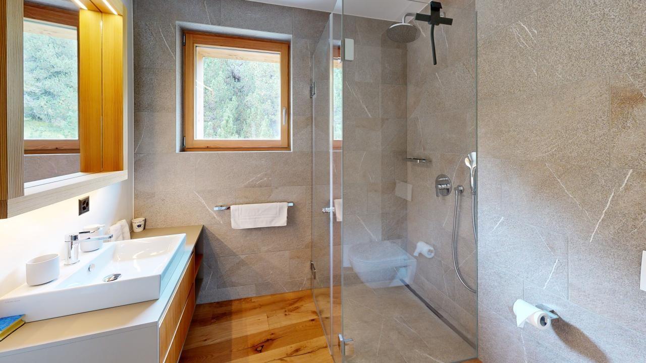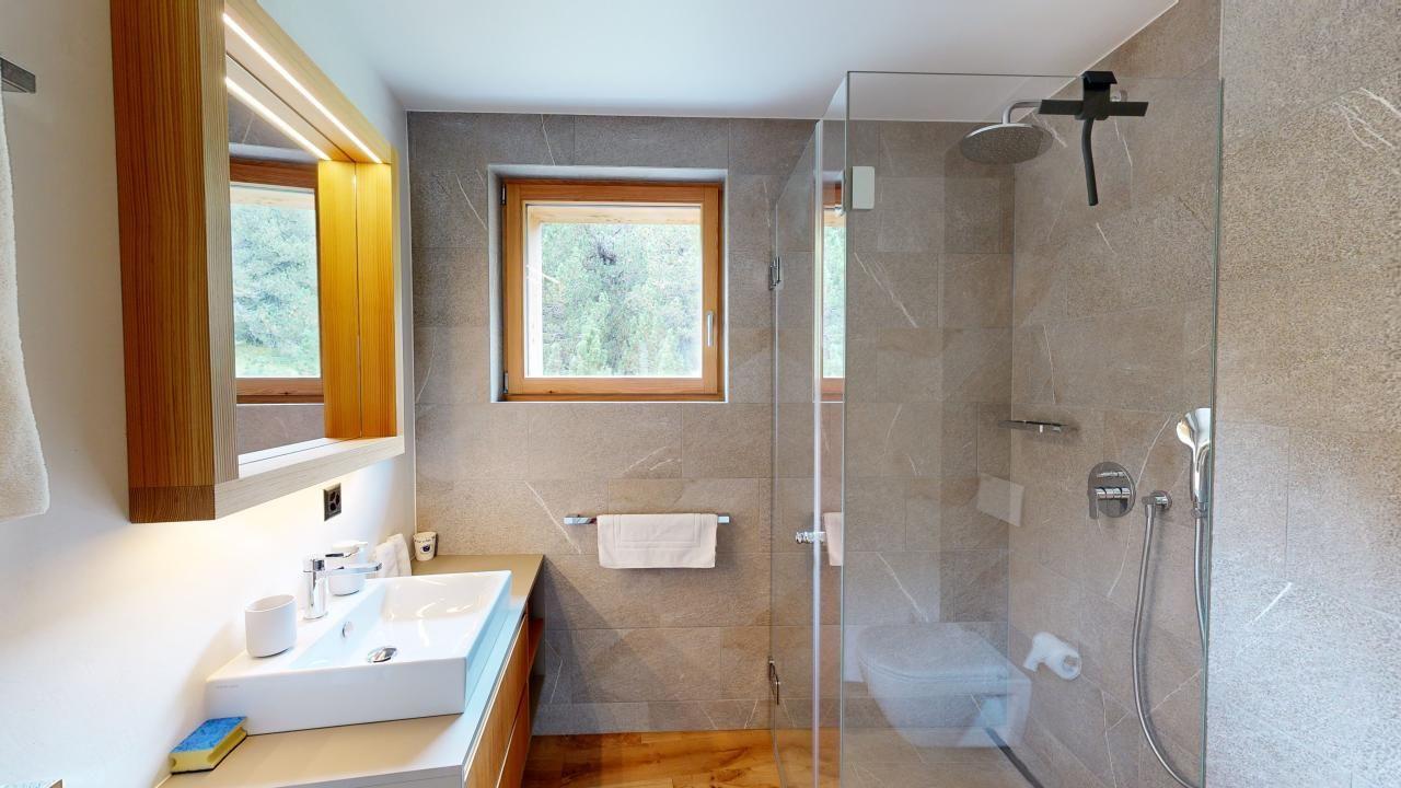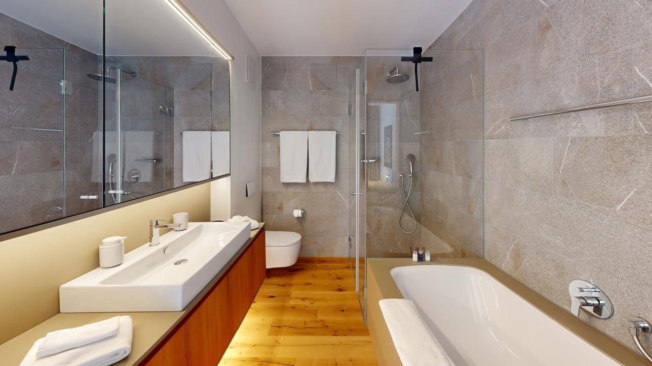 Diese exklusive Ferienwohnung im Attikageschoss bietet alles, was Sie für einen unvergesslichen Aufenthalt in den Bergen benötigen. Mit drei Schlafzimmern, darunter zwei mit Doppelbetten und eines mit einem Etagenbett, bietet sie ausreichend Platz für bis zu sechs Personen. Das grosszügige Master-Schlafzimmer verfügt über ein En-Suite-Badezimmer mit Badewanne, während die beiden weiteren Zimmer sich ein modernes Badezimmer mit Dusche teilen.
