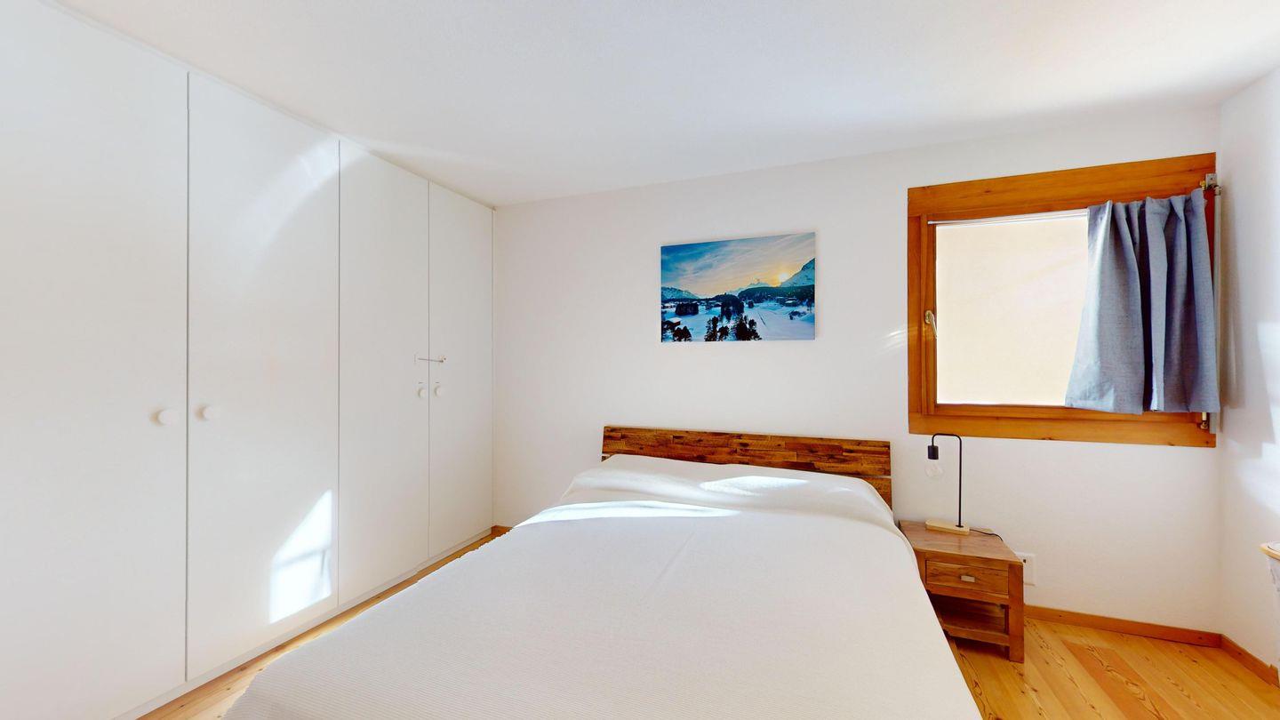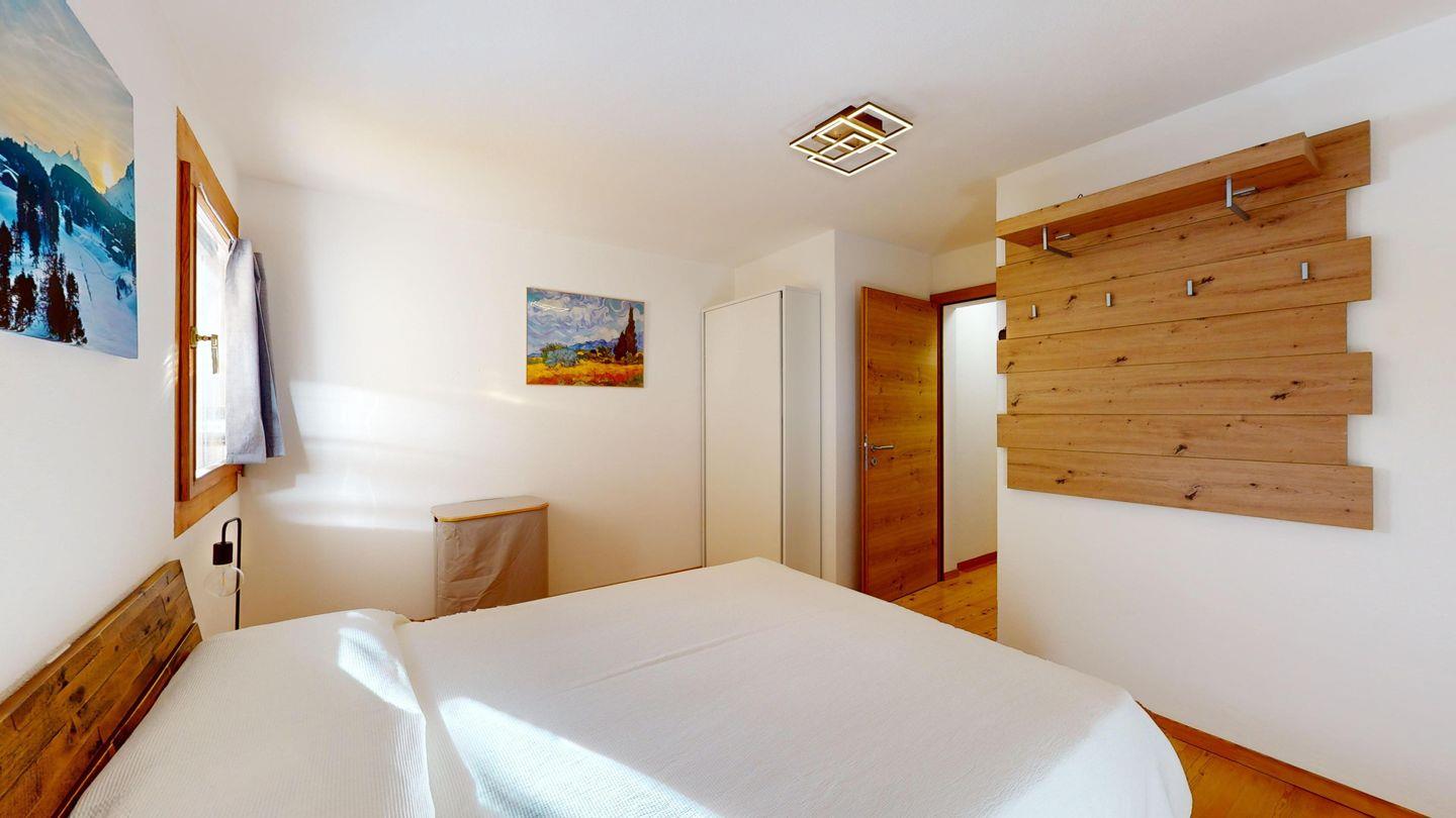 Moderne 2-Zimmer-Wohnung im 3. Stock mit ca. 60 m², im Herbst 2024 renoviert und neu eingerichtet. Eingang mit offener Garderobe. Schlafzimmer mit Doppelbett. Gemütliches Wohnzimmer mit Kaminecke und Ausgang auf den Balkon mit Bergblick. TV und Wi-Fi. Vollständig ausgestattete Küche mit Mikrowelle, Wasserkocher und Chicco d'oro-Kaffeemaschine. Neu renoviertes Bad mit begehbarer Dusche, Waschbecken und WC. Ein Parkplatz in der Garage. Gemeinsamer Skiabstellraum. Nichtraucherwohnung. Haustiere nicht erlaubt.