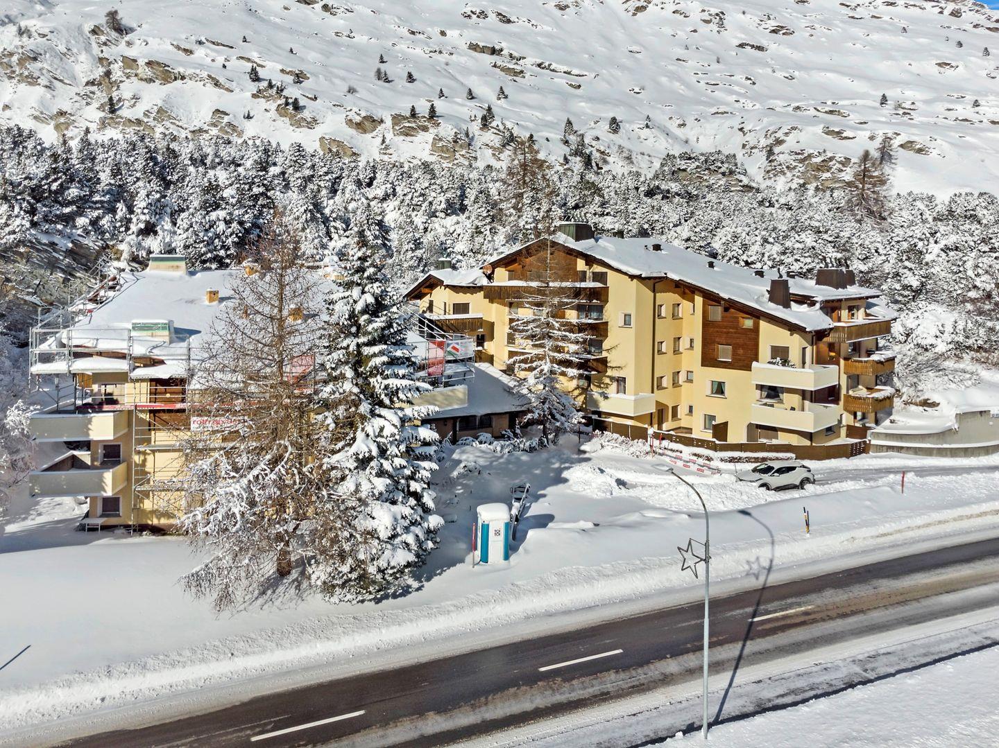 Die Pra d'Sura ist ein Mehrfamilienhaus am Ortsanfang von Maloja. Im Ort gibt es ein kleines Lebensmittelgeschäft.