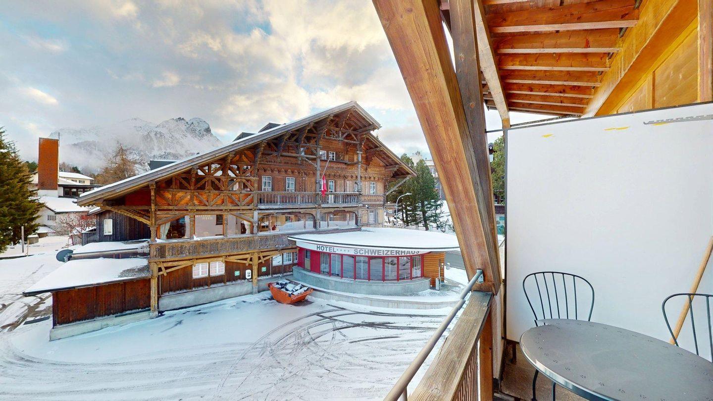 2½ -Zimmerwohnung auf der zweiten Etage, mit Lift. Entree mit Garderobe. Wohn-/ Esszimmer mit Ausgang zum Balkon. Radio/TV und Internet. Offene Küche mit Herd, Backofen, Kühlschrank mit kleinem Gefrierfach, Kaffeemaschine. Doppelschlafzimmer auf der Empore. Badezimmer mit Dusche/WC/Lavabo. Ein Parkplatz in der Garage. Ski- und Veloraum. Gemeinschaftliche Waschküche. Nichtraucherwohnung. Haustiere sind erlaubt.