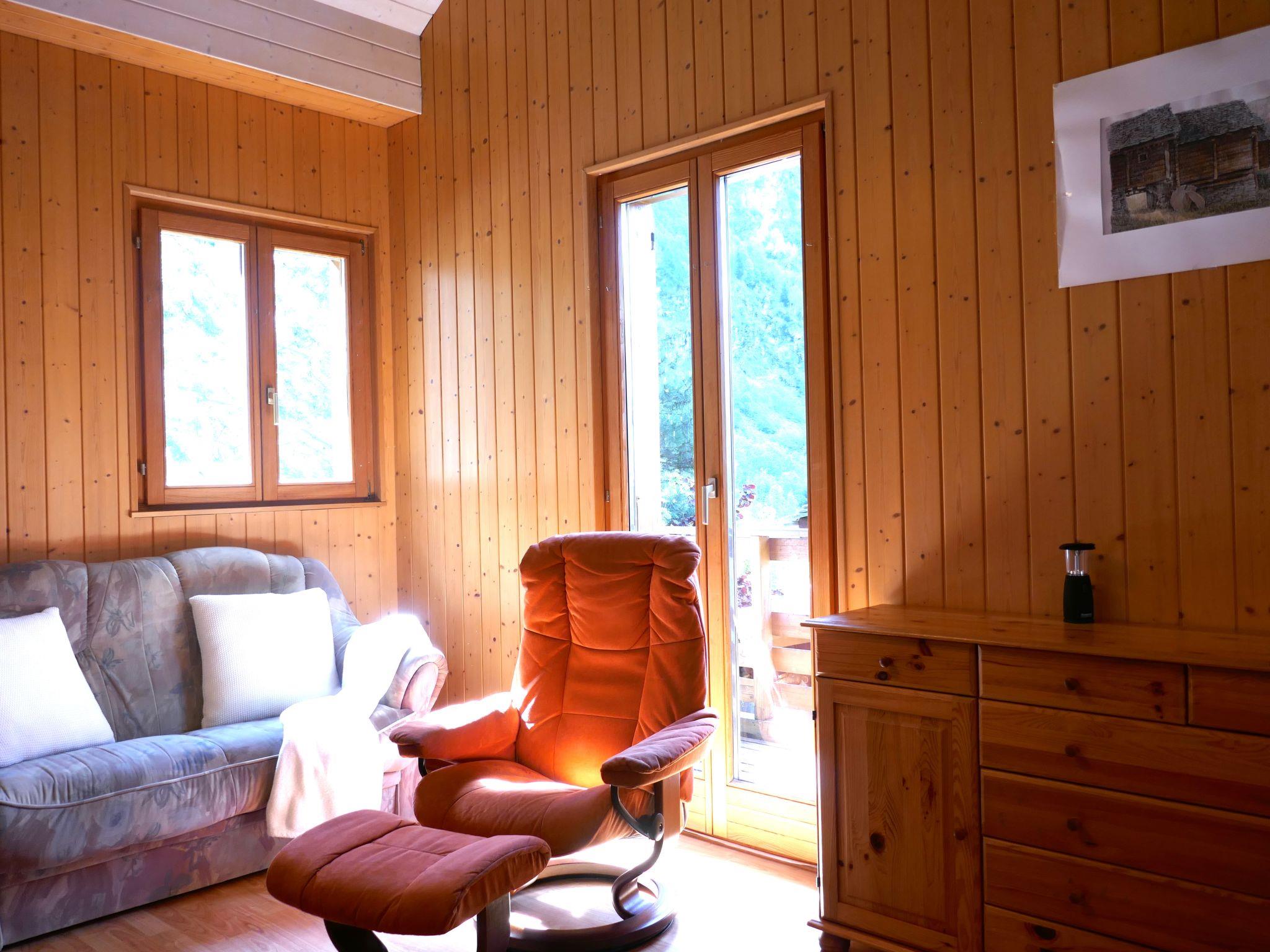 "Rustico Fortuna", 3-room chalet 80 m2 on 3 levels. Partly with sloping ceilings, simple and rustic furnishings: open living/dining room with open-hearth fireplace, dining table and radio. Exit to the balcony. 1 room with 1 x 2 bunk beds (90 cm, length 200 cm). Open kitchen (oven, Gas stove, 4 gas rings, fondue Set (cheese)). Exit to the balcony. Shower/WC. Gas heating, wood heating. Solar power. Upper floor: open gallery with sloping ceilings with 1 double bed (1 x 160 cm, length 200 cm). Patio. Terrace furniture, barbecue, deck chairs (2), sitting area. Beautiful view of the mountains. Facilities: children's high chair, baby cot for up to 2 year olds (extra). Please note: suitable for families. Non-smoking house. NL-00003913