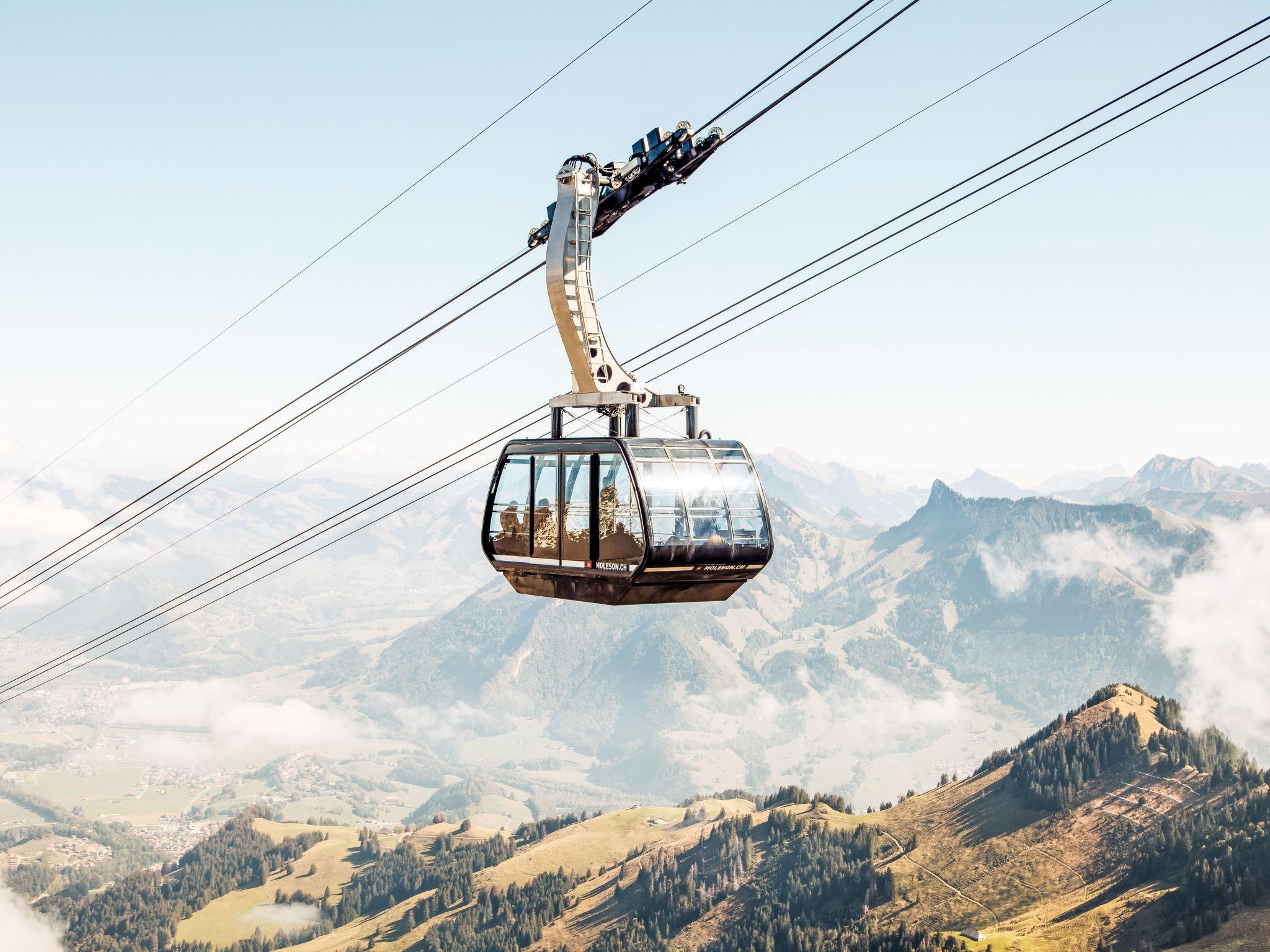 Rustic chalet "Castor", 2 storeys, detached, surrounded by meadows. In the resort, in a quiet position, 18 km from the lake. Private: large garden (not fenced), parking (for 2 cars) at the house. Shop 10 km, grocery 11 km, supermarket 10 km, shopping centre 10 km, restaurant 550 m, bar 10 km, bus stop "Moléson-sur-Gruyères" 550 m, railway station "Bulle" 1.3 km, thermal baths "Les Bains de Gruyère" 16 km. Walking paths from the house 1 m, ski lift 300 m, chair lift, slopes, sled run. Nearby attractions: Gruyère 6 km, Bulle 10 km, Maison de Cailler-Le Chocolat Suisse 10 km, Fribourg 20 km, Gstaad 43 km, Montreux 46 km. Well-known ski regions can easily be reached: Moleson. Well-known lakes can easily be reached: Lac de Gruyère 18 km, Lac Léman 46 km. Hiking paths: Moleson. Please note: car recommended.