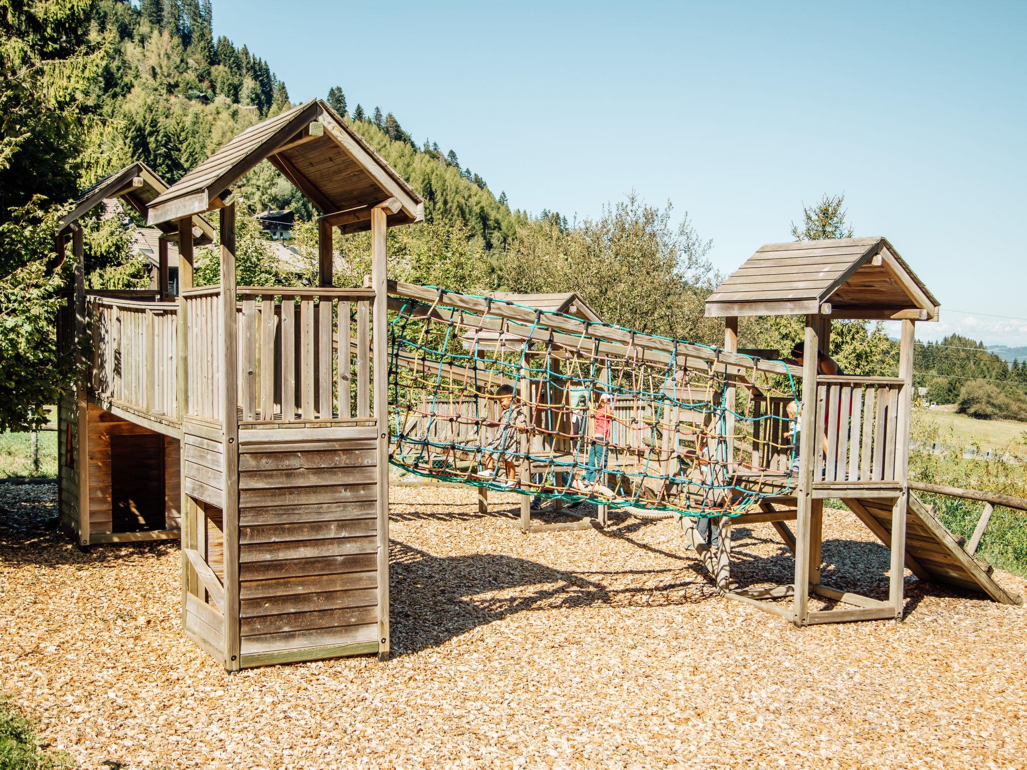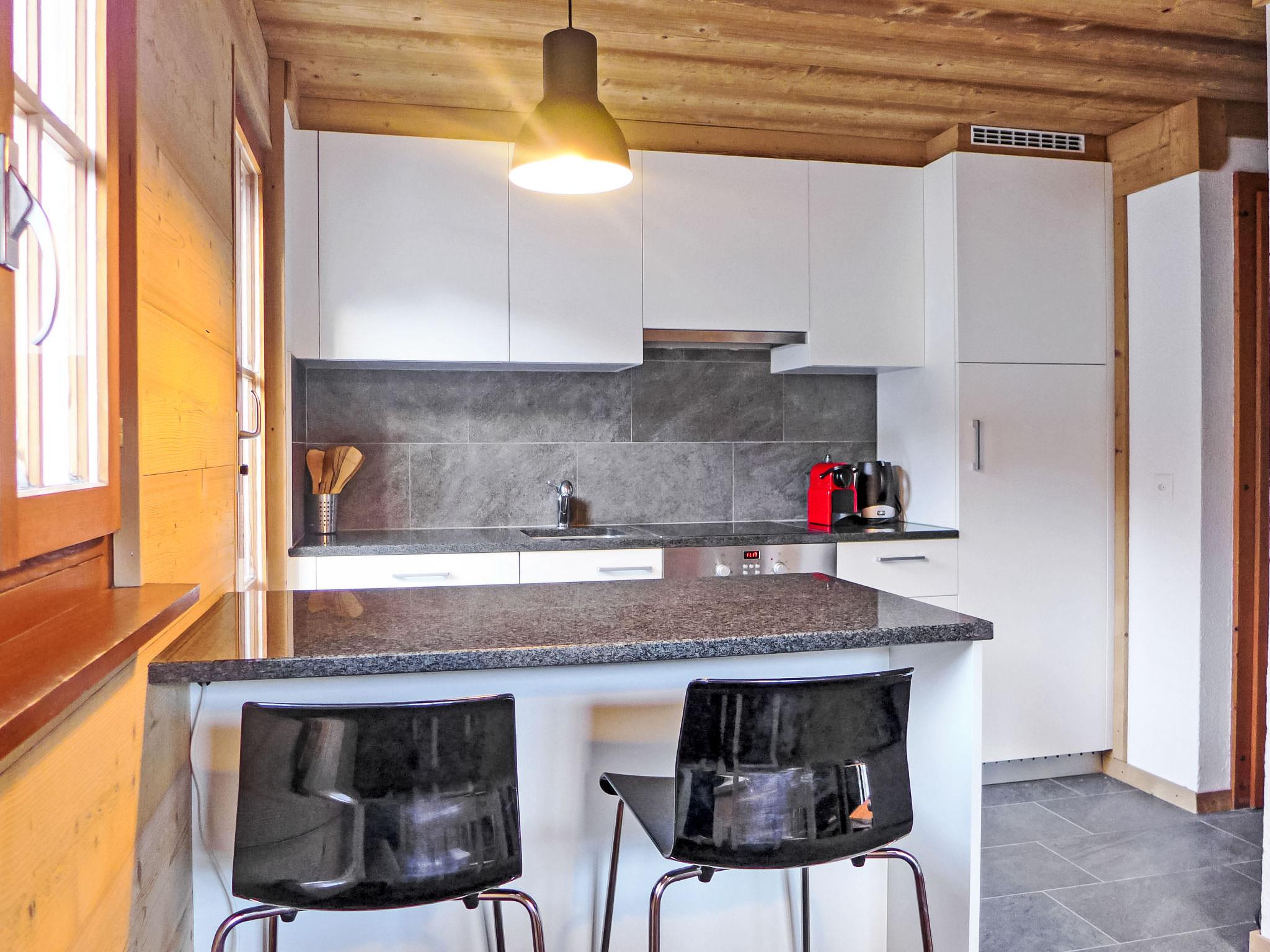 "Chalet Castor", 4-room chalet 80 m2 on 2 levels. Tasteful and wooden furniture furnishings: living/dining room with Scandinavian wood stove, dining table and TV. Exit to the patio. Open kitchen (oven, dishwasher, 4 ceramic glass hob hotplates, fondue Set (cheese)) with bar. Upper floor: 1 room with 1 double bed. Exit to the balcony. 2 rooms, each room with 1 x 2 bunk beds. Bath/WC. Balcony, large patio. Barbecue. Very beautiful view of the mountains and the countryside. Facilities: baby cot for up to 3 year olds (extra). Internet (WiFi, free). Please note: non-smokers only. Maximum 2 pets/ dogs allowed.
