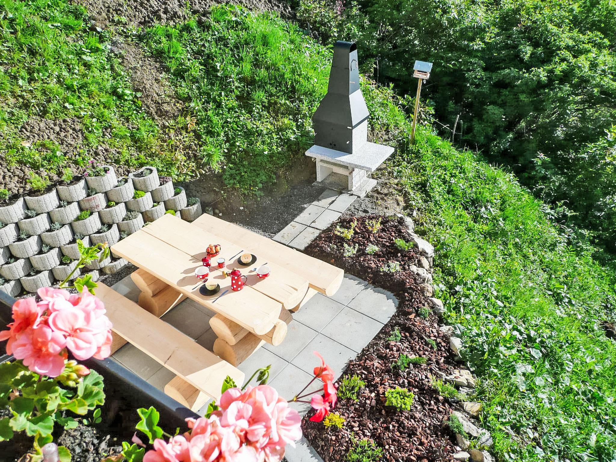 "Chalet La Poya", 4-room chalet 110 m2. Comfortable and tasteful furnishings: living/dining room with open-hearth fireplace, dining table, TV, flat screen, hi-fi system and DVD. Exit to the terrace. Open kitchen (oven, dishwasher, 4 ceramic glass hob hotplates, kettle, microwave, freezer, electric coffee machine, Capsules for coffee machine (Nespresso) extra, raclette grill, fondue Set (cheese)). Sep. WC. On the lower ground floor: 1 room with 1 double bed and satellite TV. Exit to the terrace. Open small alcove with curtain with 1 x 2 bunk beds. Exit to the terrace. 1 room with 1 french bed. Bath/shower/WC. Terrace furniture, electric barbecue. Marvellous panoramic view of the mountains and the countryside. Facilities: washing machine, dryer, hair dryer. Internet (WiFi, free). Please note: non-smokers only. Maximum 2 pets/ dogs allowed. Instead of an enclosed bedroom, some sleeping areas are located in an open-plan area (gallery, alcove, etc.).