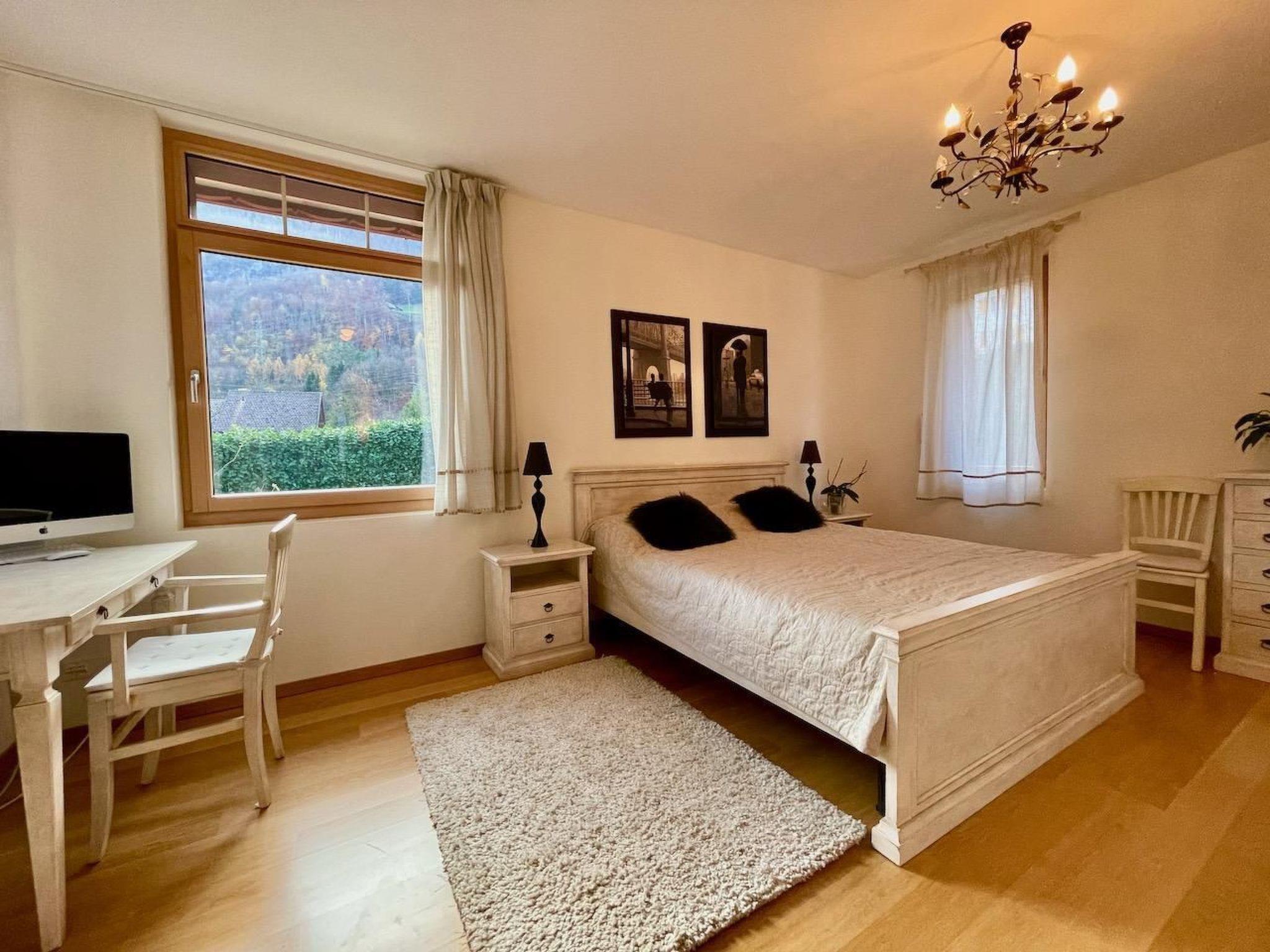 Nestled in the heart of the property, the penthouse apartment offers a spacious kitchen designed for culinary endeavors catering to large gatherings. Its expansive windows unveil breathtaking views of the majestic Churfirsten range. Adjacent to the kitchen, a