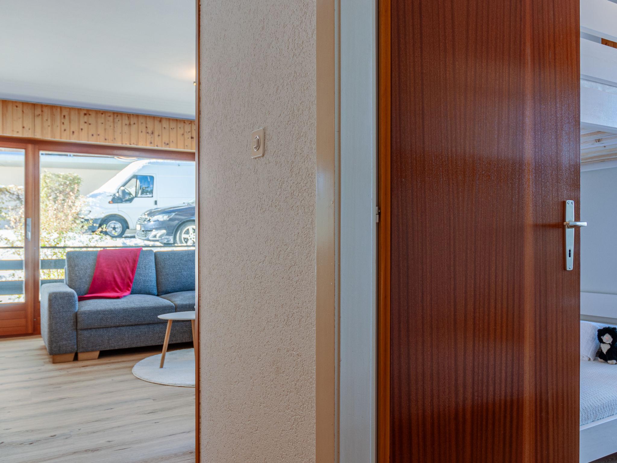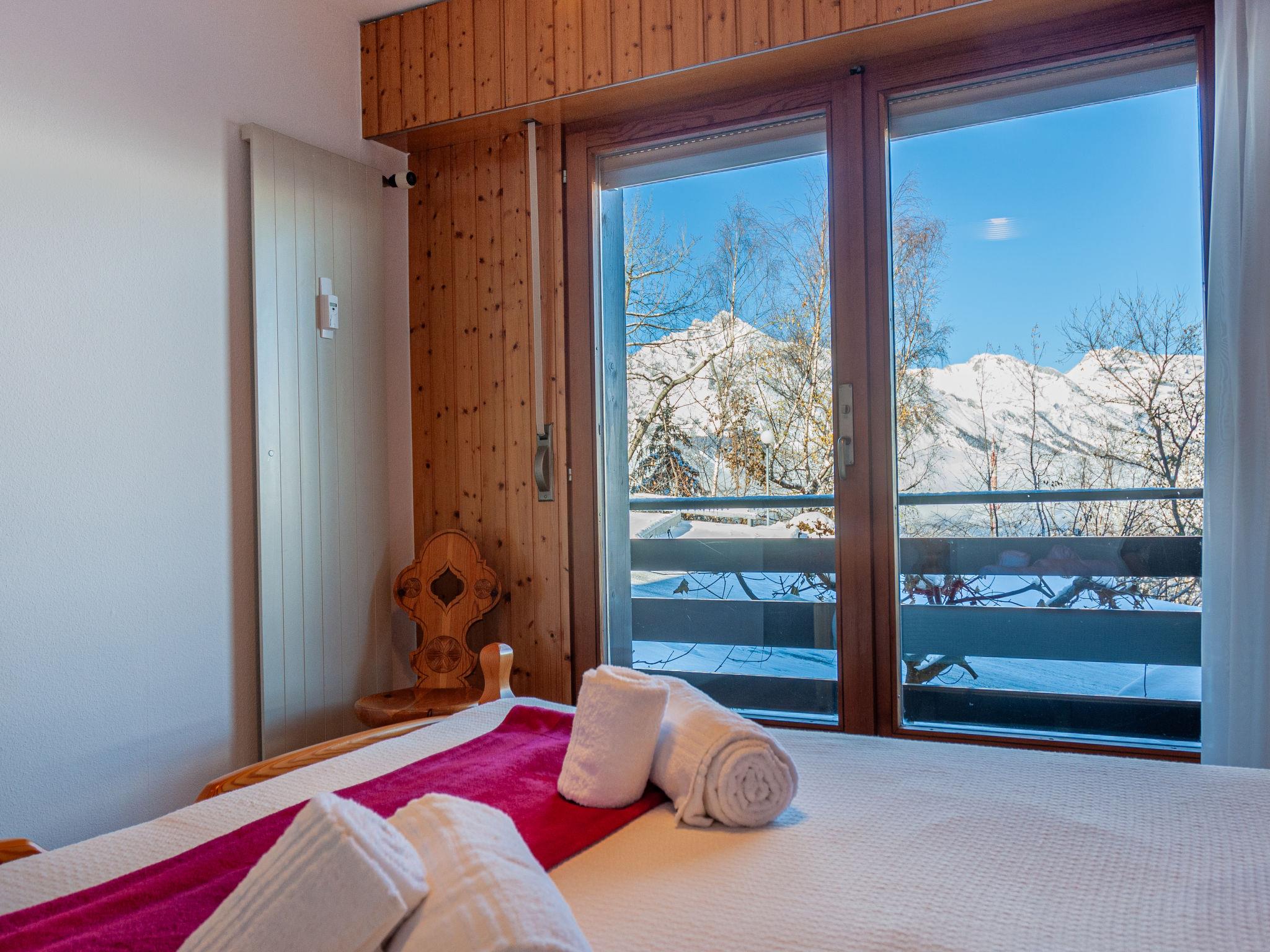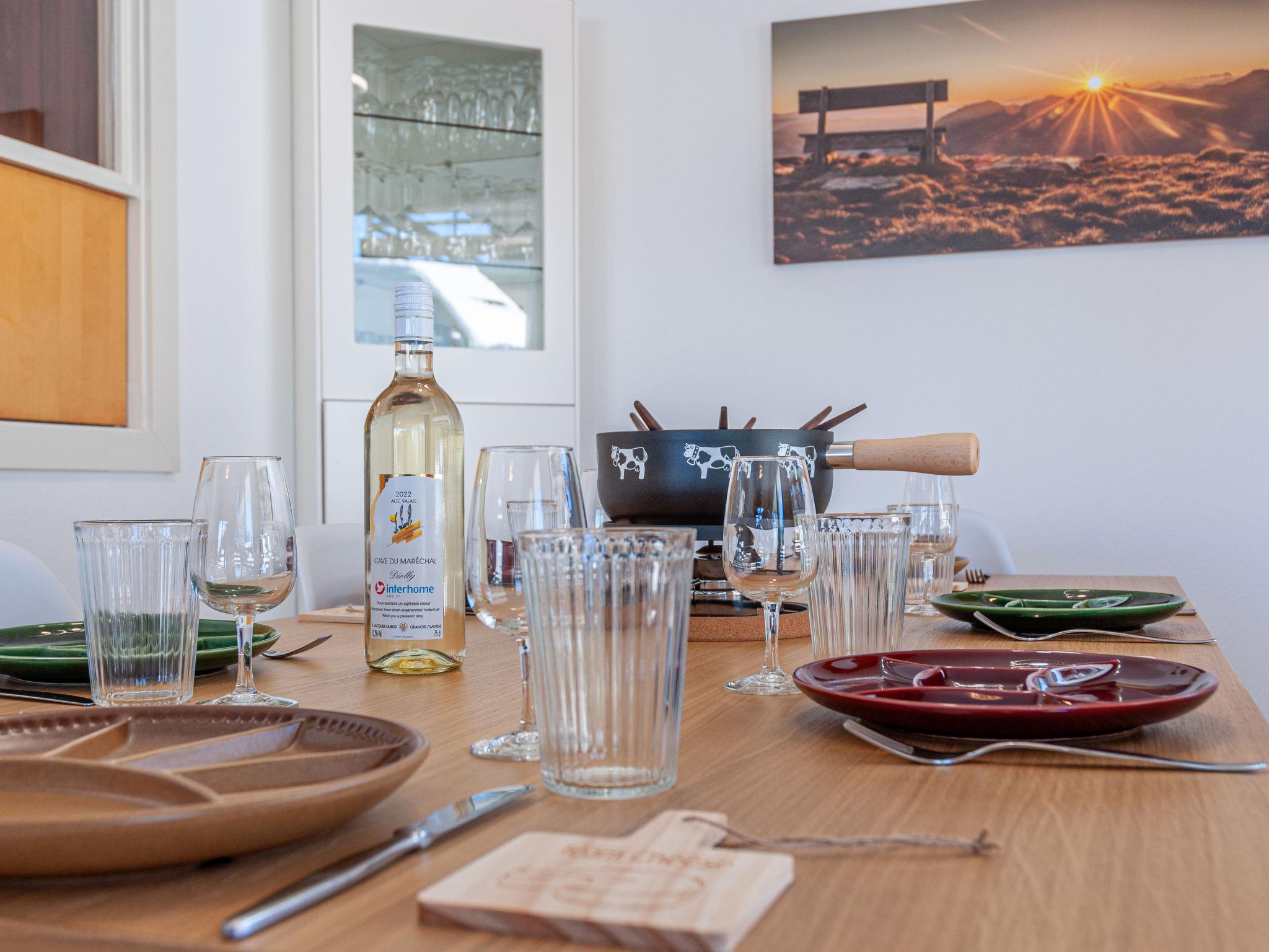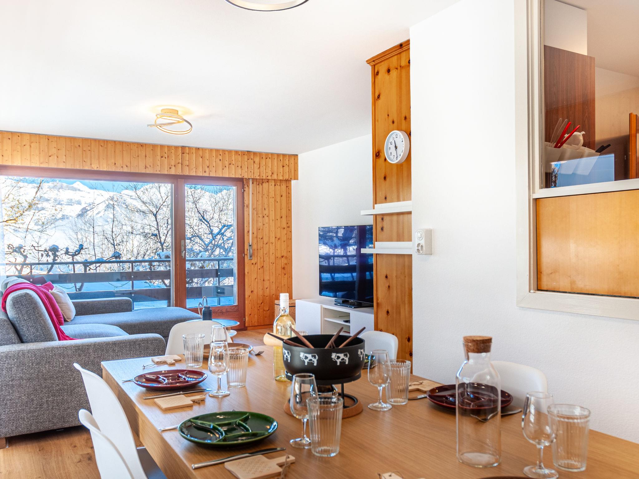 "Aiglon J2", 3-room apartment 75 m2 on 2nd floor. Object suitable for 2 adults + 4 children. Partly renovated in 2023, beautiful and cosy furnishings: entrance hall. Living/dining room with cable TV. Exit to the balcony. 1 room with 1 french bed (160 cm, length 190 cm). 1 small children's room 9 m2 with 2 x 2 bunk beds (80 cm, length 190 cm). Kitchen (oven, dishwasher, 4 ceramic glass hob hotplates, toaster, kettle, microwave, electric coffee machine, Capsules for coffee machine (Delizio) extra, raclette grill, fondue Set (chinoise, cheese)). Bath/WC, sep. WC. Large balcony, north-east facing position and south facing position. Balcony furniture, barbecue. View of the mountains. Facilities: hair dryer. Internet (WiFi, free). Please note: non-smokers only.