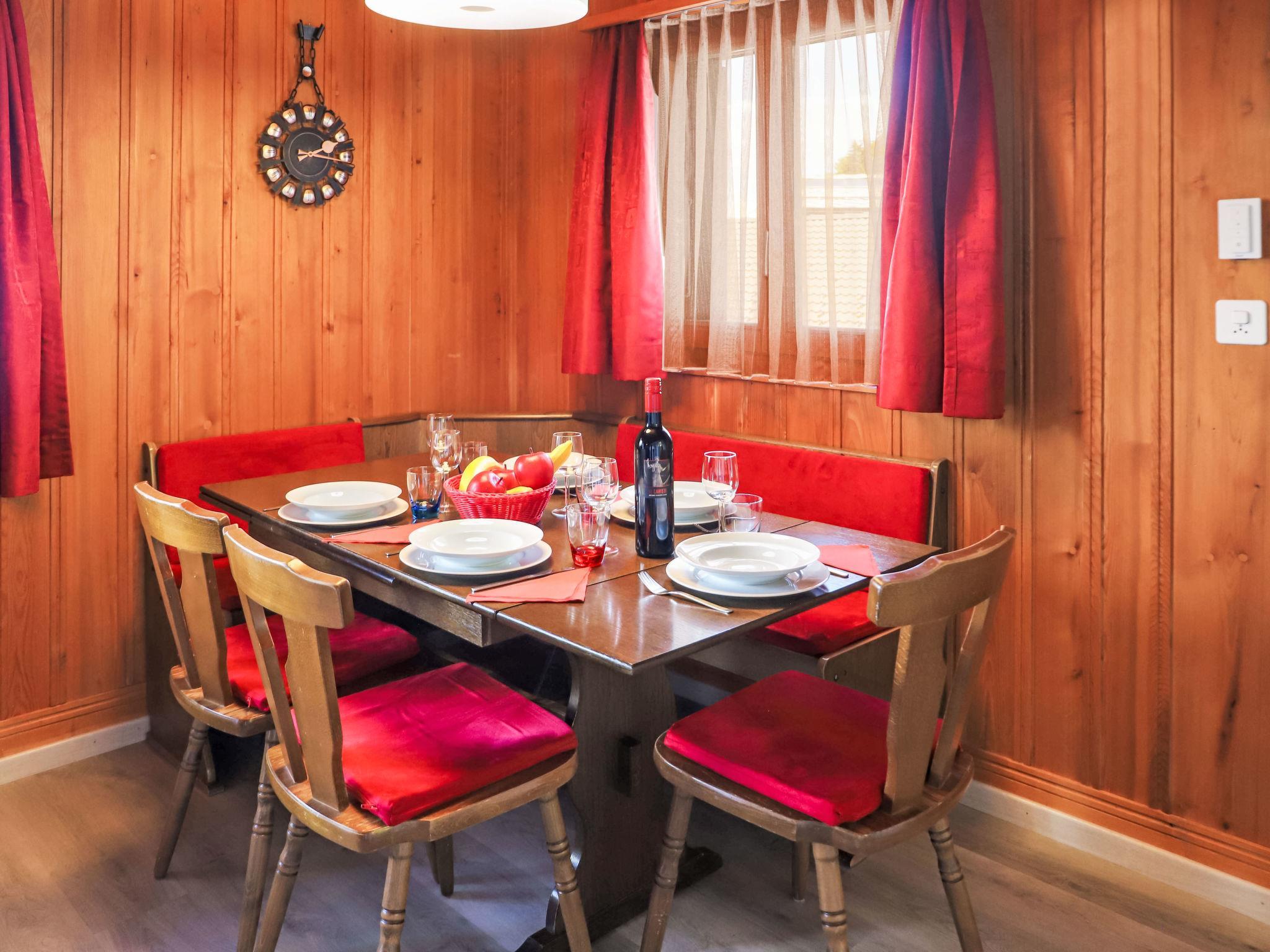 "Dorine", 4-room chalet 80 m2, north facing position. Object suitable for 2 adults + 3 children. Partly renovated in 2021, practical and beautiful furnishings: entrance hall. Living/dining room with cable TV. Exit to the terrace. Open kitchen (oven, dishwasher, 4 induction hot plates, toaster, kettle, electric coffee machine, Capsules for coffee machine (Nespresso) extra, raclette grill, fondue Set (cheese)). Sep. WC. Electric heating. Upper floor: 2 rooms, each room with 2 beds (90 cm, length 200 cm). Exit to the balcony, north facing position. 1 small children's room with 1 bed (120 cm, length 190 cm). Shower/WC. Balcony, north facing position, terrace, north facing position. Terrace furniture, barbecue. Beautiful view of the mountains. Facilities: washing machine, dryer, baby cot. Internet (WiFi, free). Parking (2 cars) at the house. Please note: non-smoking house. Maximum 1 pet/ dog allowed.