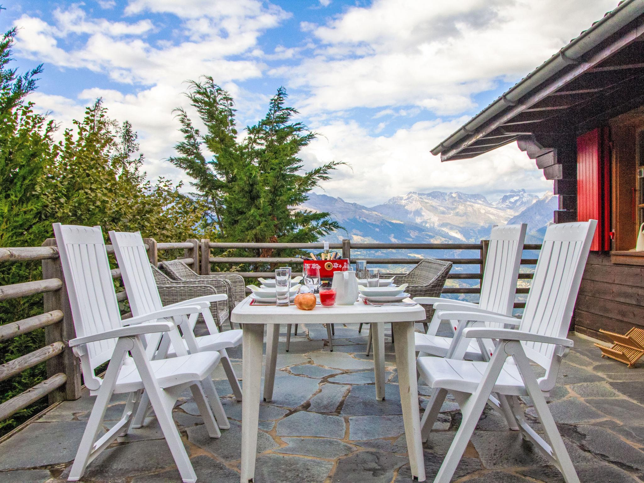 Chalet "Gemini", 2 storeys. In the district of les Clèves, on the outskirts, 800 m from the centre, in a quiet position. In Winter: please take snow chains, 4x4 car recommended in winter. Supermarket 800 m, bus stop "Haute-Nendaz, bif. Le Déserteur" 800 m, railway station "Sion" 16.9 km, outdoor swimming pool 1.1 km. Golf course (18 hole) 16 km, tennis 1.1 km, skisport facilities 500 m, ski bus stop 600 m, children's playground 1 km. Well-known ski regions can easily be reached: Tracouet les 4 Vallées 800 m. Hiking paths: Bisse Vieux 100 m. Please note: ski bus (free of charge).