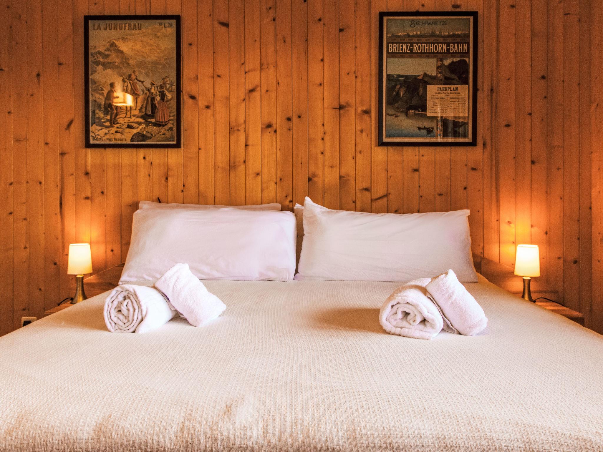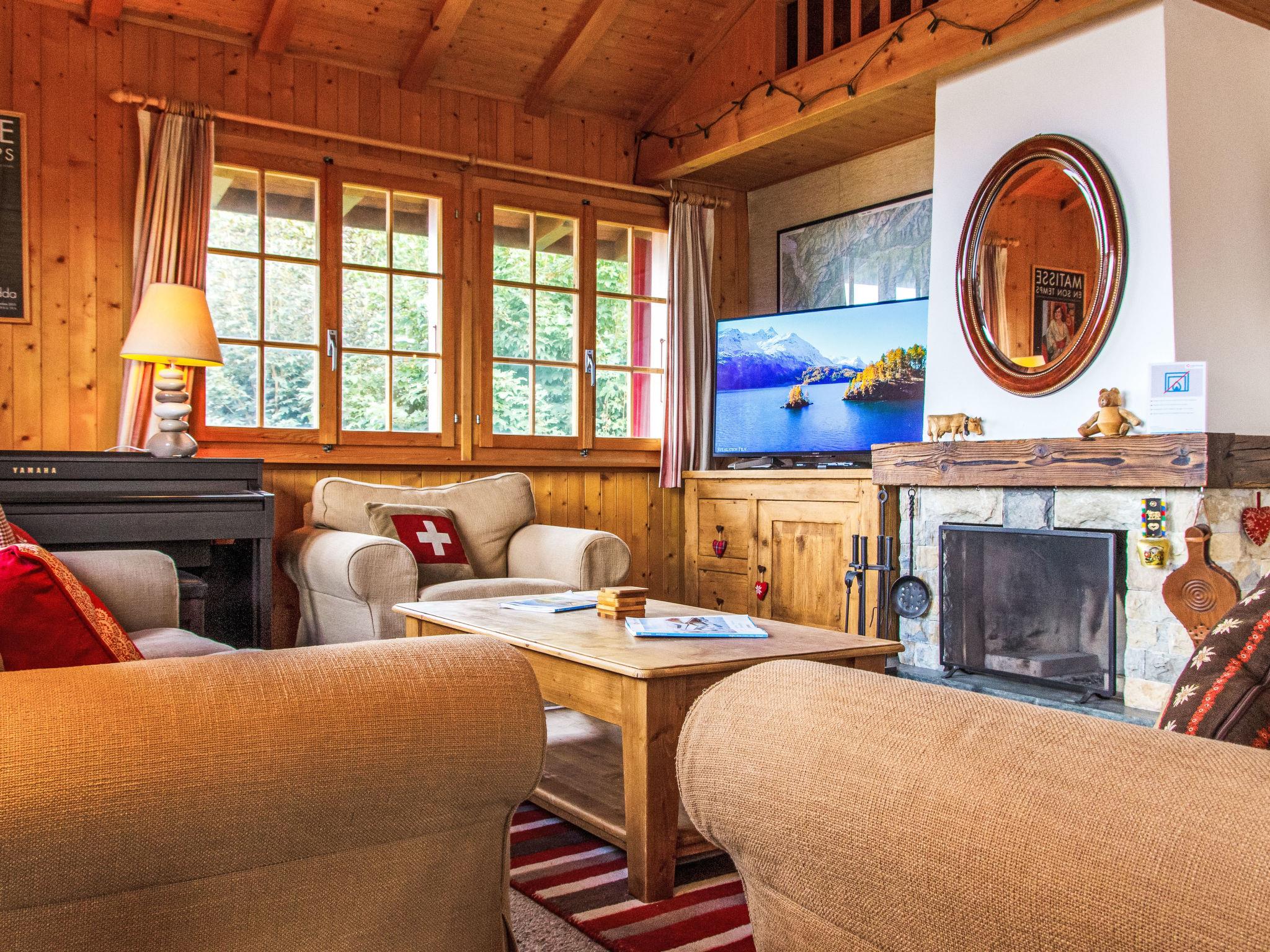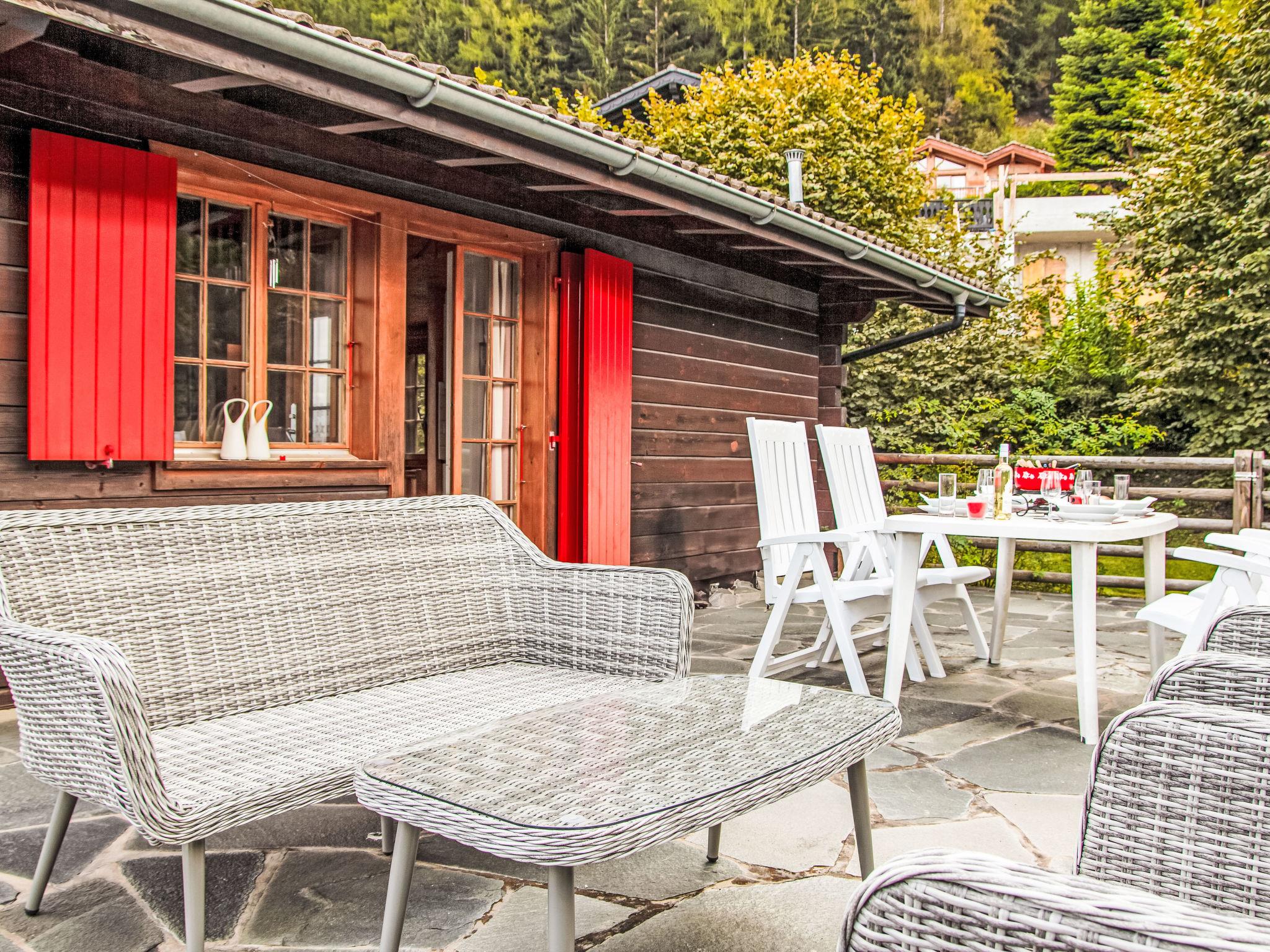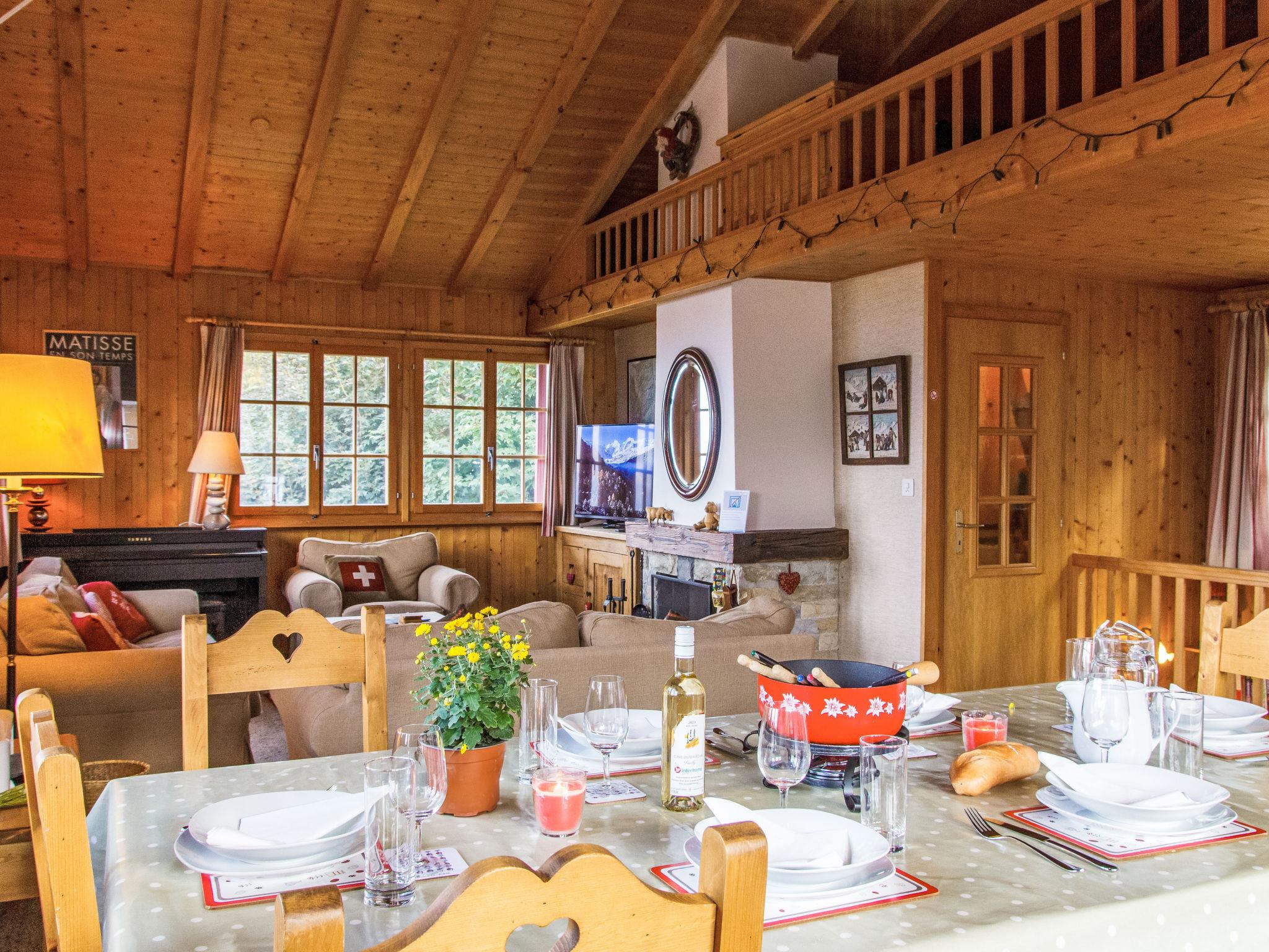 "Gemini", 4-room chalet 100 m2 on 2 levels. Beautiful furnishings: living/dining room with open-hearth fireplace (only for decoration), cable TV and DVD. Open kitchen (oven, dishwasher, 4 ceramic glass hob hotplates, toaster, kettle, microwave, freezer, electric coffee machine, Capsules for coffee machine (Nespresso) extra, fondue Set (chinoise, cheese)). Shower/WC. Electric heating. On the lower ground floor: 1 room with 1 french bed (180 cm, length 200 cm), hand-basin. 1 room with 2 x 2 bunk beds (90 cm, length 200 cm), hand-basin. 1 small room with 1 french bed (140 cm, length 190 cm). Bath/WC. Balcony, north facing position terrace, west facing position, small garden, south facing position. Terrace furniture, barbecue. Beautiful view of the mountains and the valley. Facilities: washing machine. Internet (WiFi). Parking (2 cars). Please note: non-smoking house.