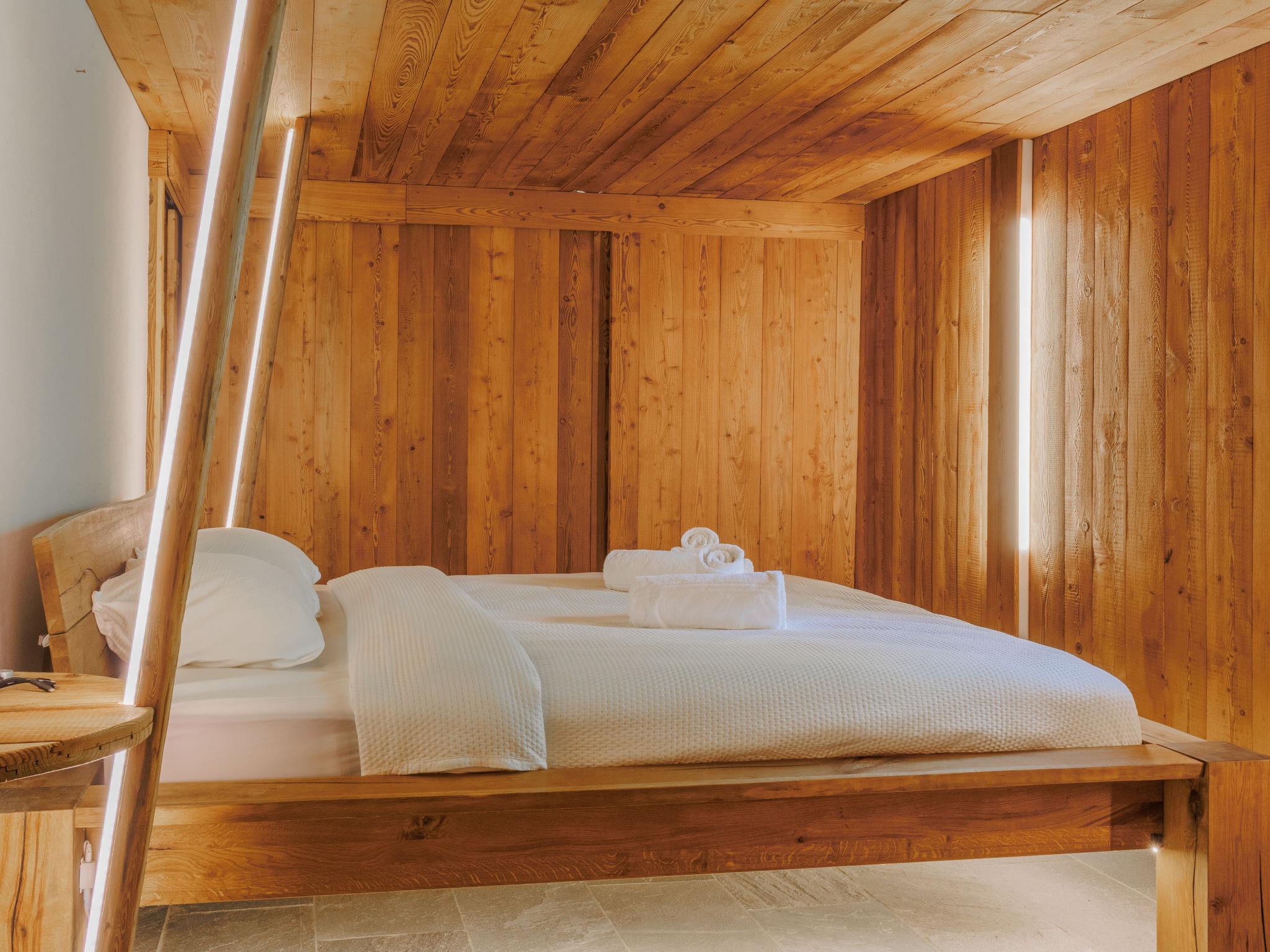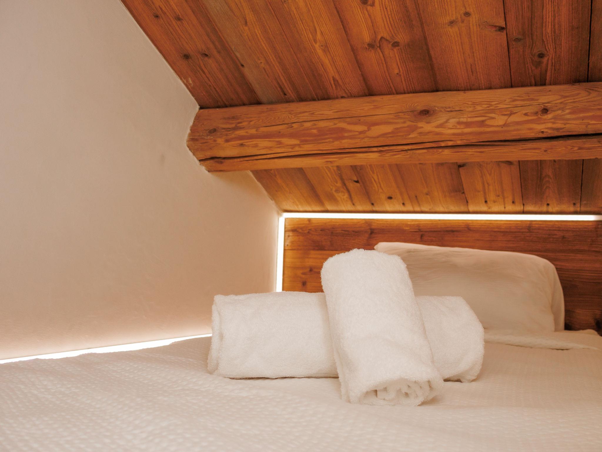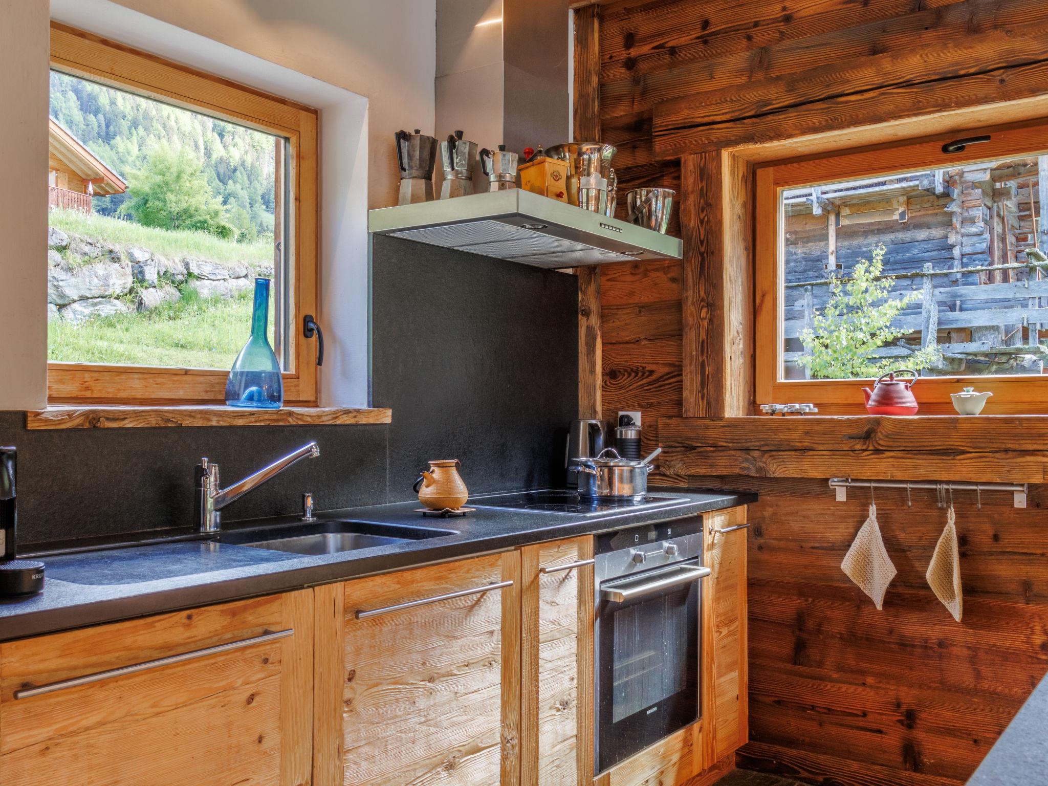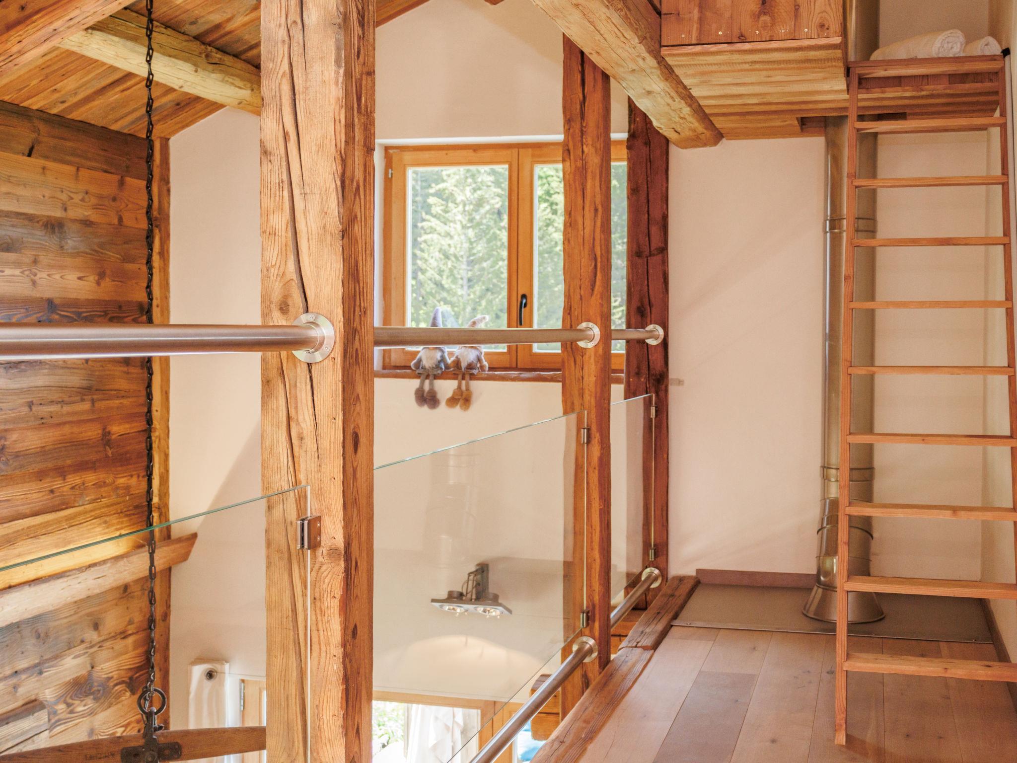 "Chalet Gaea", 5-room chalet 140 m2 on 3 levels, north-east facing position. Object suitable for 6 adults + 3 children. Partly with sloping ceilings, very comfortable and beautiful furnishings: entrance hall. Living/dining room with Scandinavian wood stove and Home cinema. Exit to the terrace. Open kitchen (oven, dishwasher, 4 induction hot plates, toaster, kettle, microwave, freezer, electric coffee machine, Capsules for coffee machine (Nespresso) extra, raclette grill, fondue Set (cheese)). Bath/shower/WC. On the lower ground floor: 1 room with 1 french bed (180 cm, length 200 cm), bath/shower/WC. Upper floor: 1 room with 1 bed (90 cm, length 200 cm), 1 french bed (160 cm, length 200 cm). (ladder) open small gallery with sloping ceilings, ceiling height 120 - 145 cm with 1 bed (90 cm, length 200 cm). 1 room, without wardrobe with 1 double sofabed (140 cm, length 200 cm). Top floor: (ladder) open gallery with sloping ceilings, ceiling height 48 - 135 cm with 1 bed (90 cm, length 200 cm). Large terrace. Terrace furniture, barbecue, deck chairs. Very beautiful view of the mountains. Facilities: washing machine, dryer, hair dryer. Internet (WiFi, free). Parking (3 cars). Please note: not suitable for children under 8 years. Non-smokers only. 2 braziers, one of which is covered. Instead of an enclosed bedroom, some sleeping areas are located in an open-plan area (gallery, alcove, etc.).