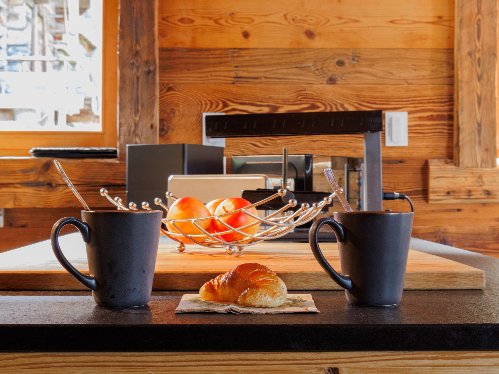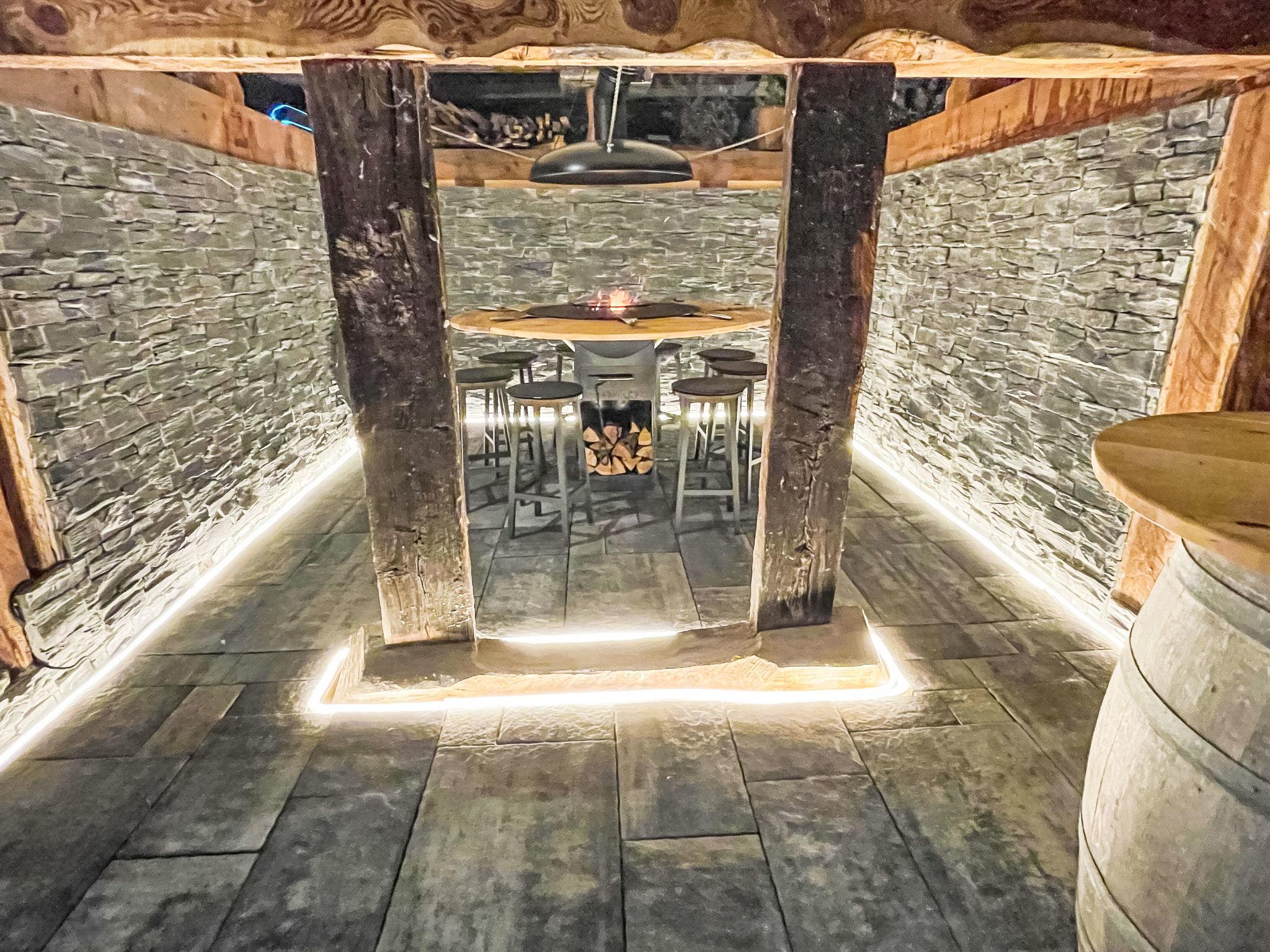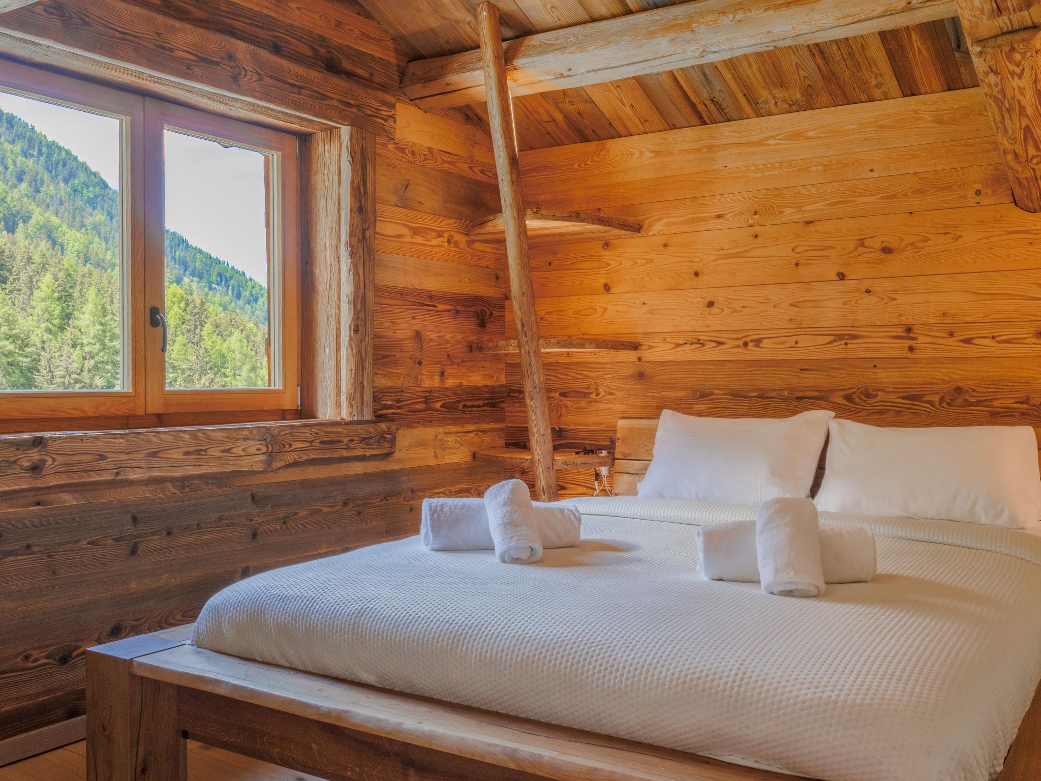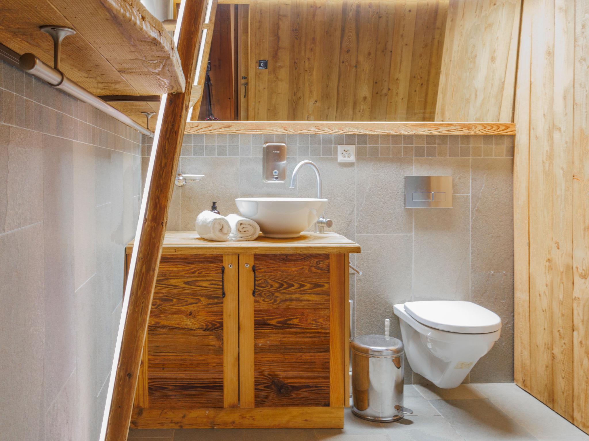 "Chalet Gaea", 5-room chalet 140 m2 on 3 levels, north-east facing position. Object suitable for 6 adults + 3 children. Partly with sloping ceilings, very comfortable and beautiful furnishings: entrance hall. Living/dining room with Scandinavian wood stove and Home cinema. Exit to the terrace. Open kitchen (oven, dishwasher, 4 induction hot plates, toaster, kettle, microwave, freezer, electric coffee machine, Capsules for coffee machine (Nespresso) extra, raclette grill, fondue Set (cheese)). Bath/shower/WC. On the lower ground floor: 1 room with 1 french bed (180 cm, length 200 cm), bath/shower/WC. Upper floor: 1 room with 1 bed (90 cm, length 200 cm), 1 french bed (160 cm, length 200 cm). (ladder) open small gallery with sloping ceilings, ceiling height 120 - 145 cm with 1 bed (90 cm, length 200 cm). 1 room, without wardrobe with 1 double sofabed (140 cm, length 200 cm). Top floor: (ladder) open gallery with sloping ceilings, ceiling height 48 - 135 cm with 1 bed (90 cm, length 200 cm). Large terrace. Terrace furniture, barbecue, deck chairs. Very beautiful view of the mountains. Facilities: washing machine, dryer, hair dryer. Internet (WiFi, free). Parking (3 cars). Please note: not suitable for children under 8 years. Non-smokers only. 2 braziers, one of which is covered. Instead of an enclosed bedroom, some sleeping areas are located in an open-plan area (gallery, alcove, etc.).
