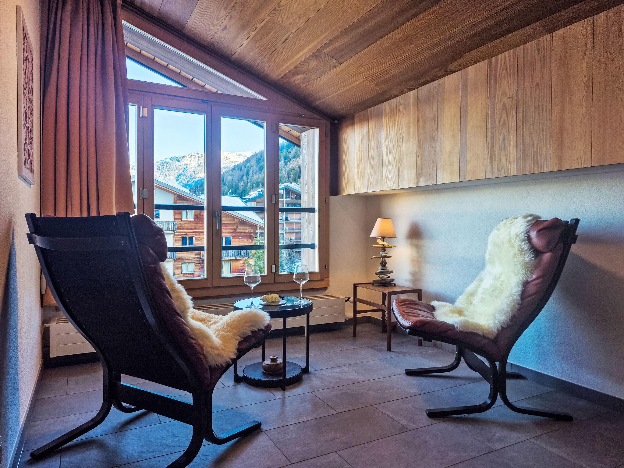 "Les Genets 167D", 3-room penthouse. Fully renovated in 2025, comfortable and beautiful furnishings: living/dining room with 1 double sofabed and cable TV. 1 room with 2 pull-out beds. Exit to the balcony, west facing position. 1 room with 1 french bed. Exit to the balcony. Open kitchen (oven, dishwasher, 4 ceramic glass hob hotplates, kettle, electric coffee machine, Capsules for coffee machine (Nespresso) extra, raclette grill, fondue Set (cheese)). Shower, sep. WC. Balcony, west facing position. Very beautiful view of the mountains and the resort. Facilities: hair dryer. Internet (WiFi, free). Parking (roofed, 1 car). Please note: non-smokers only. 1 pet/ dog allowed. Instead of an enclosed bedroom, some sleeping areas are located in an open-plan area (gallery, alcove, etc.).