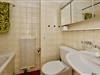 Badezimmer mit Badewanne/Dusche, Waschbecken, Haartrockner, separates WC.